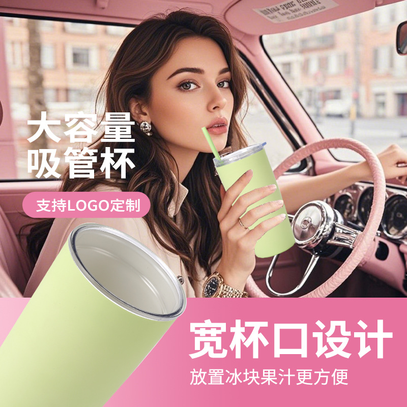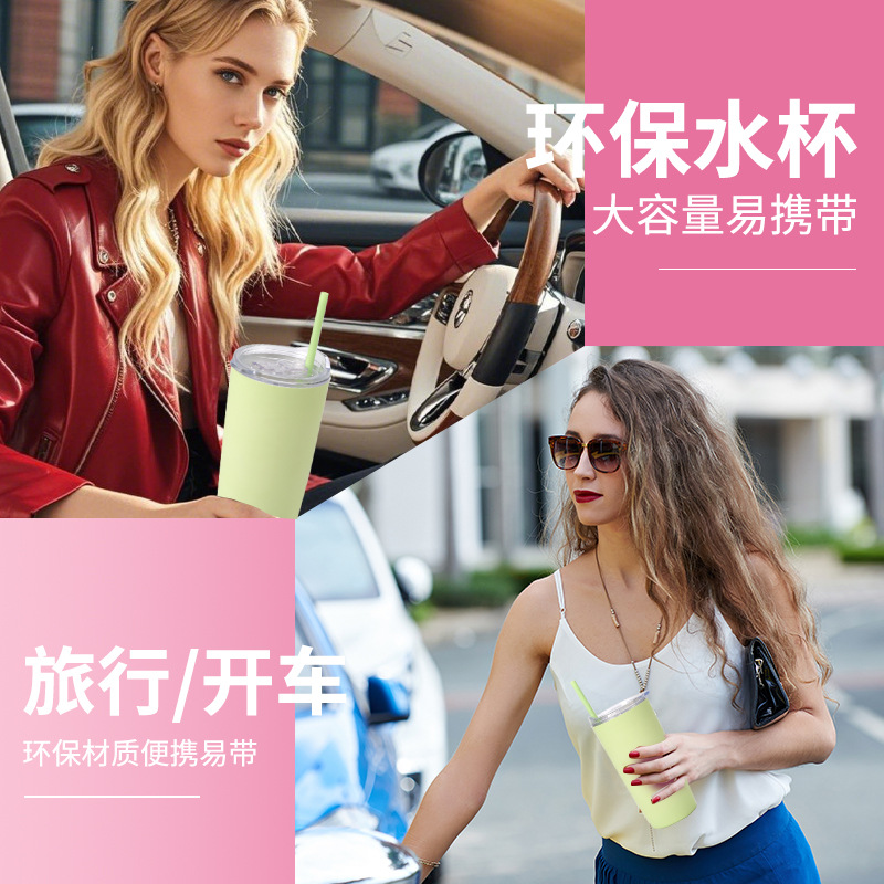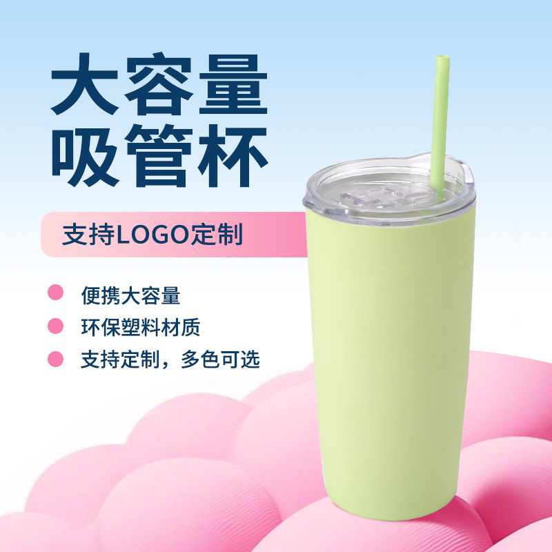 跨境高颜值网红新款耶体杯带吸管水杯户外便携随手杯车载塑料杯