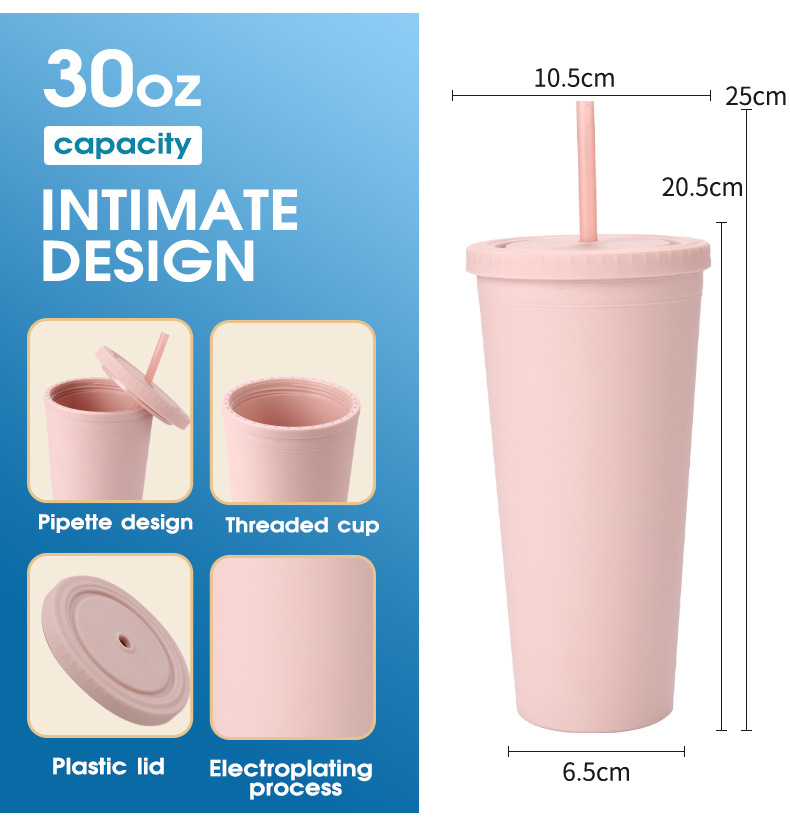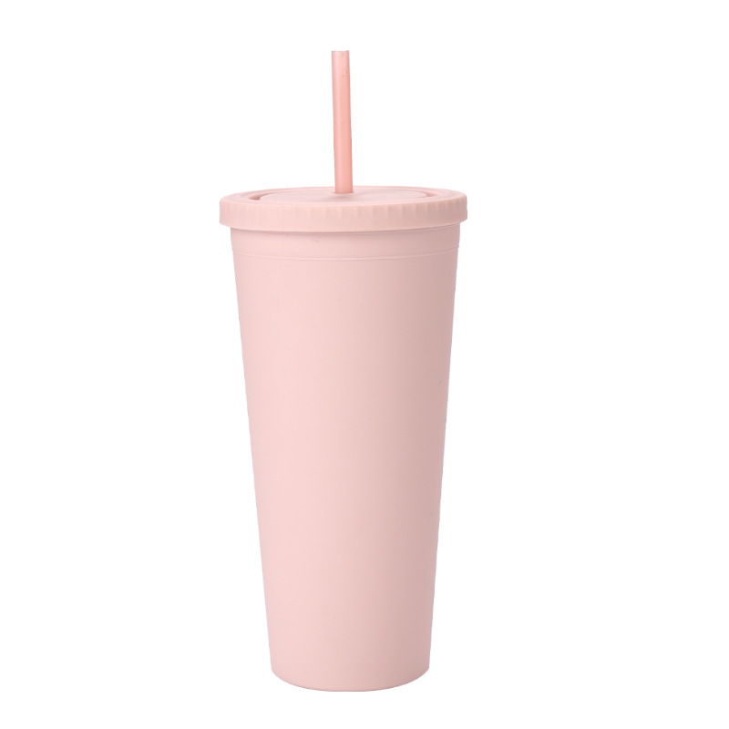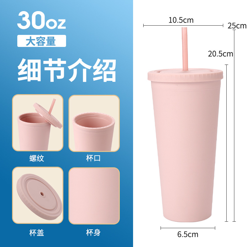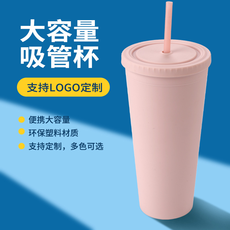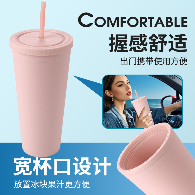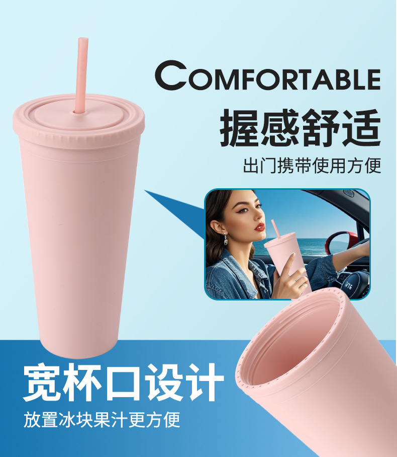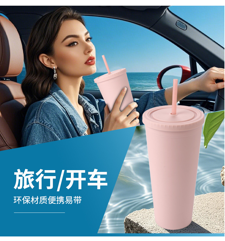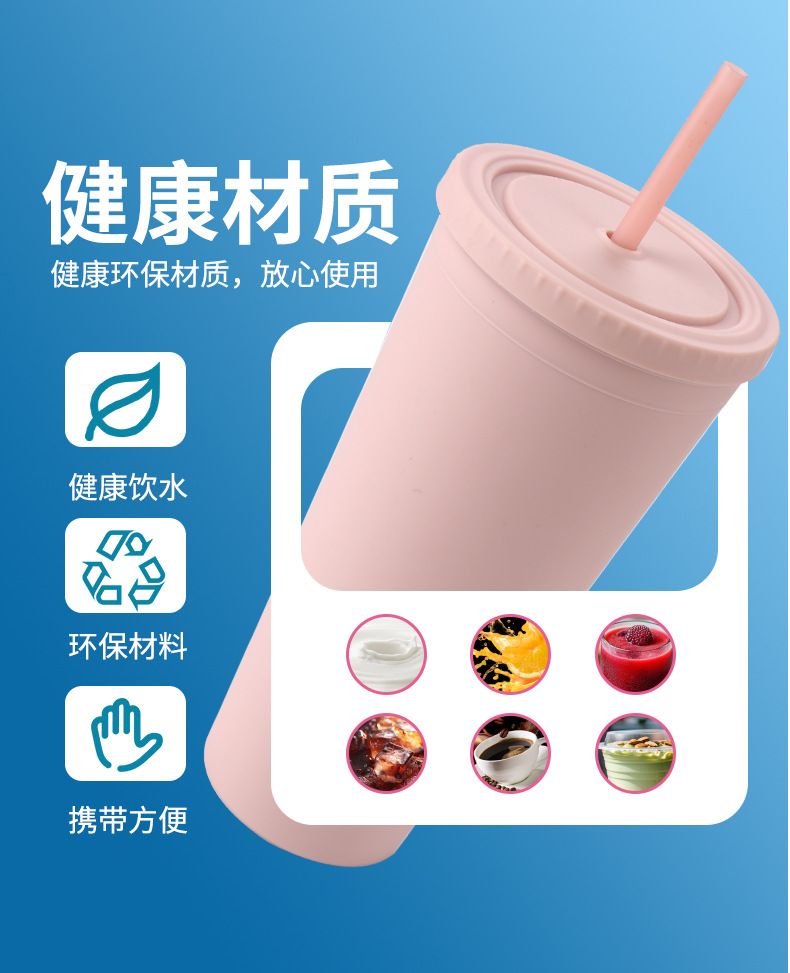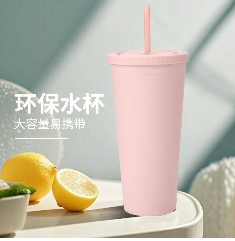 畅销可再生RAS 双层吸管杯可定制颜色简约650ml水杯外喷手感漆塑