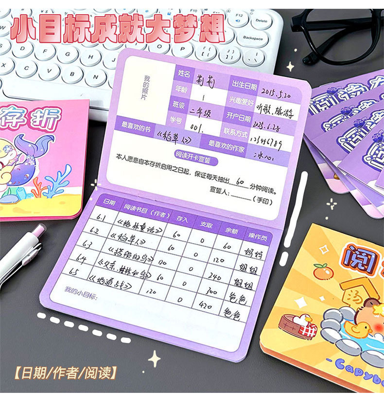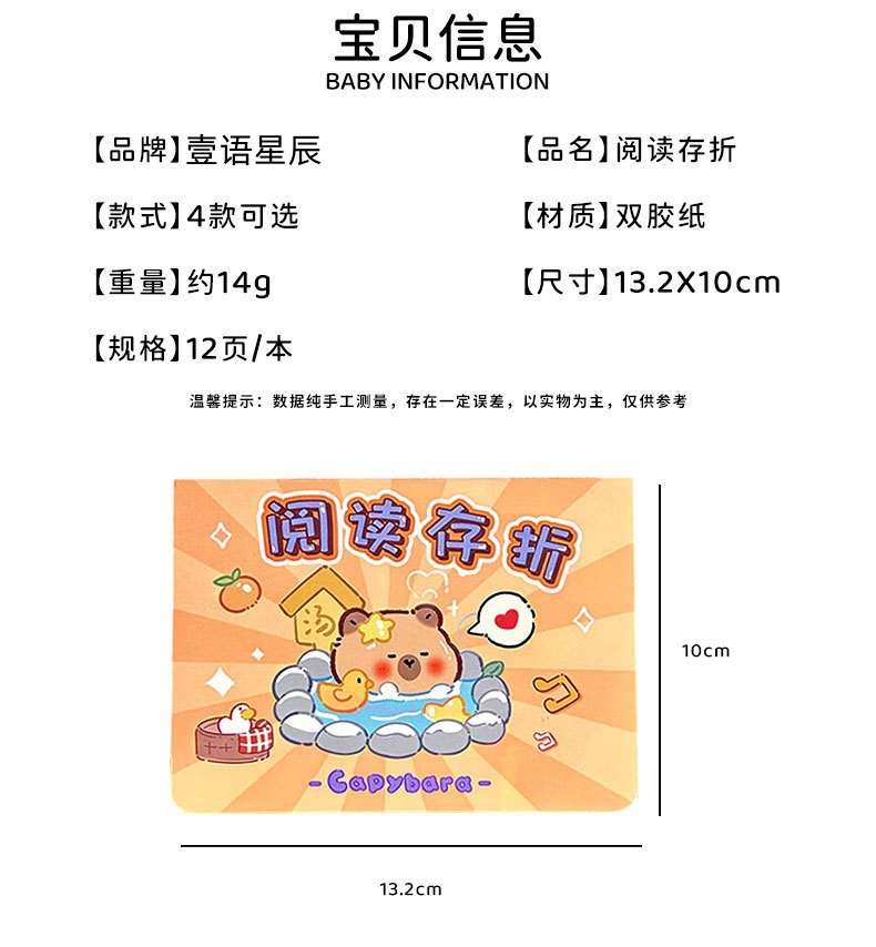 卡皮巴拉阅读存折卡通儿童心愿存折学生家用可爱阅读积分小本子