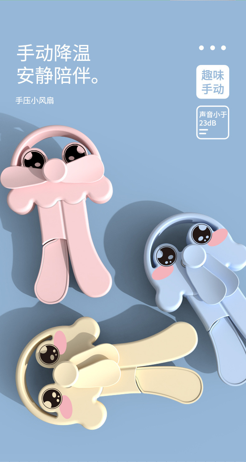 夏季手持便携手摇水母风扇风扇卡通手压随身风扇学生地摊商超批发