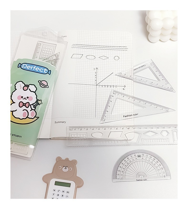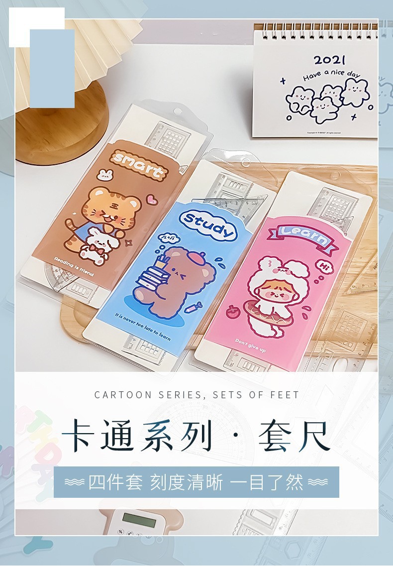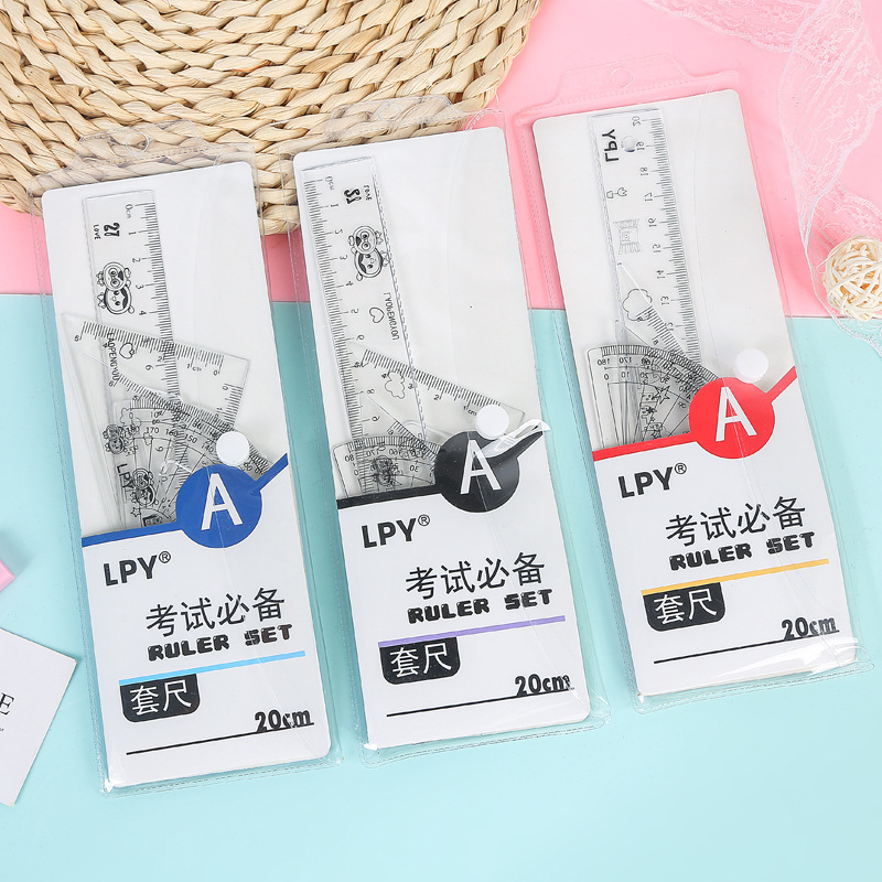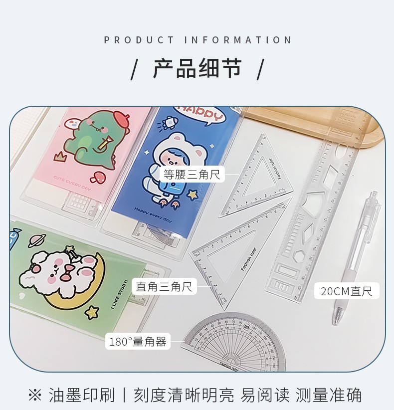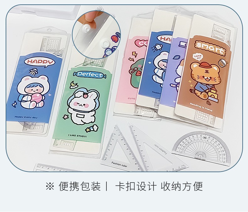 文具套尺学生考试用品绘画制图工具卡通套装尺直尺三角板四件套