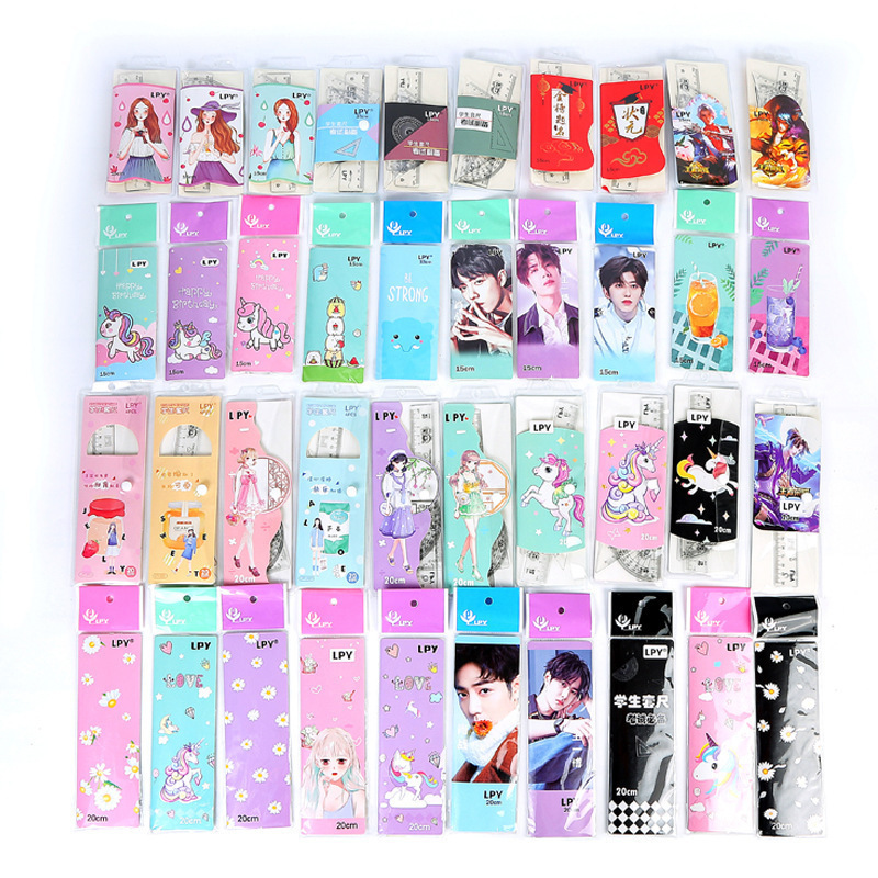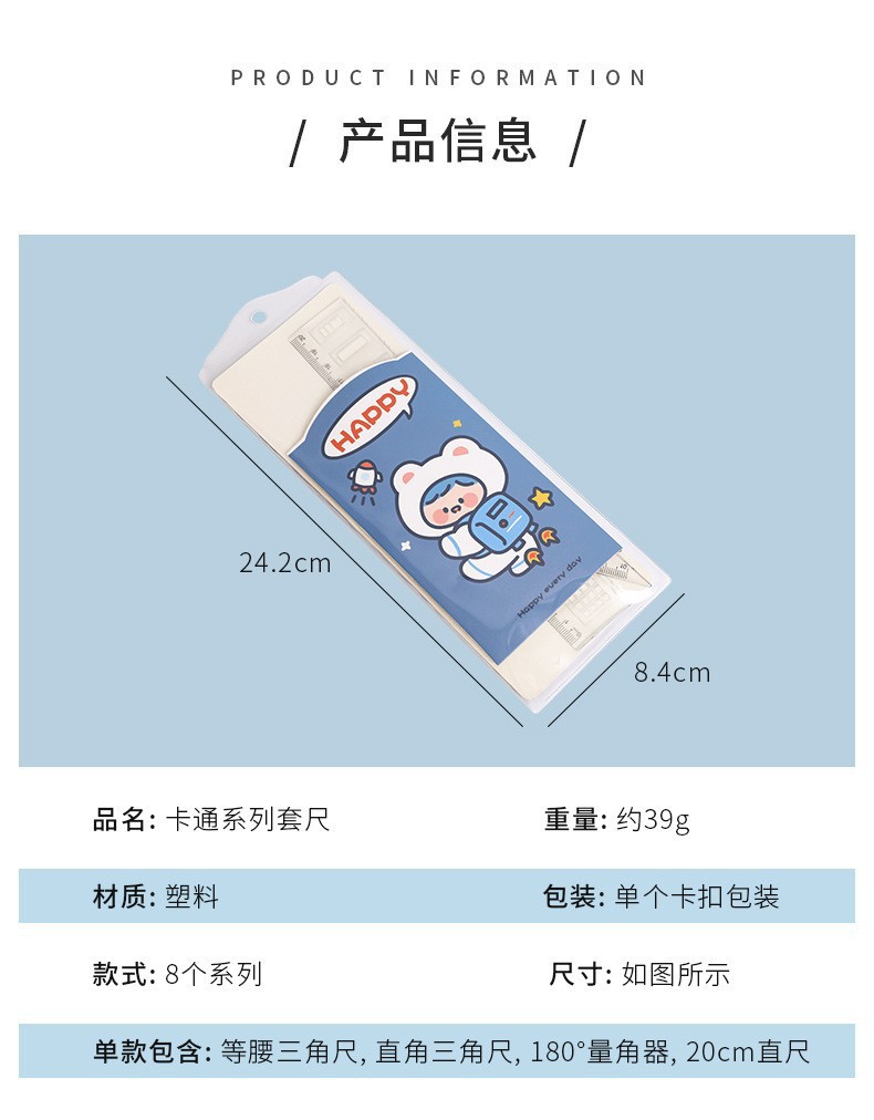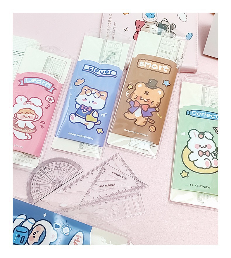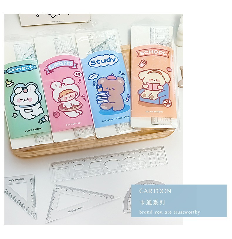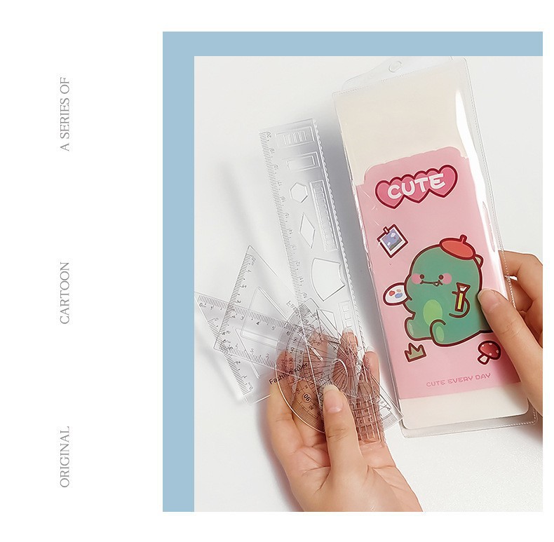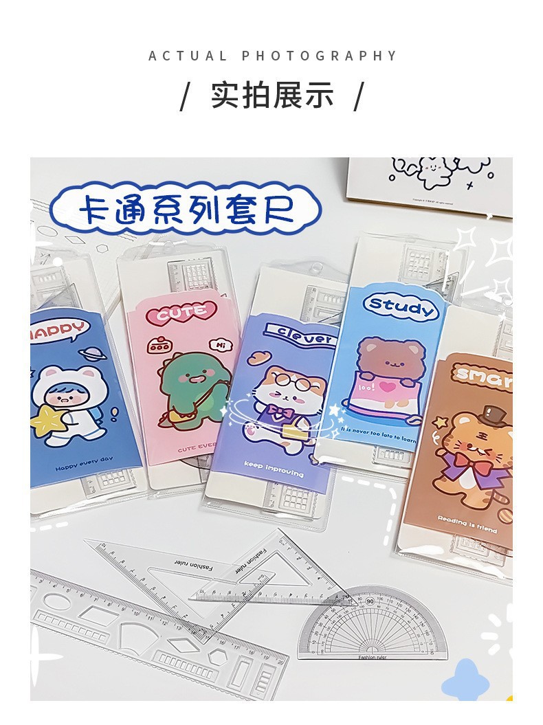 文具套尺学生考试用品绘画制图工具卡通套装尺直尺三角板四件套