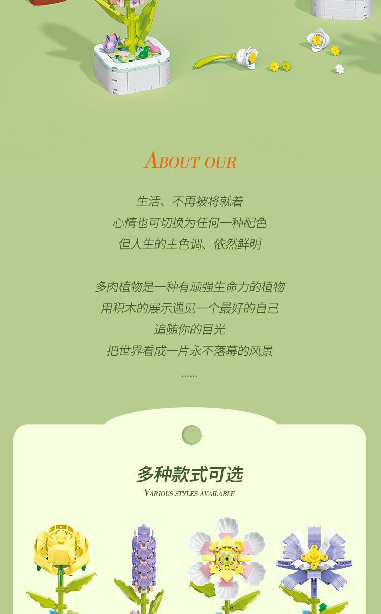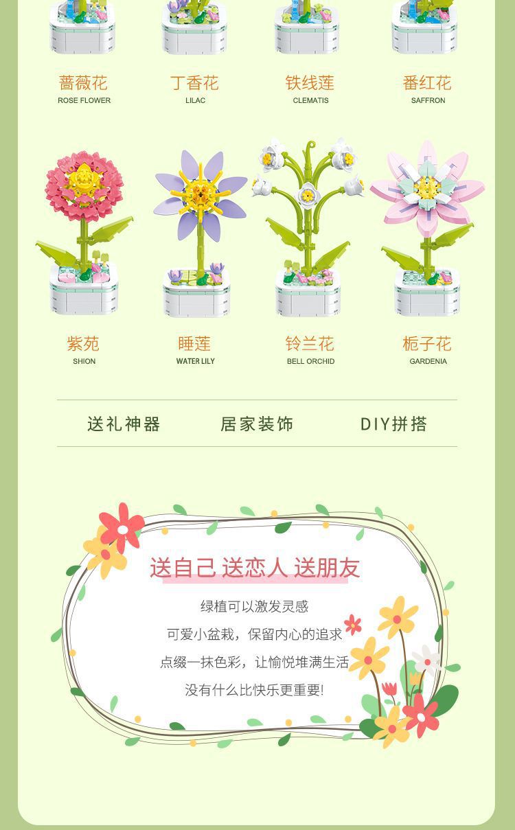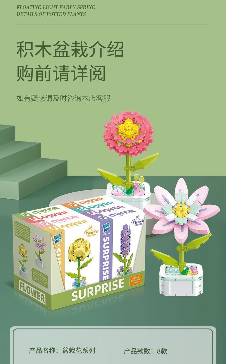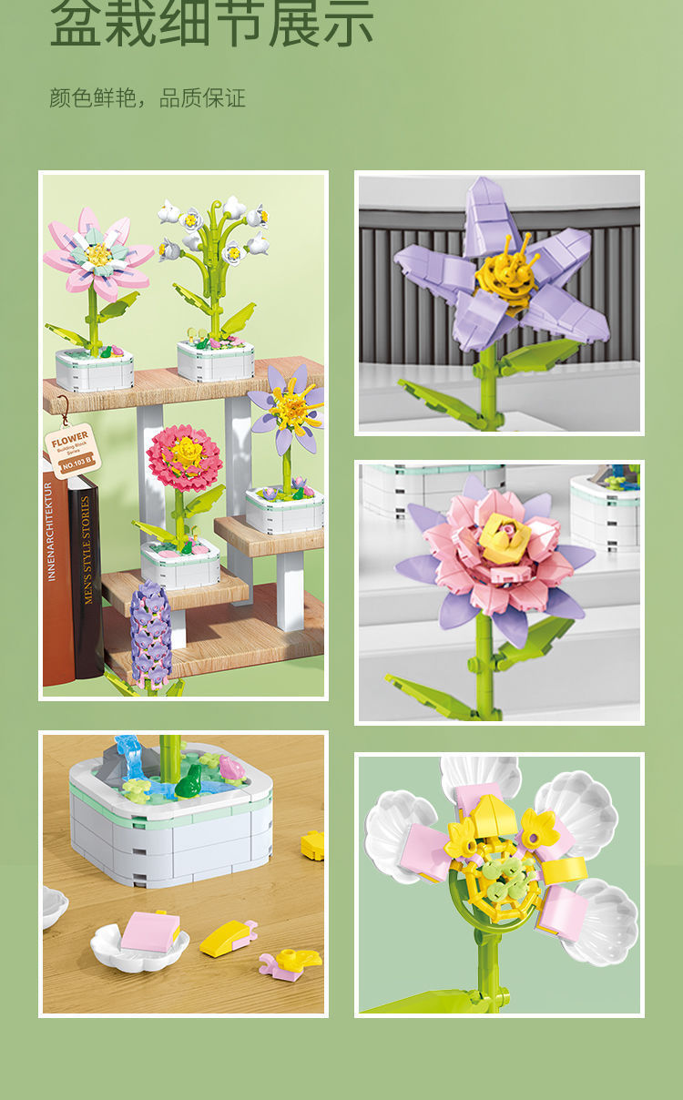 儿童拼装花朵积木兼容乐高花束女孩手工组装益智拼插玩具手工礼物