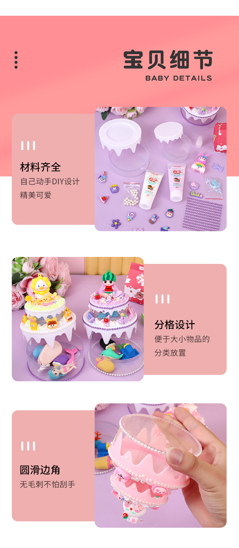 手工diy奶油胶蛋糕首饰收纳盒桌面可爱仿照卡通装饰儿童六一礼物