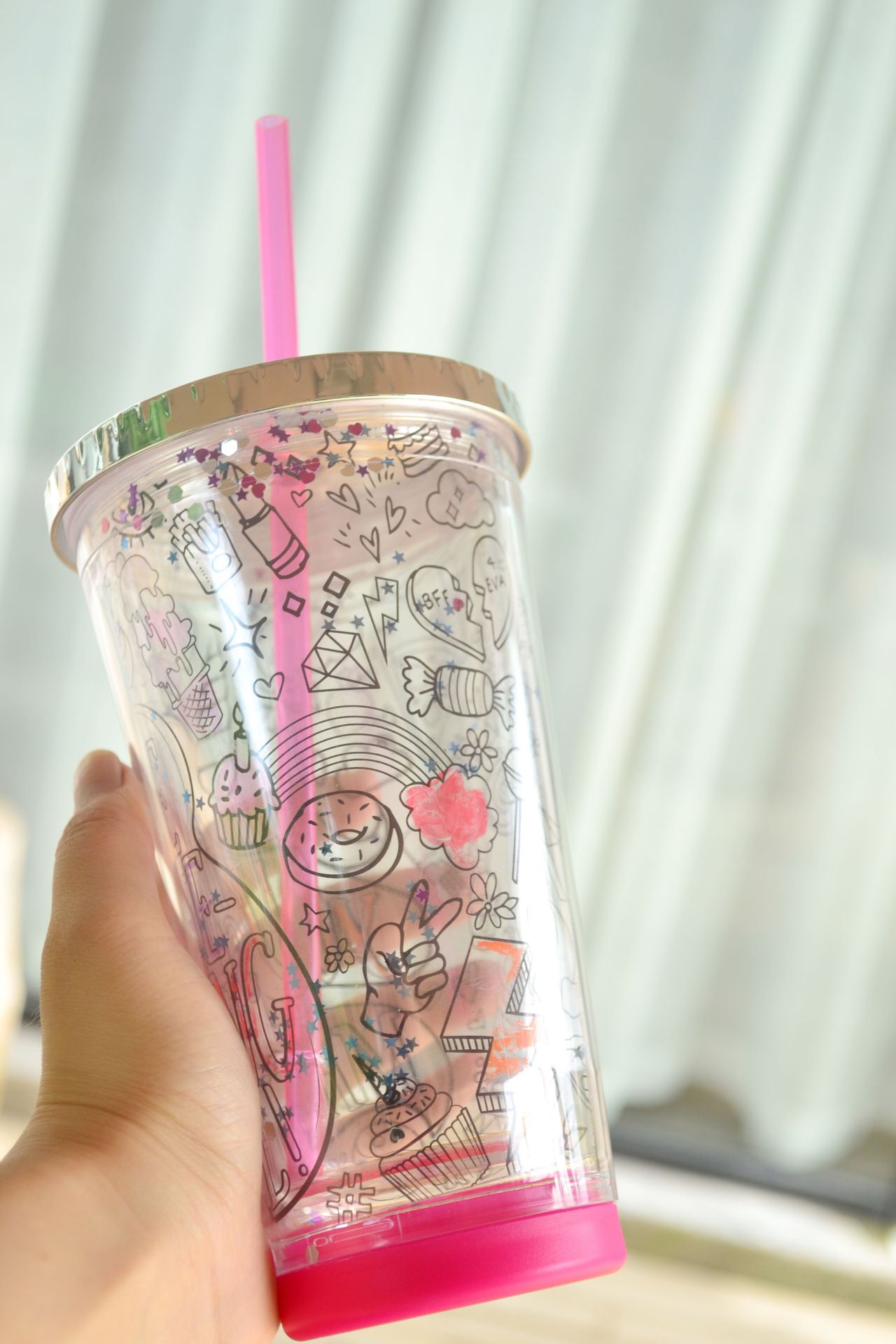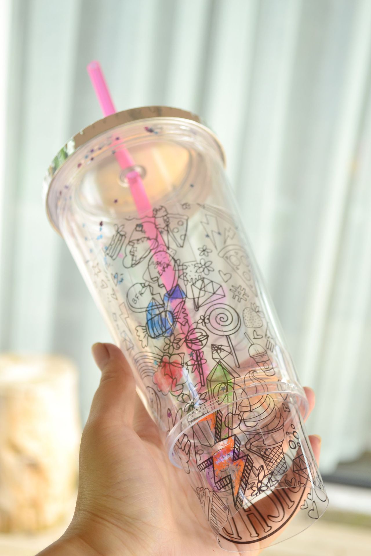 新款大容量儿童旋底盖水杯DIY塑料杯PET插纸可更换吸管杯logo定制