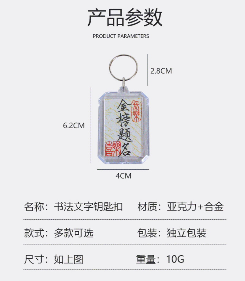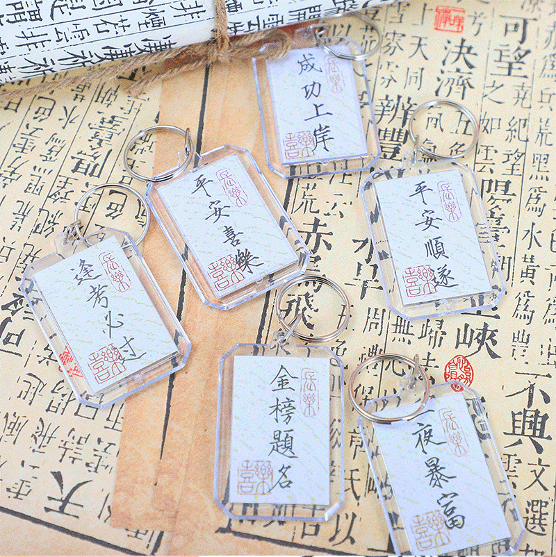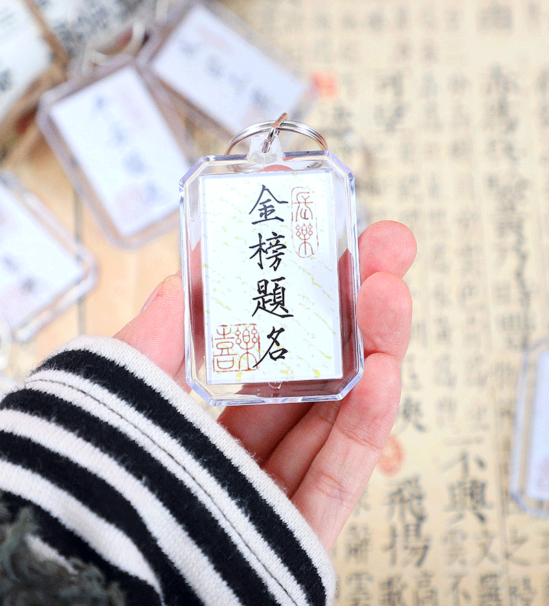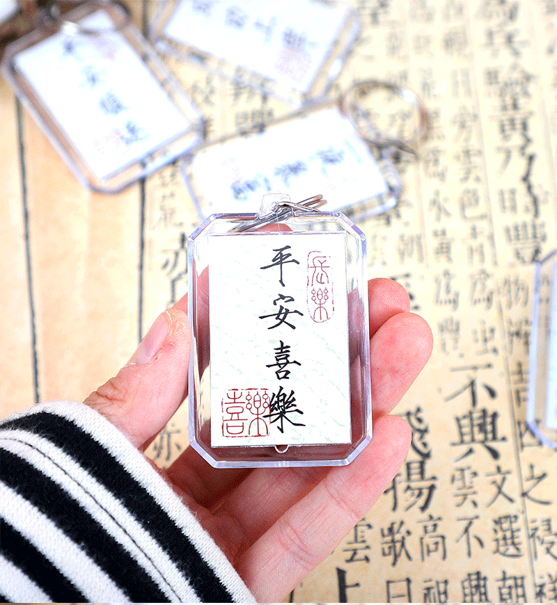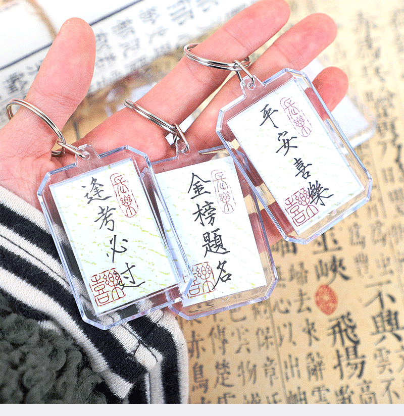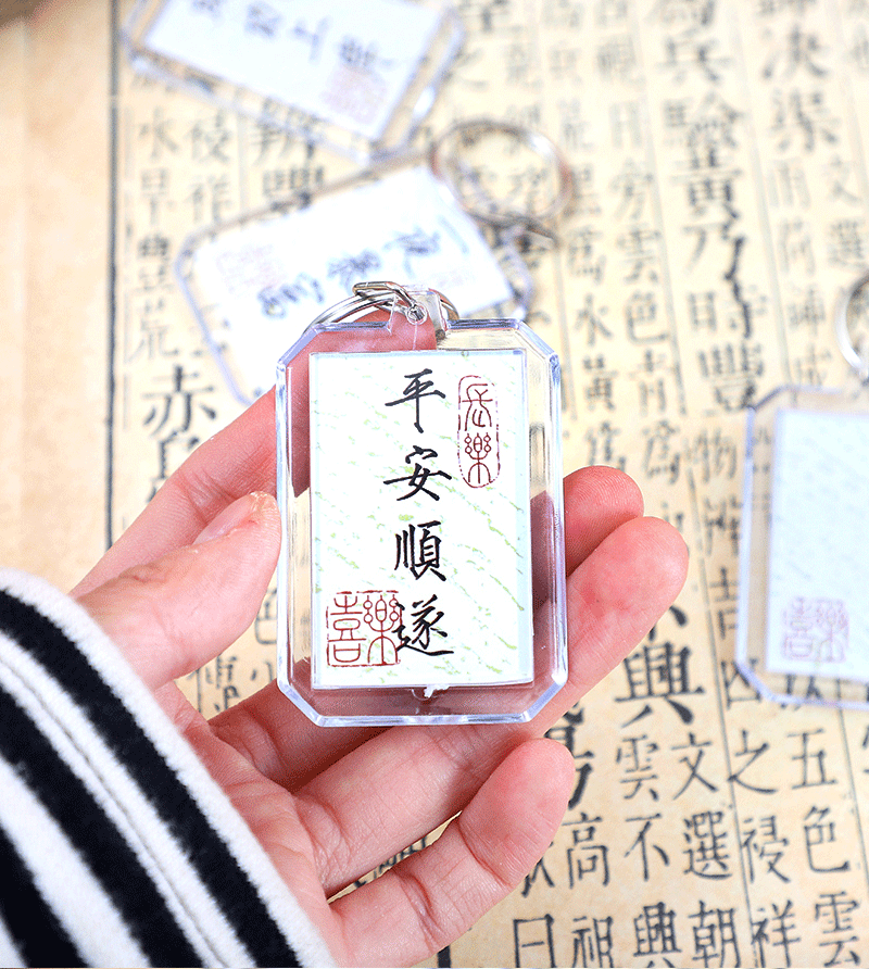 书法钥匙扣平安喜乐钥匙扣毕业祝福加油励志书包挂饰平安国风饰品
