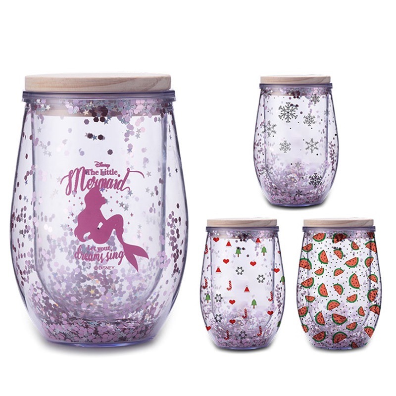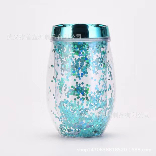 双层塑料鸡蛋杯U型水杯亮片水杯颜色可定制GRS已认证