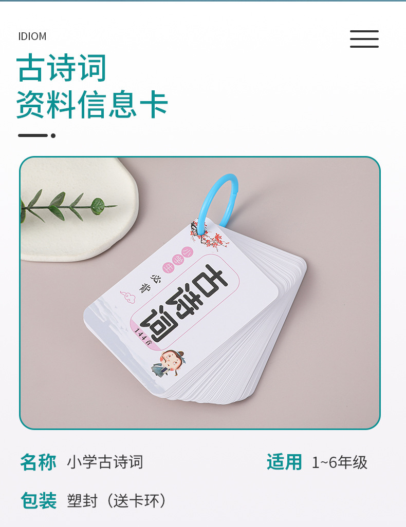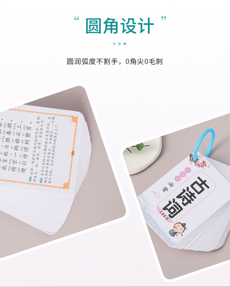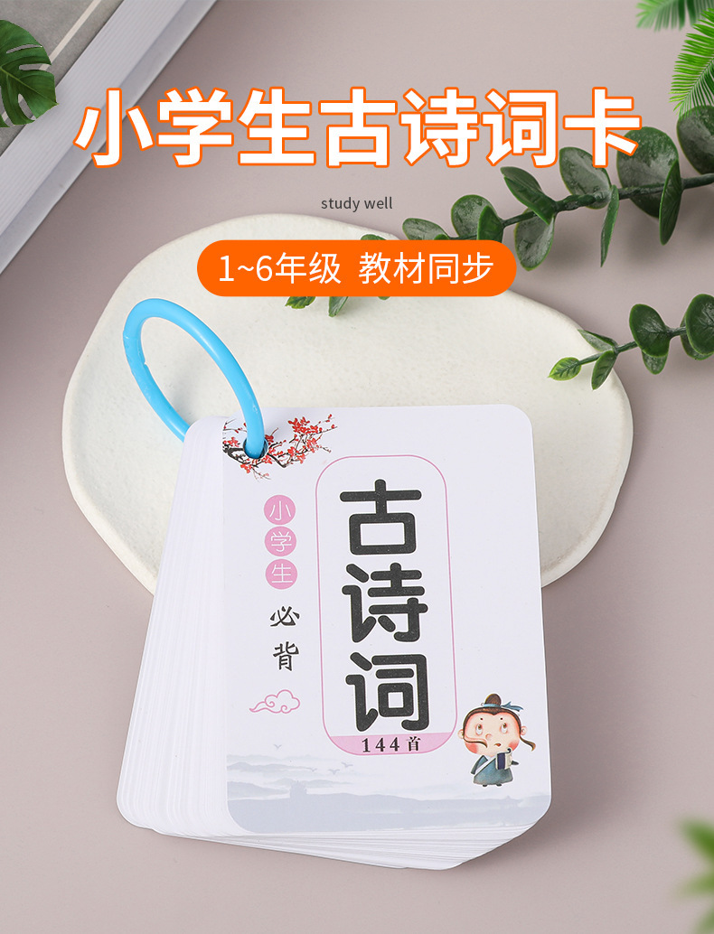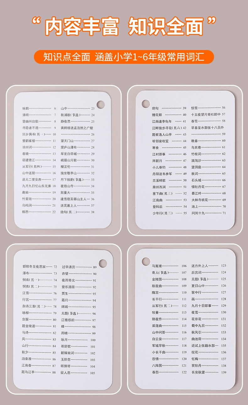 小学生必备144首古诗词学习卡片1到6年级全套背诵注音版唐诗大全