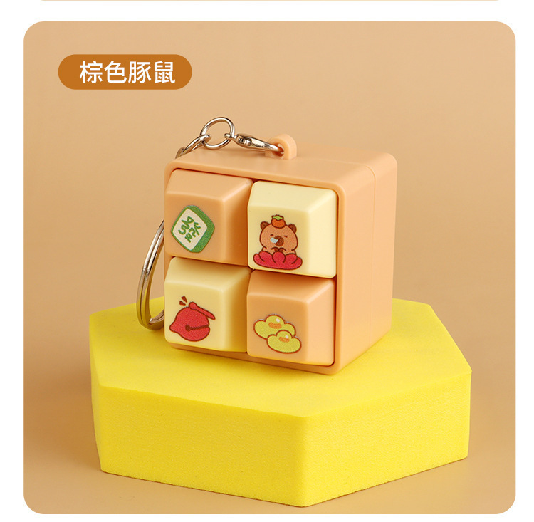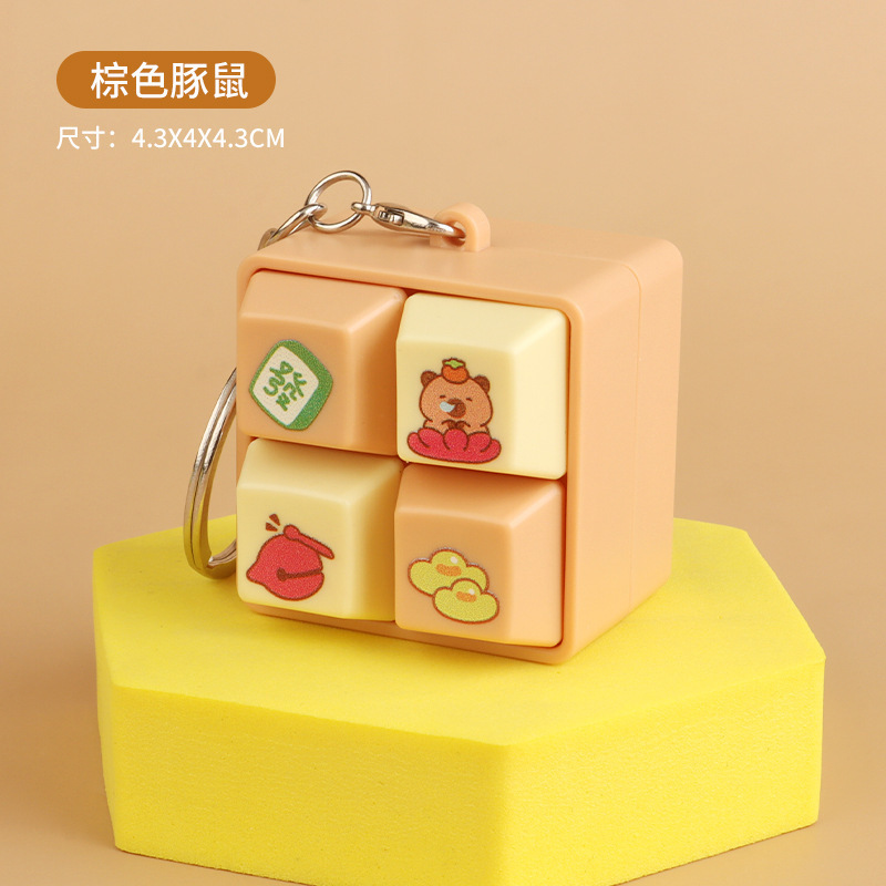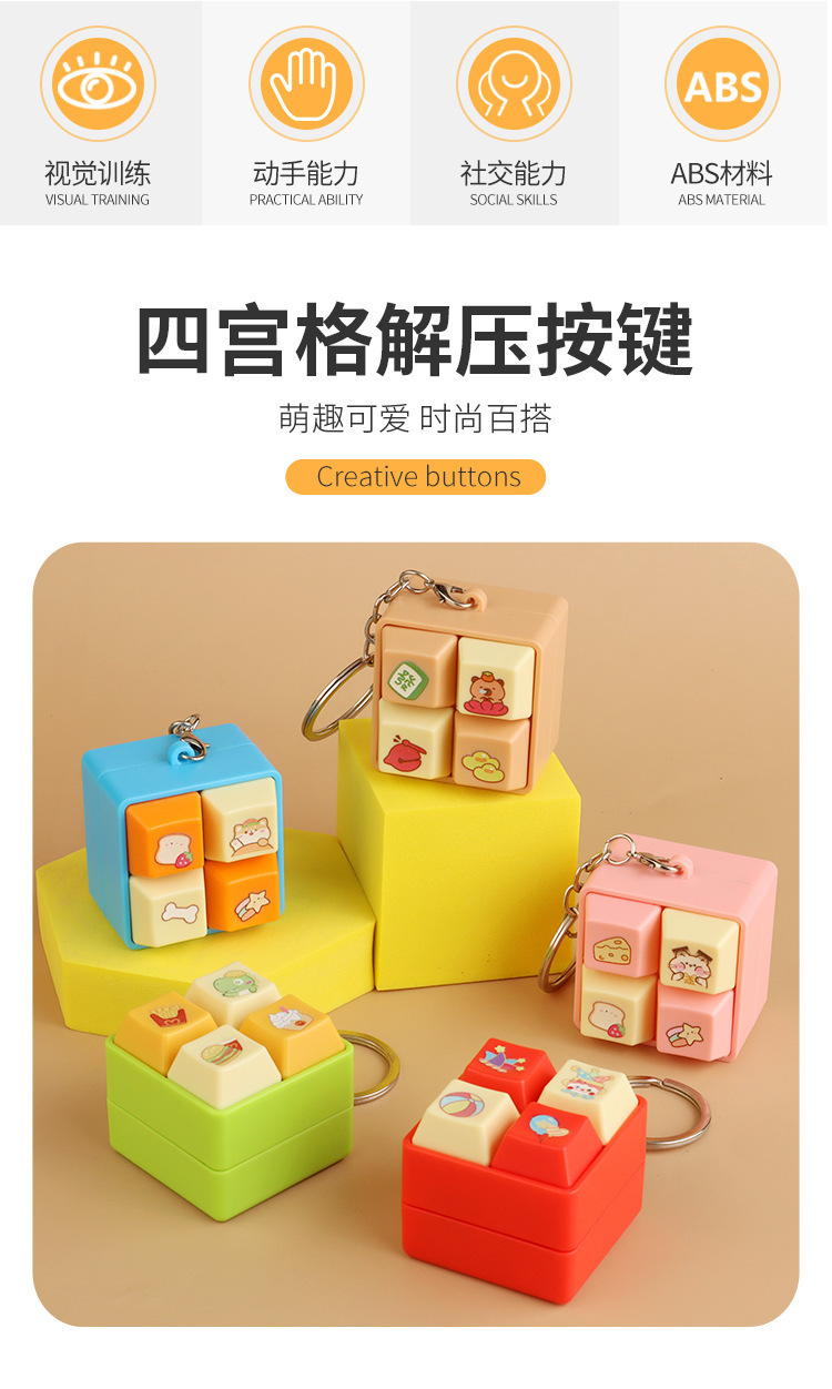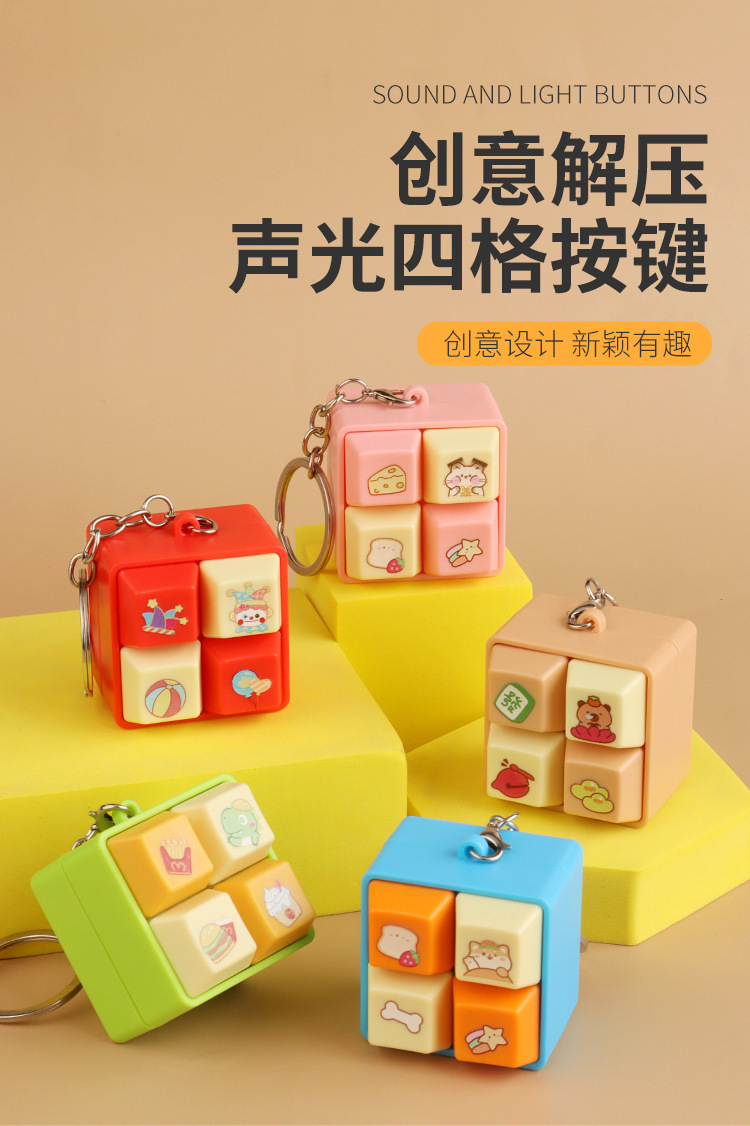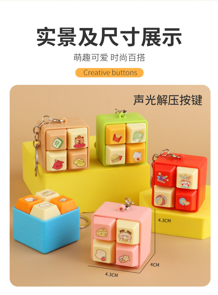 新款创意卡皮巴拉四宫格功德按键钥匙扣发光钥匙扣解压趣味小礼品