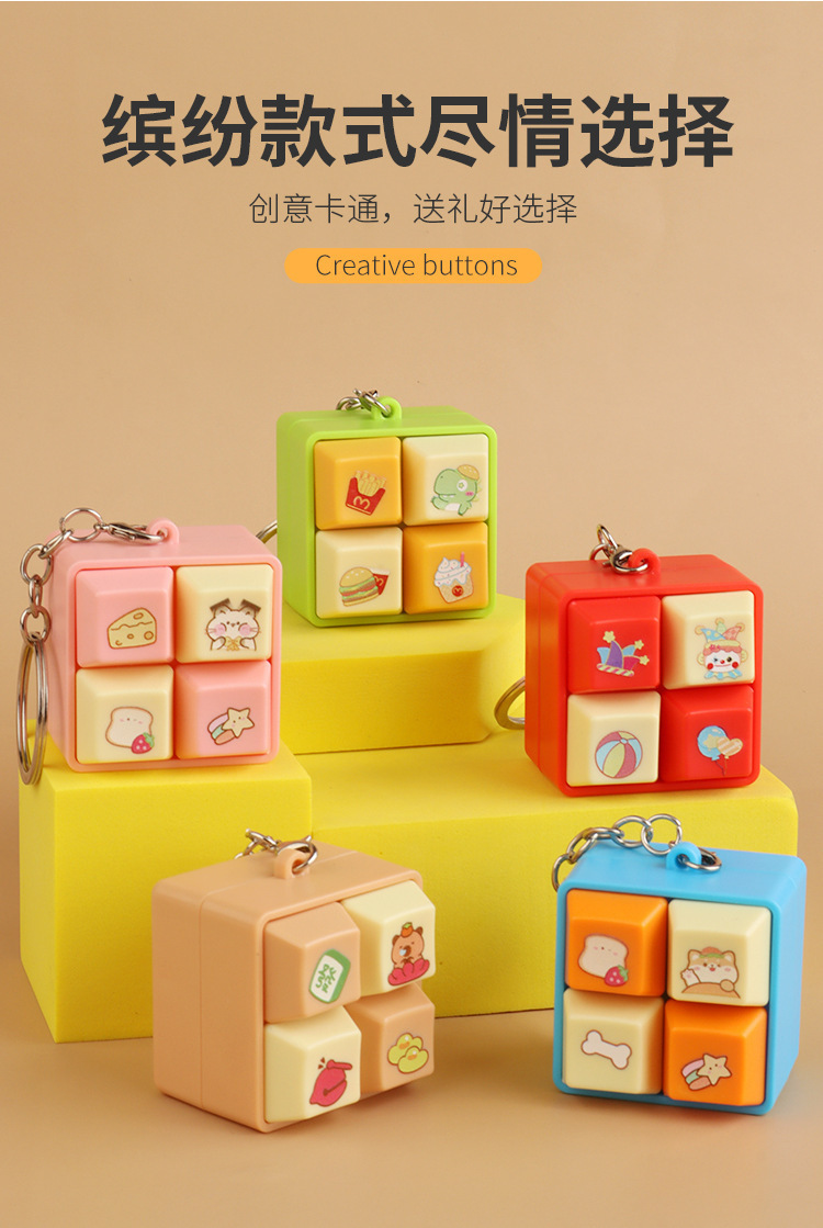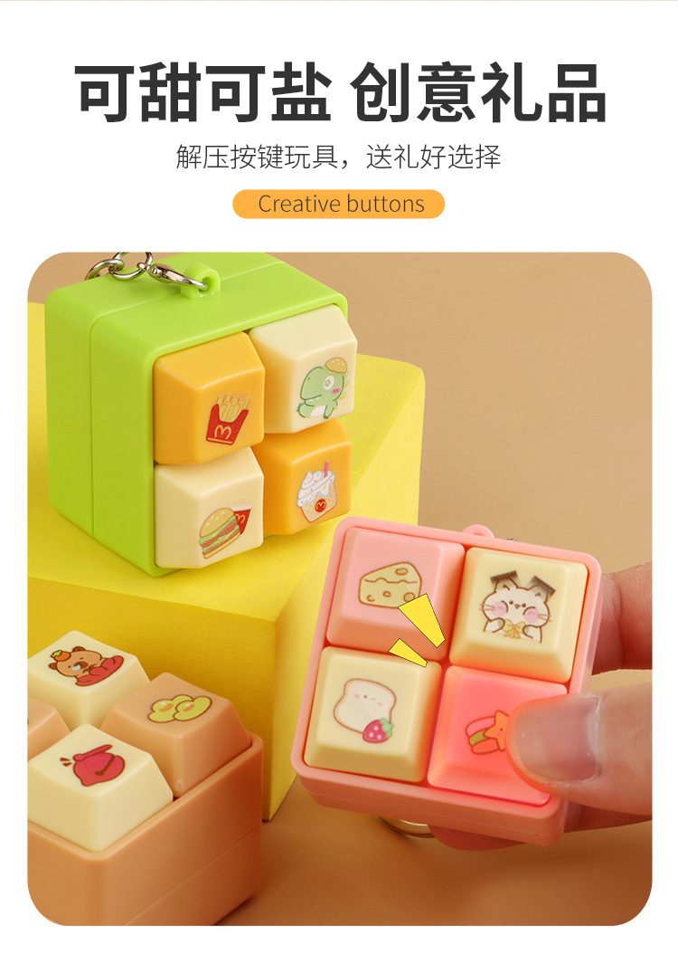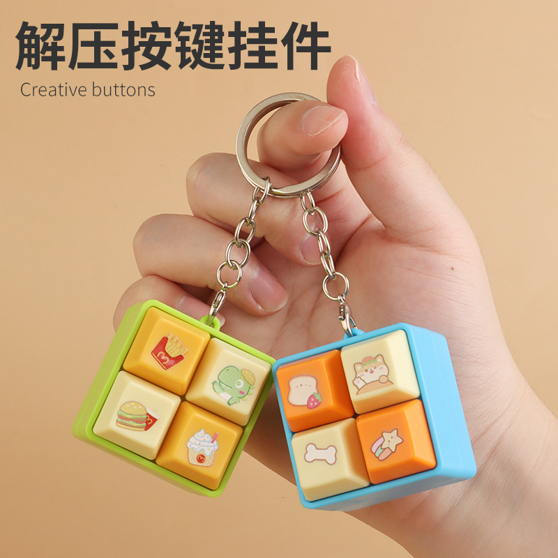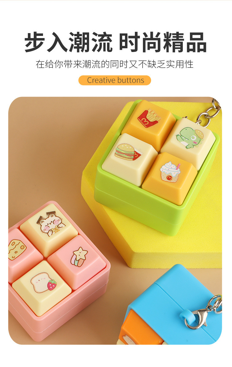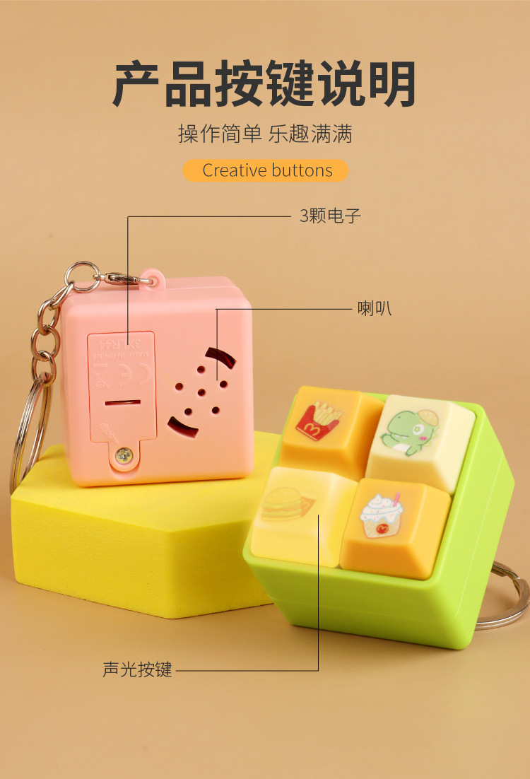 新款创意卡皮巴拉四宫格功德按键钥匙扣发光钥匙扣解压趣味小礼品