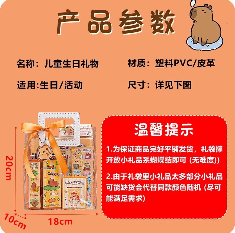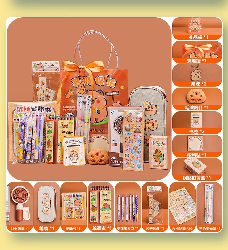 开学卡皮巴拉手提文具套装学生开学必备礼物班级奖励生日伴手礼