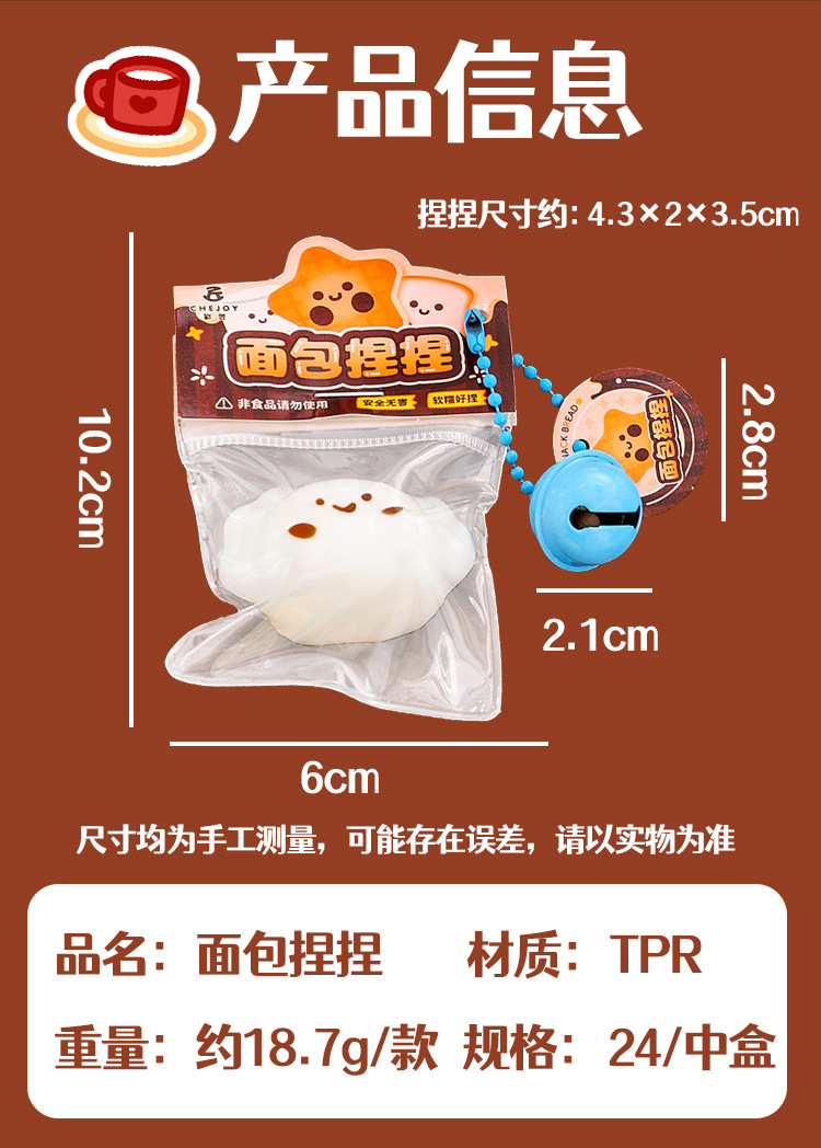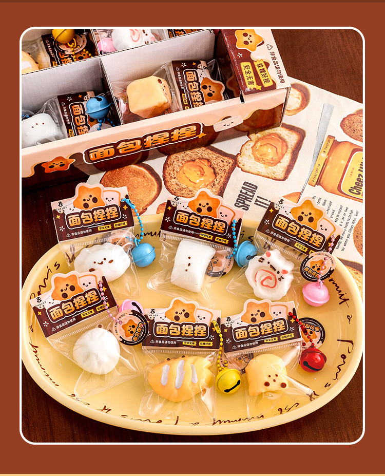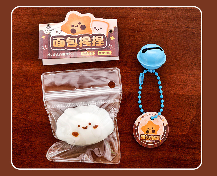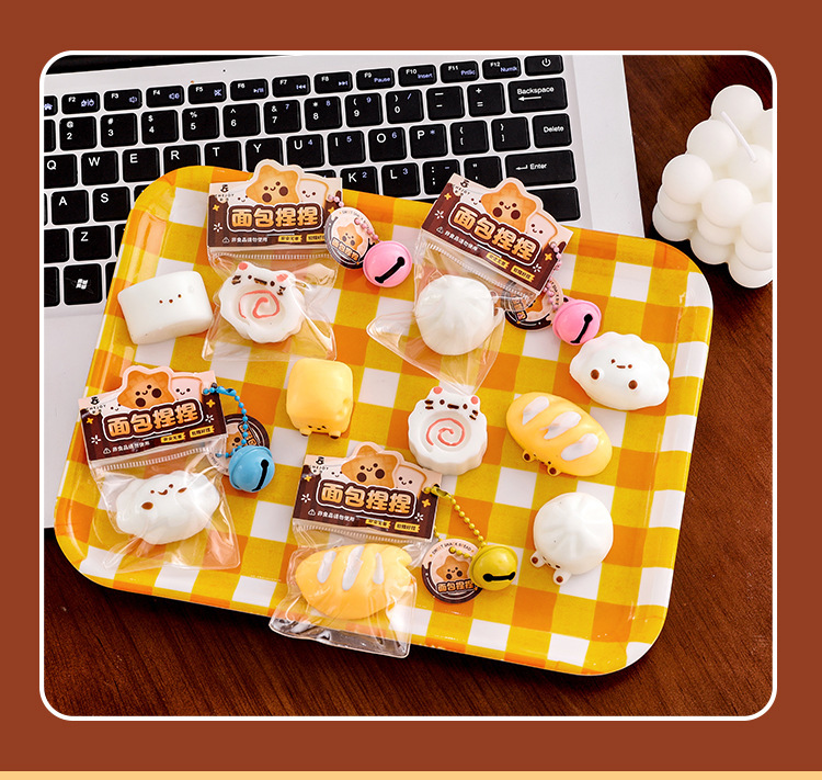 新款仿真食玩解压捏捏乐可爱面包铃铛挂件卡通趣味减压发泄小玩具