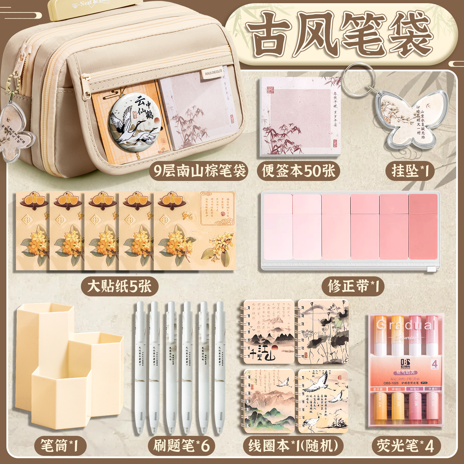 大容量中国风笔袋高颜值文具袋新款多功能文具盒笔袋套装ins风
