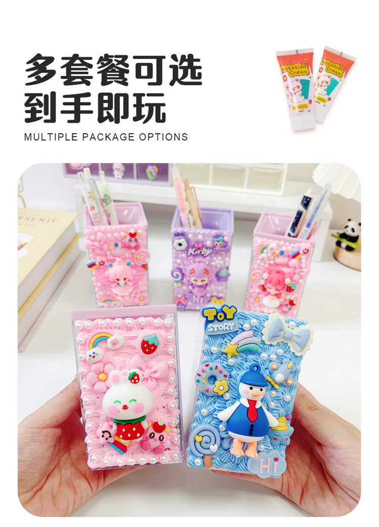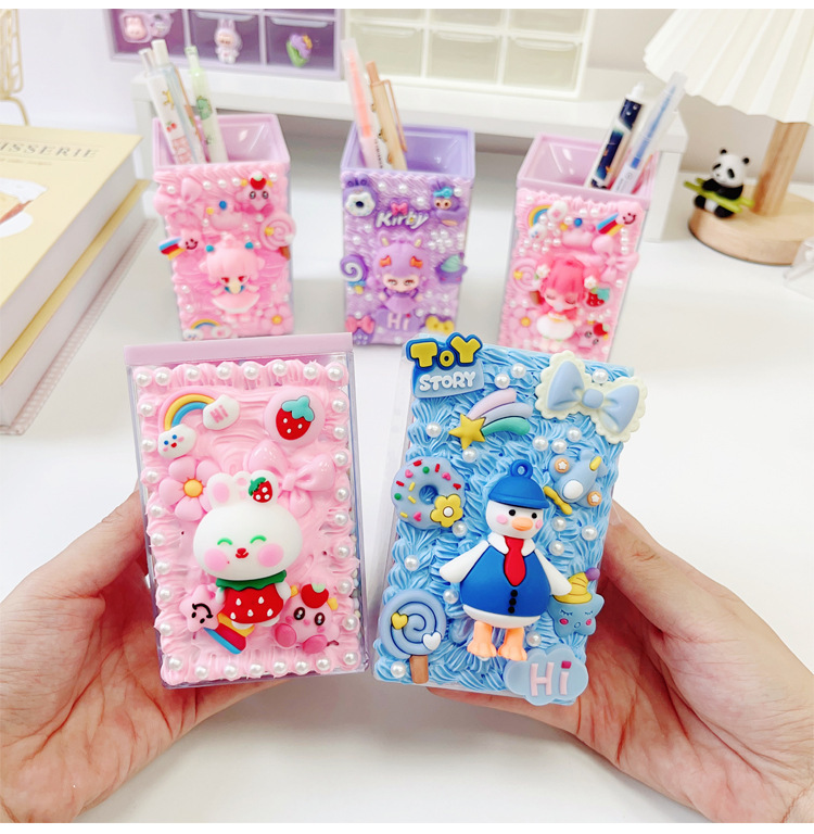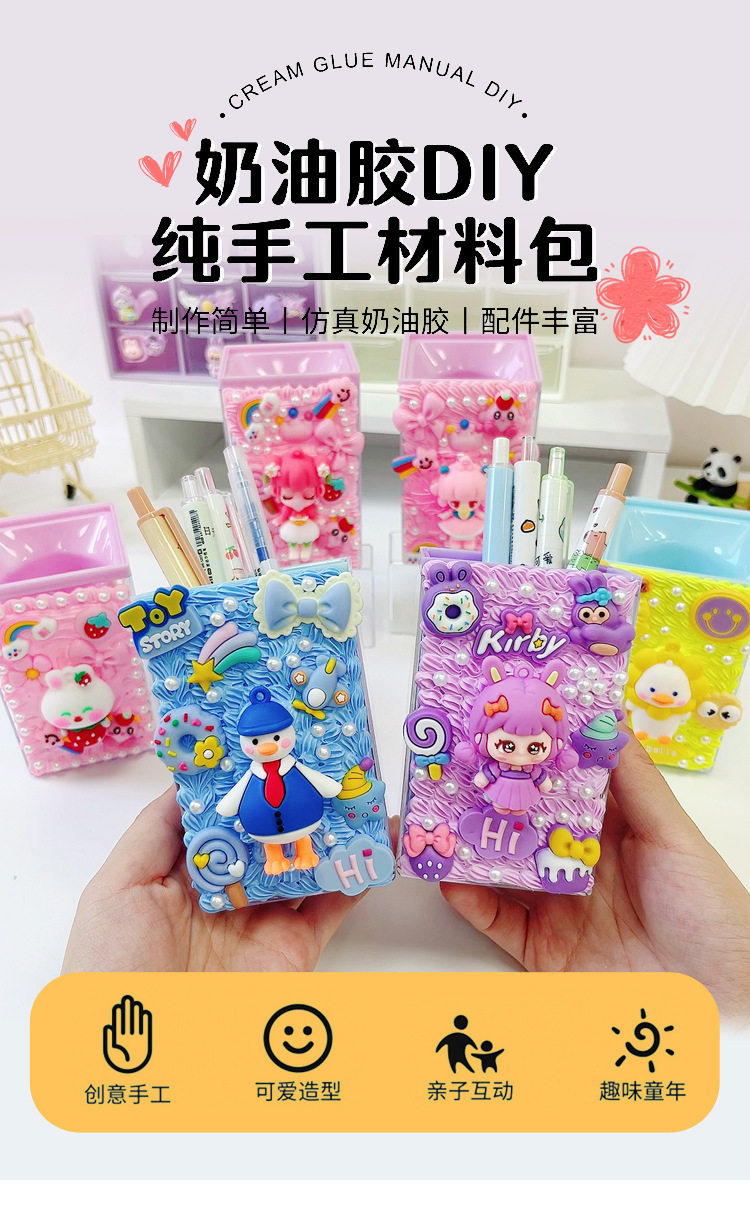 新品奶油胶笔筒diy材料包手工制作卡通学生桌面创意可爱收纳摆件