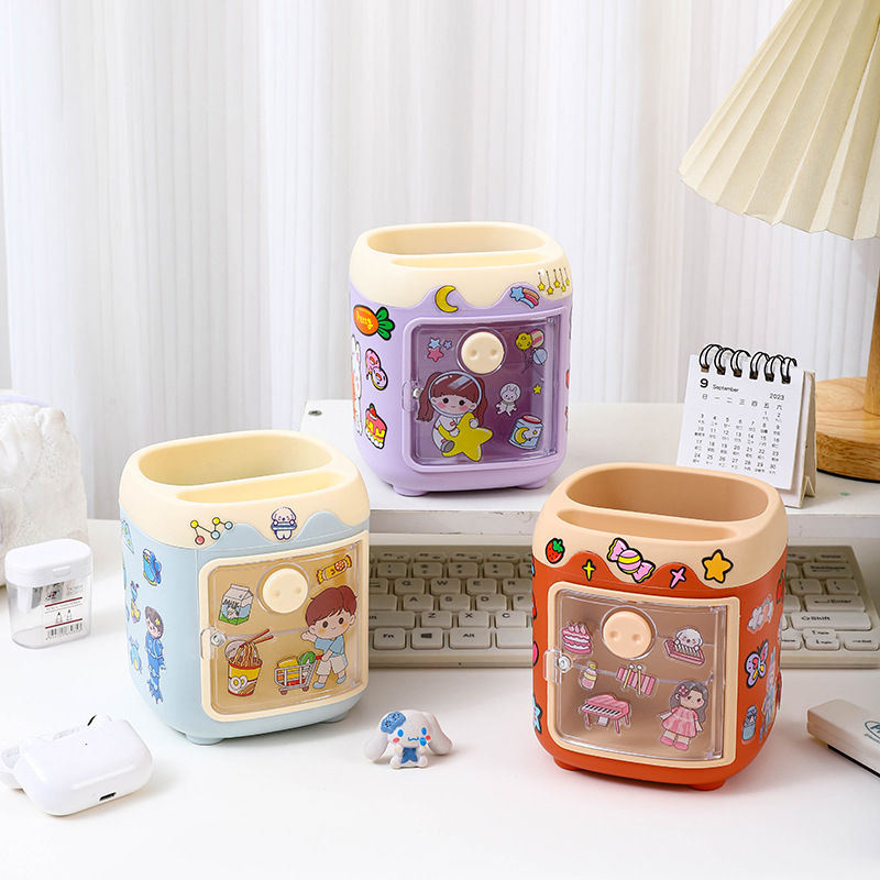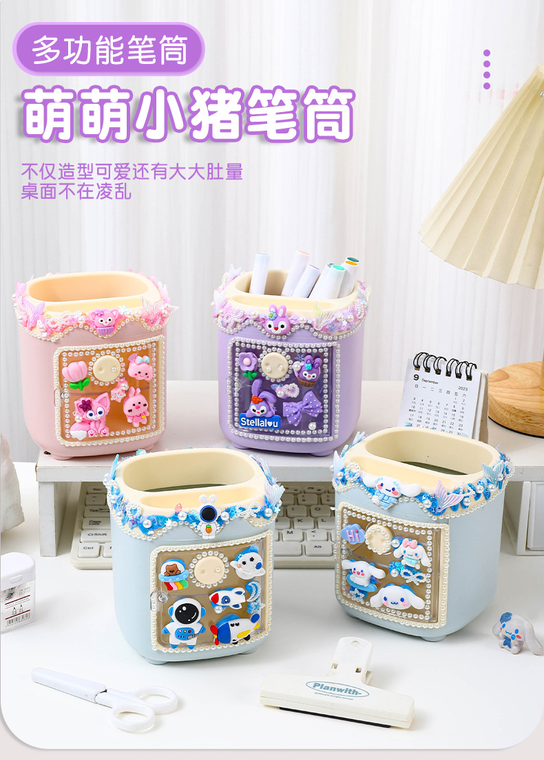 新品奶油胶小猪笔筒手工DIY制作桌面办公多功能收纳桶可爱ins摆件