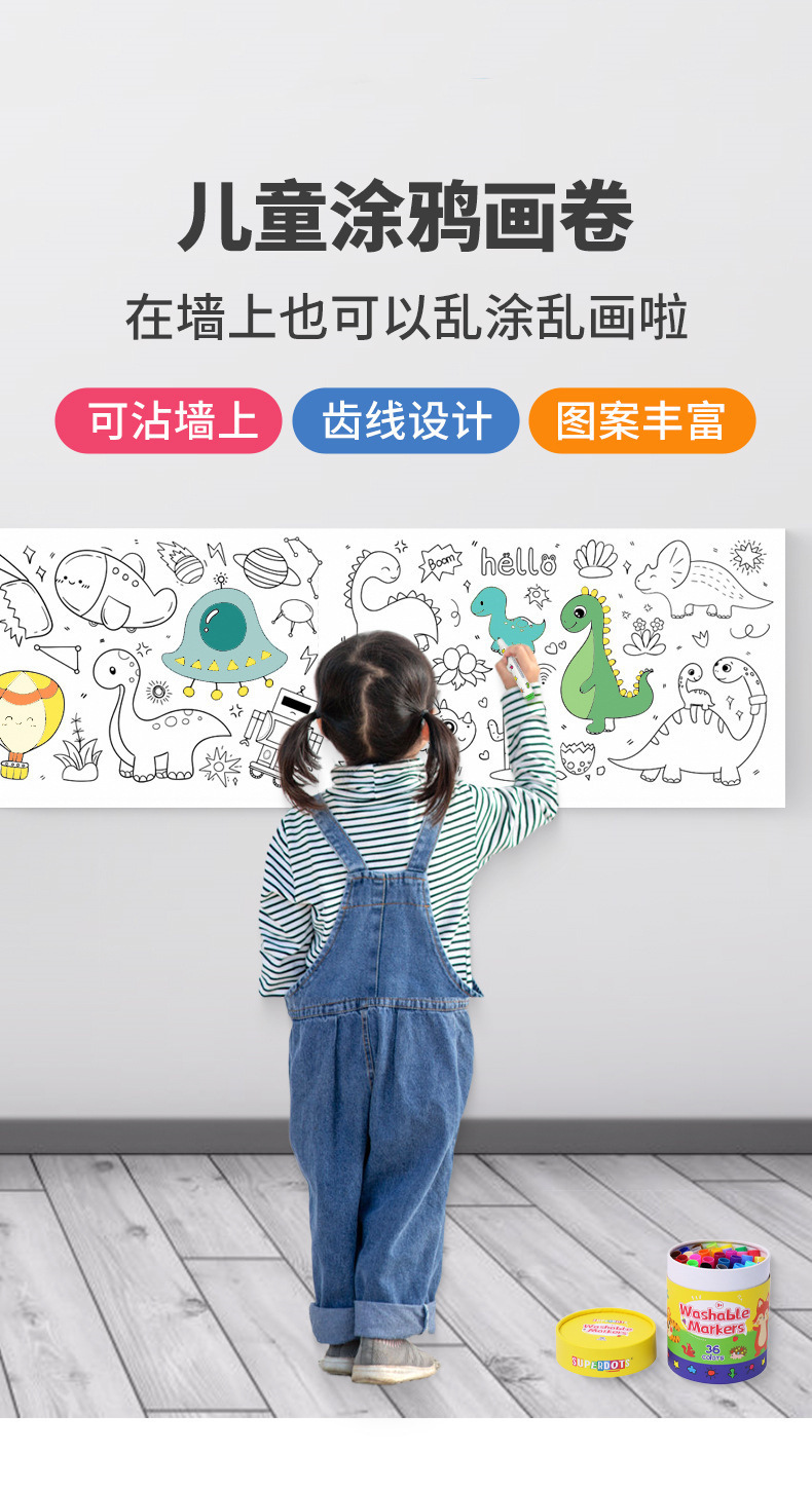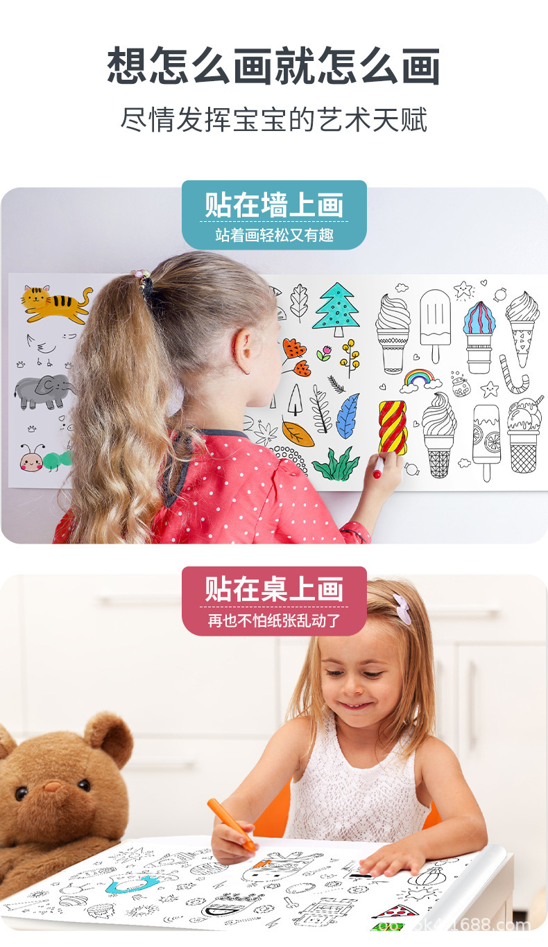 幼儿绘画儿童涂鸦画卷早教益智涂鸦幼儿绘画水彩花卉填色纸跨境