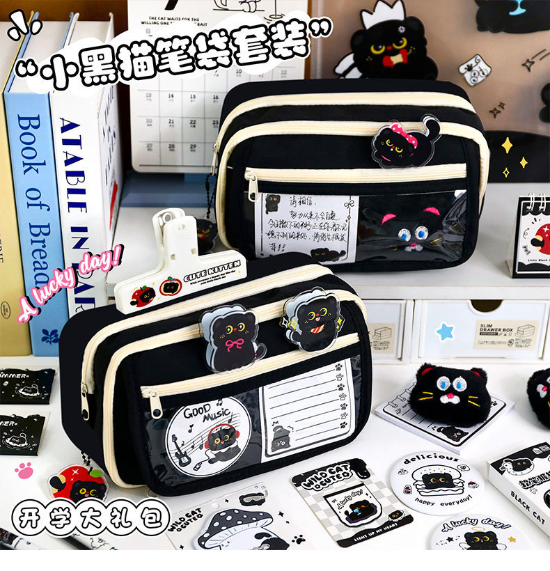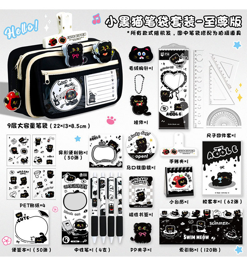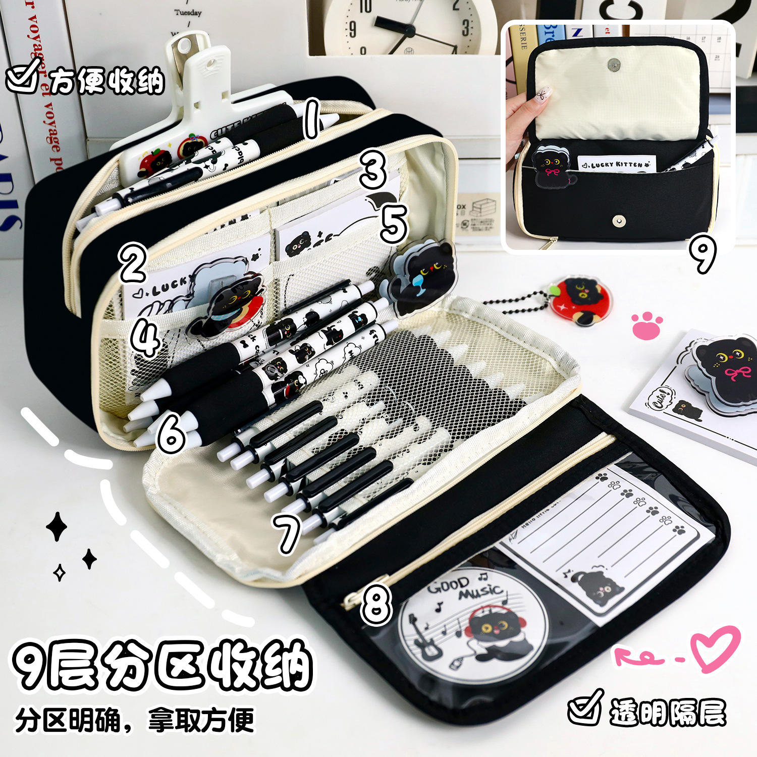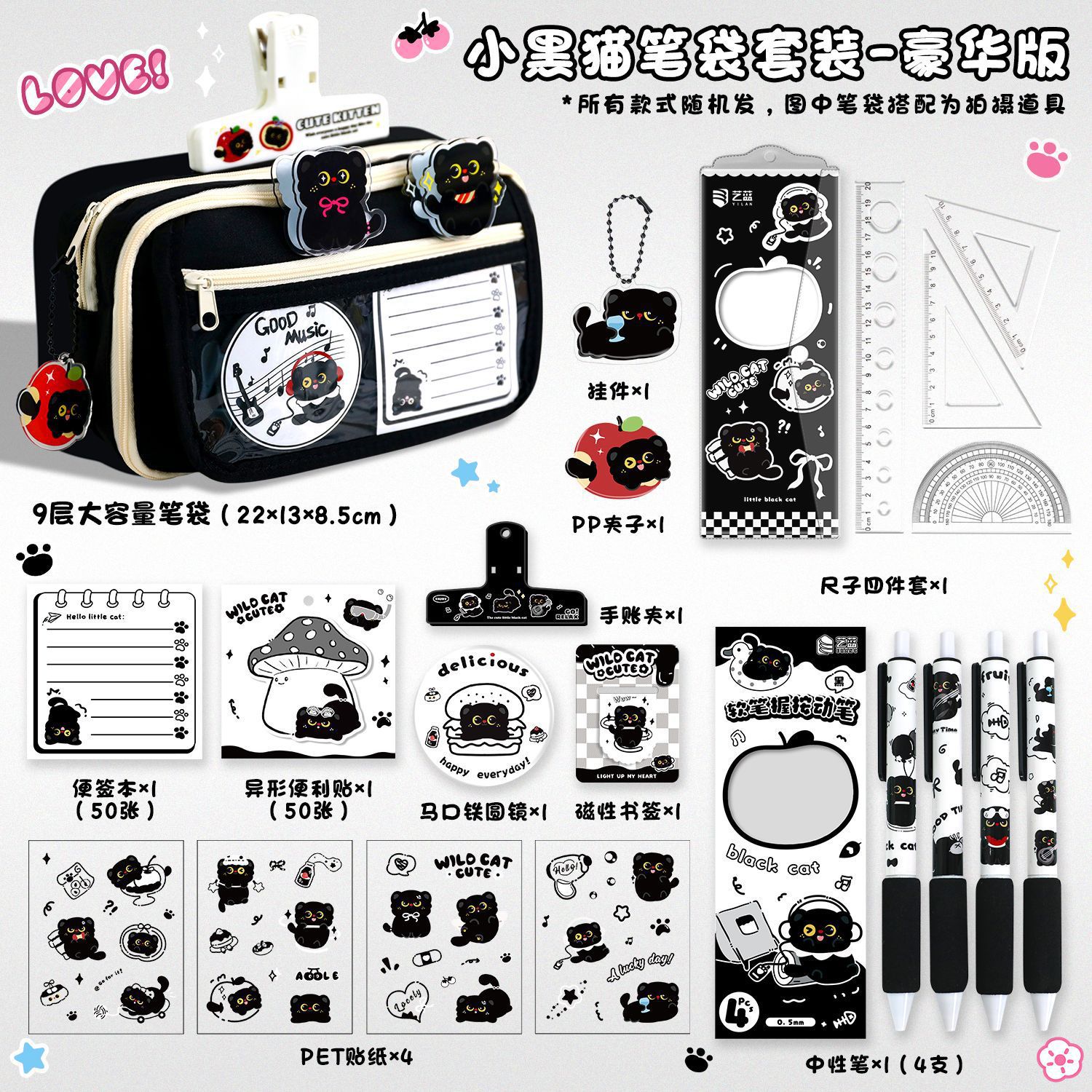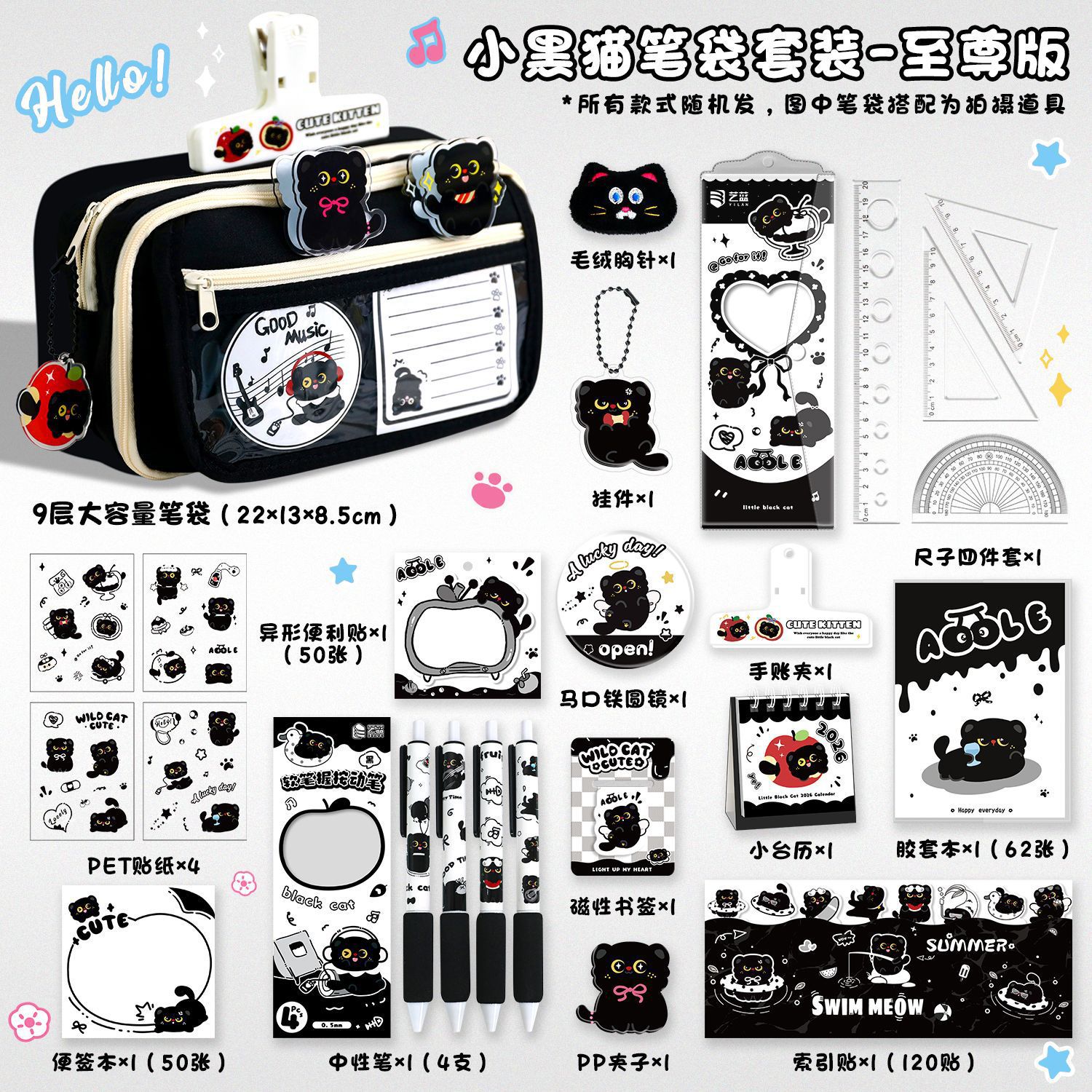 黑猫文具套装大容量多层文具盒学生实用铅笔盒开学季礼物班级奖励