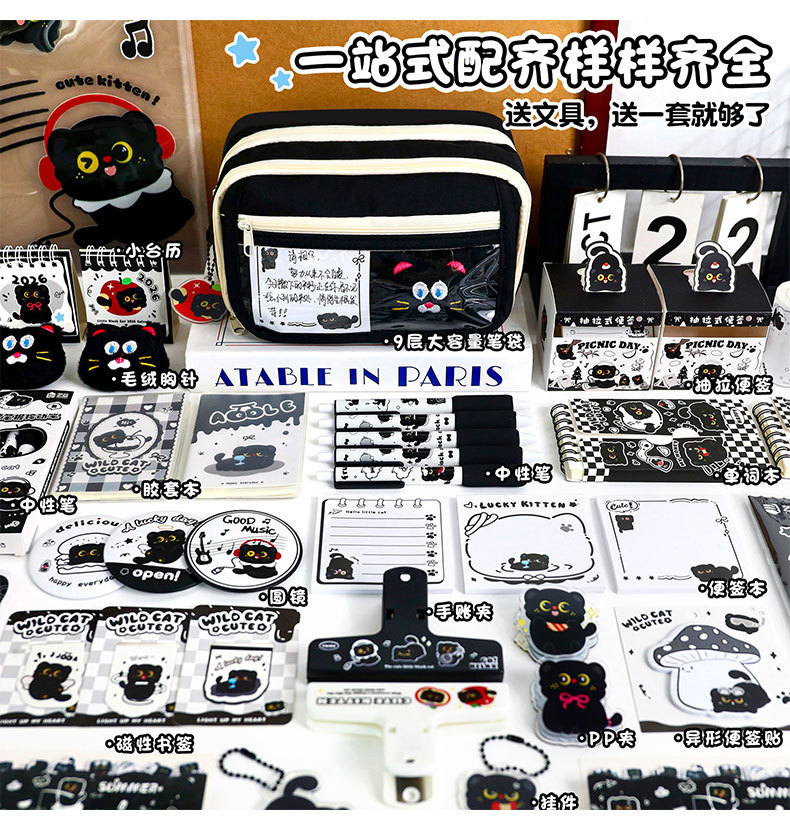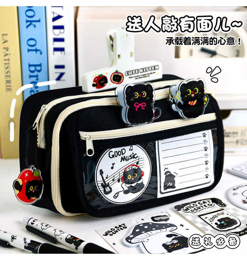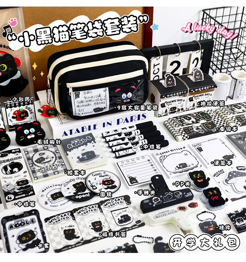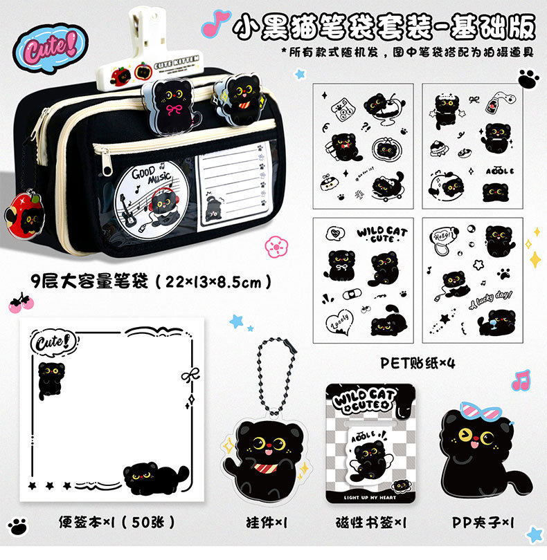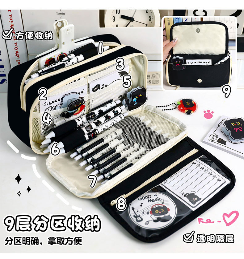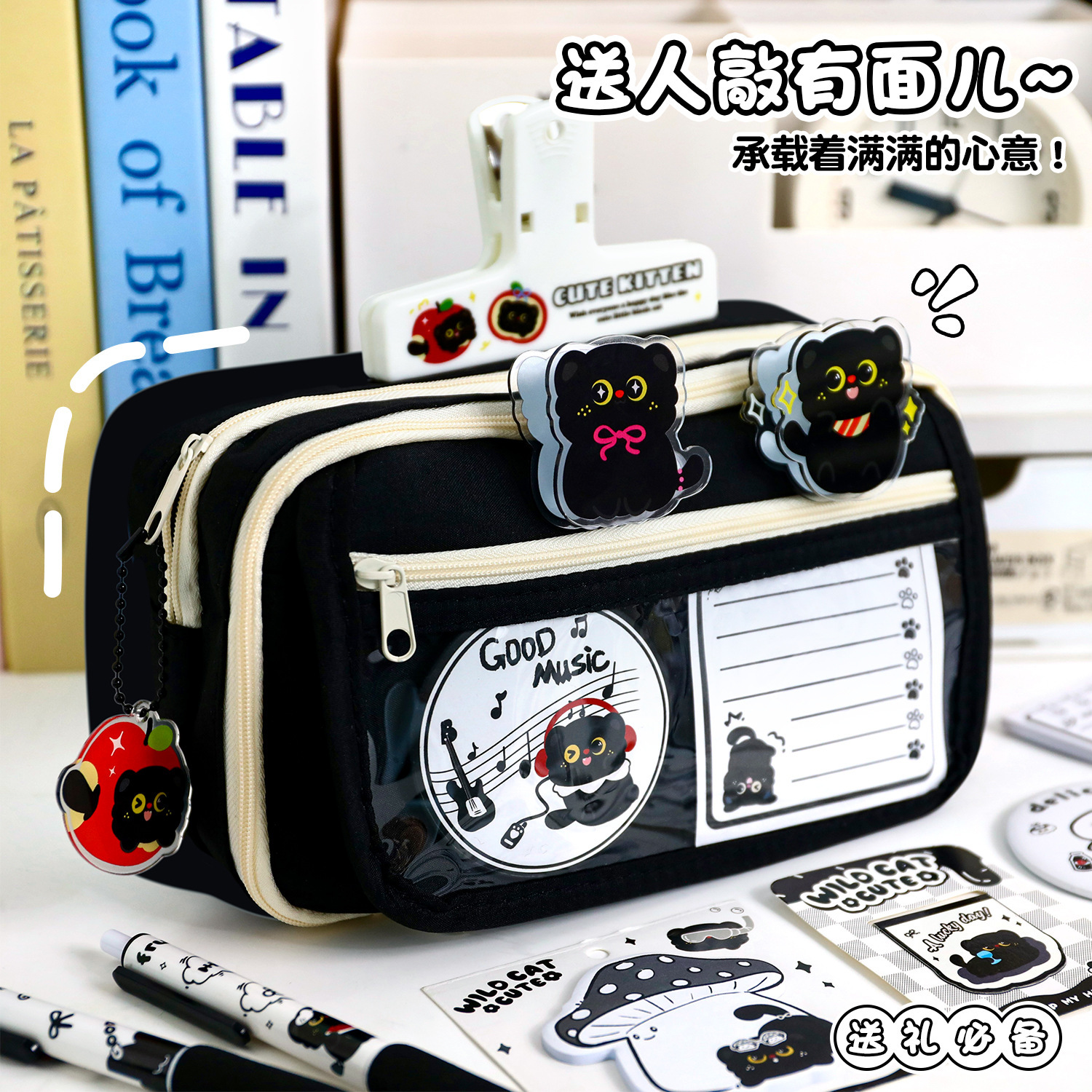 黑猫文具套装大容量多层文具盒学生实用铅笔盒开学季礼物班级奖励