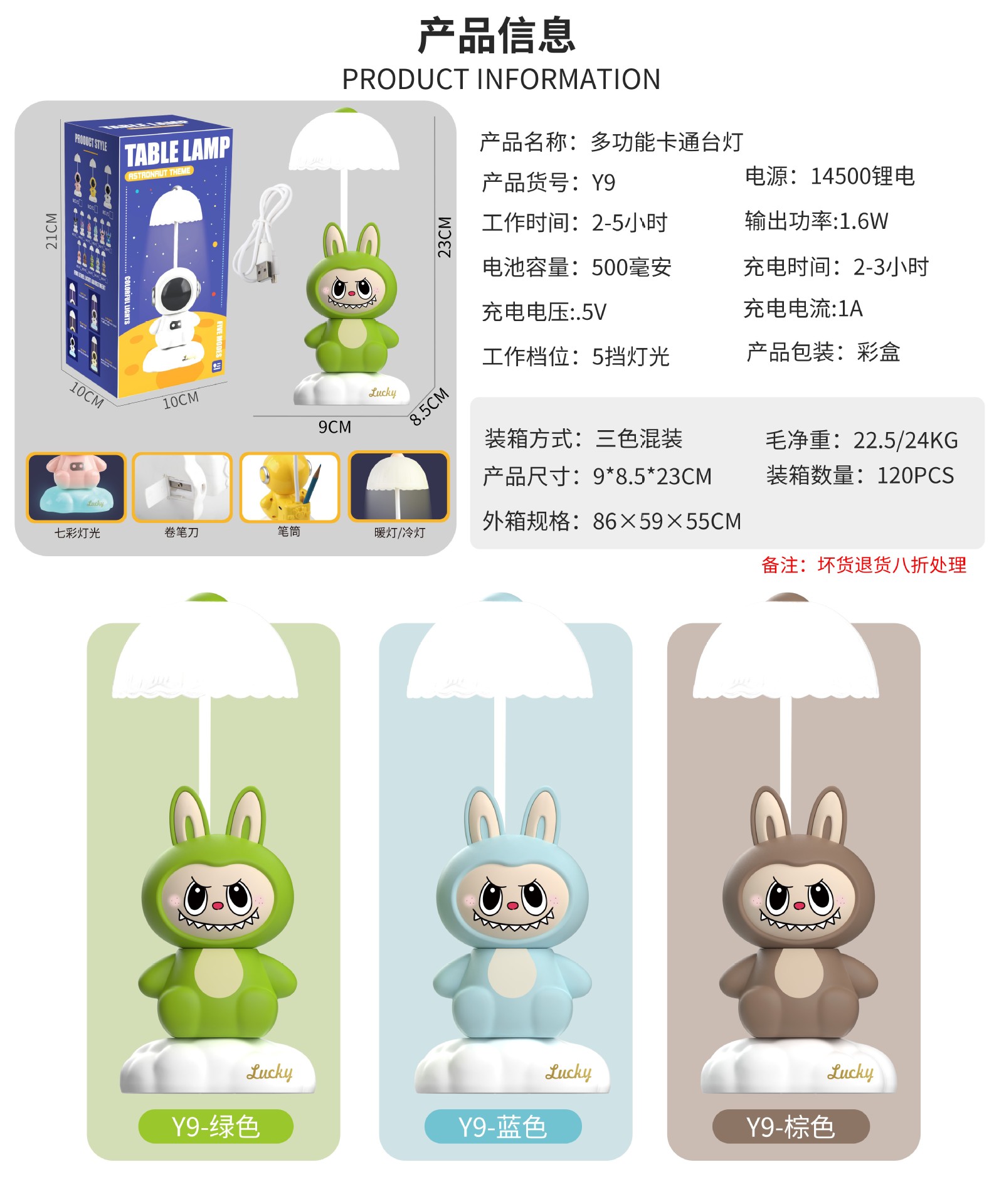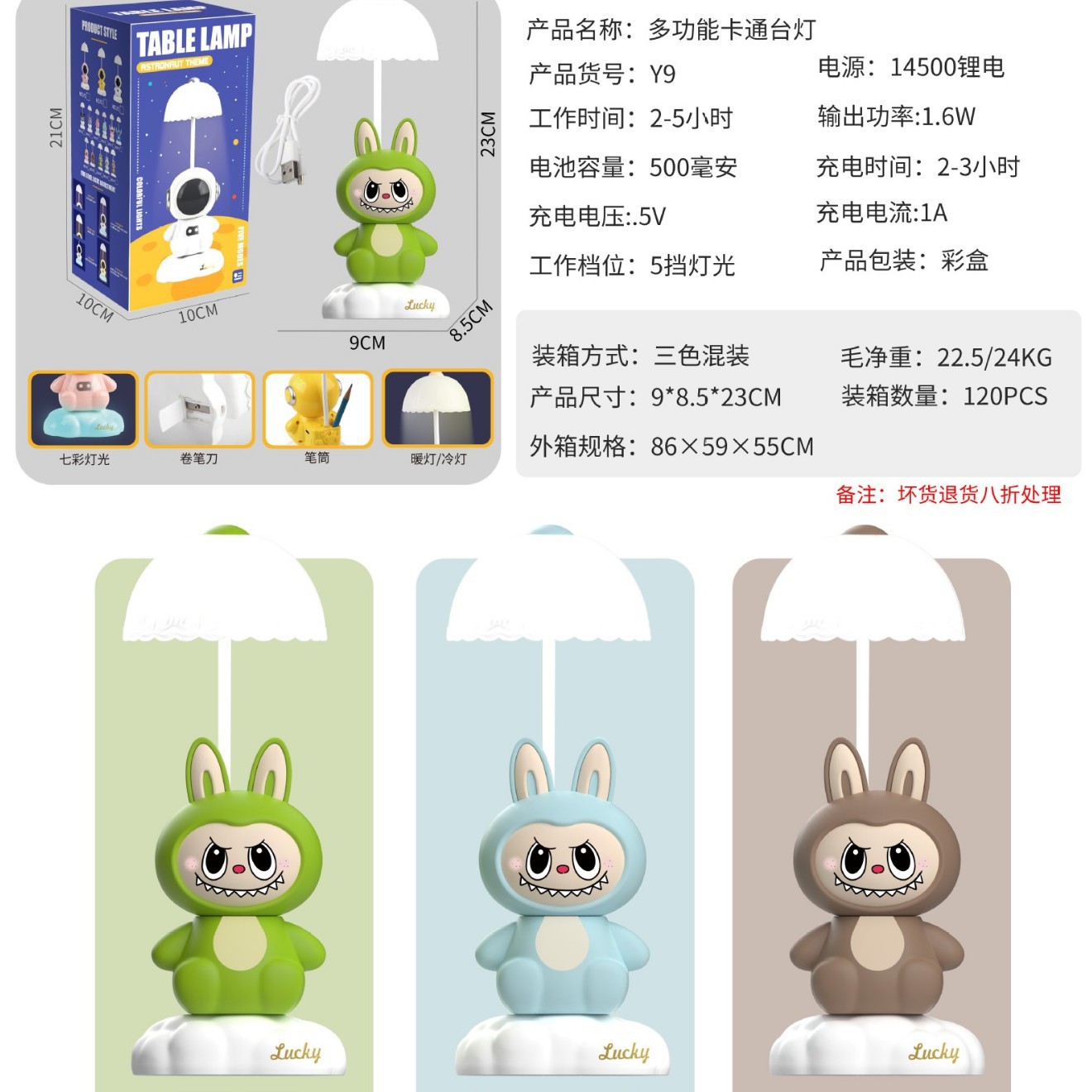 跨境3档阿布布充电台灯(带卷笔刀)摆摊充电LED护眼台灯USB充