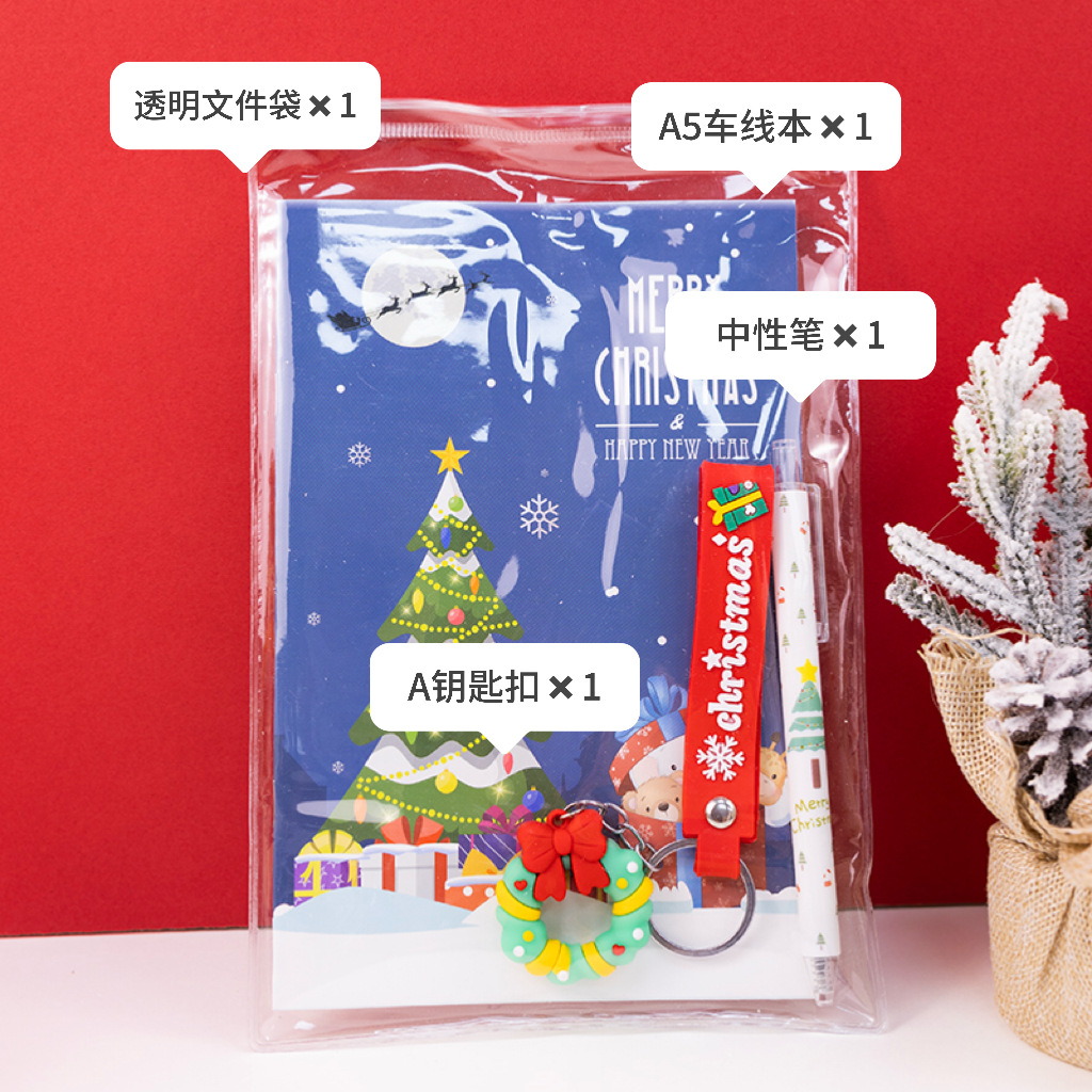 圣诞节礼物文具礼品套装学生奖品车线本按动笔公仔钥匙扣文具套装