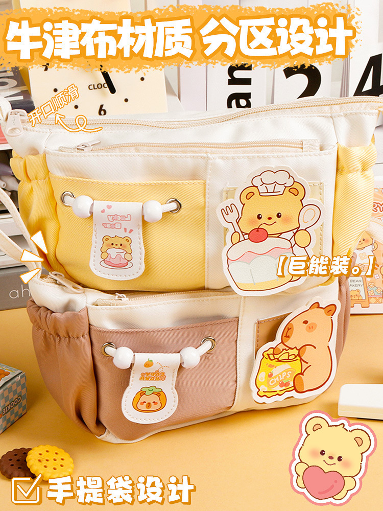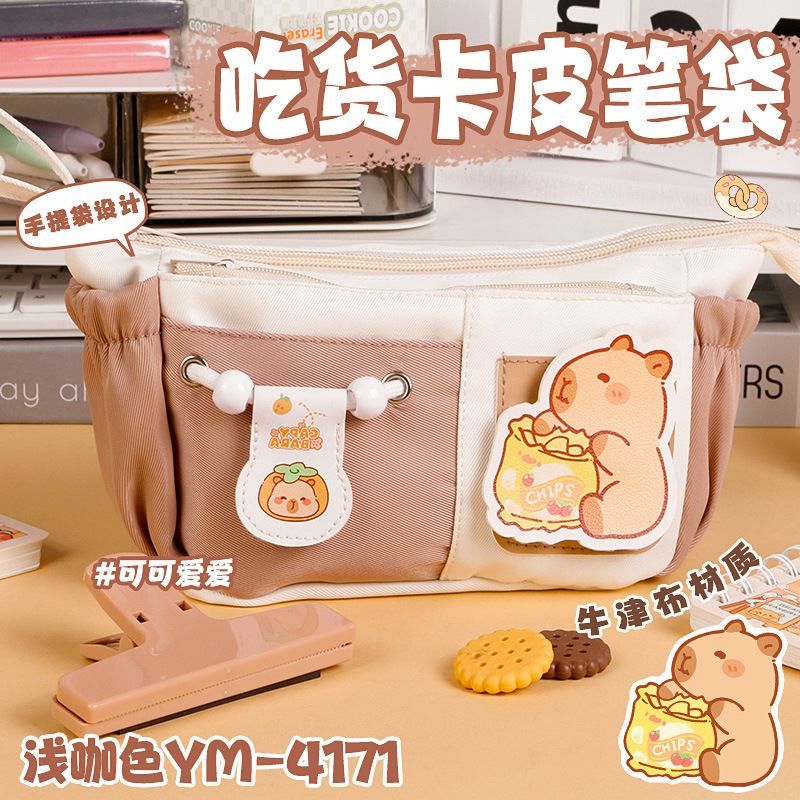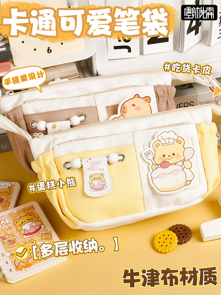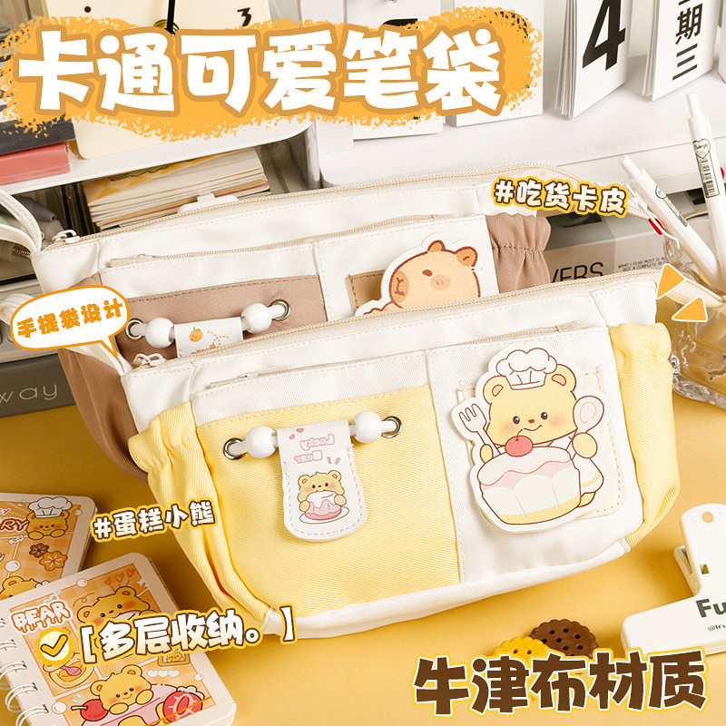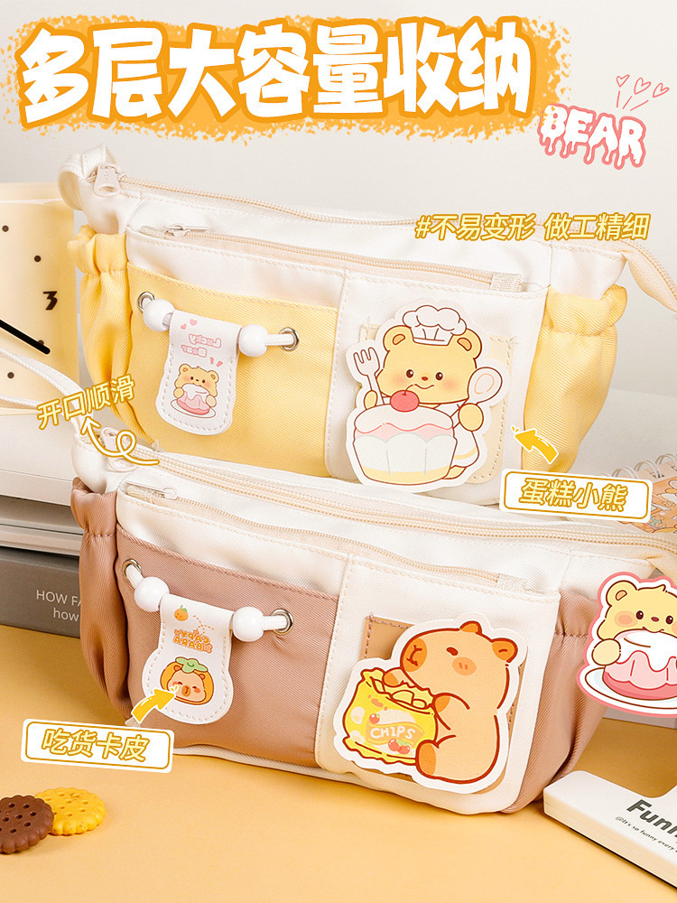 新款萌趣卡皮巴拉笔袋开学礼品大容量学生高颜值多层收纳笔袋批发