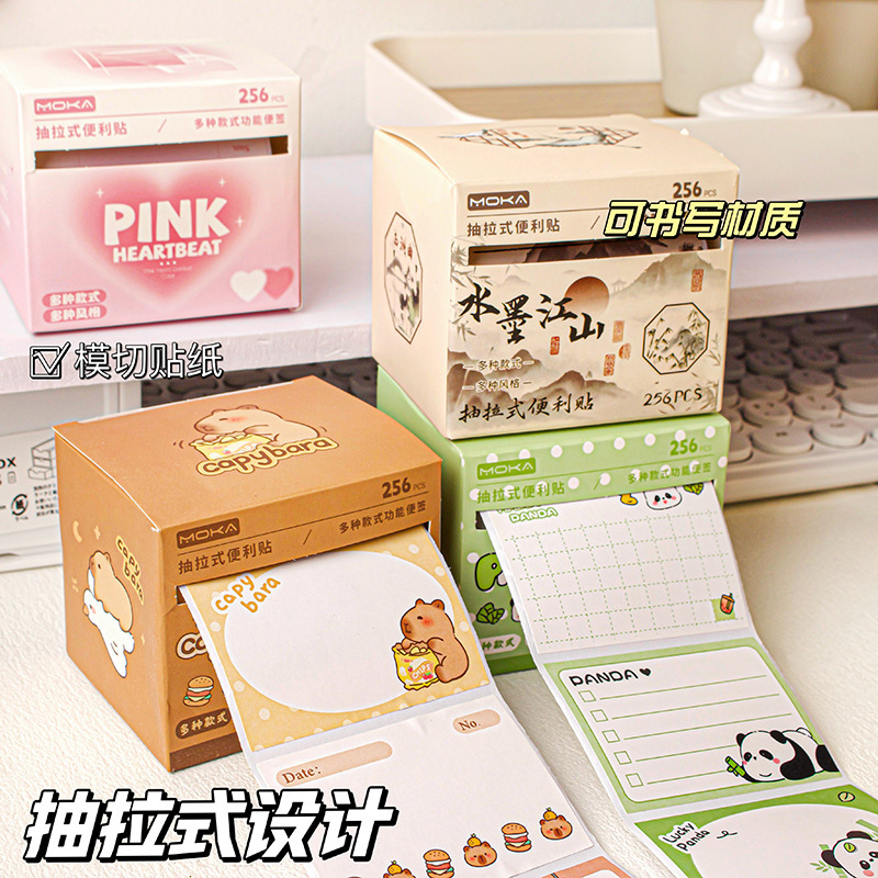 创意抽拉式便利贴可爱卡通错题便签纸学生用全粘性索引标签纸贴纸
