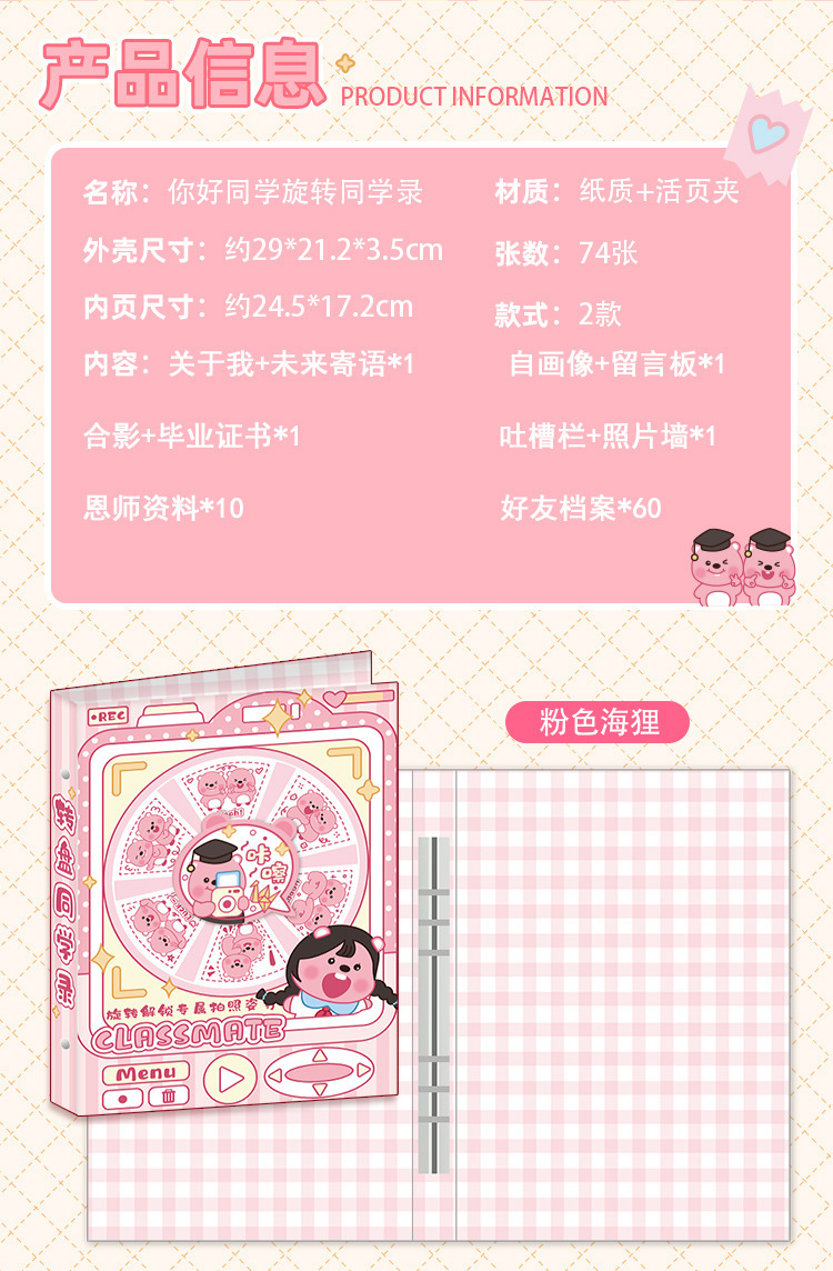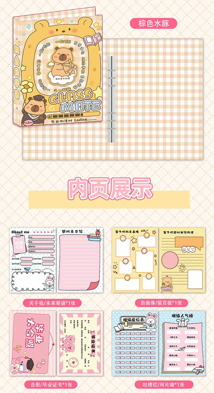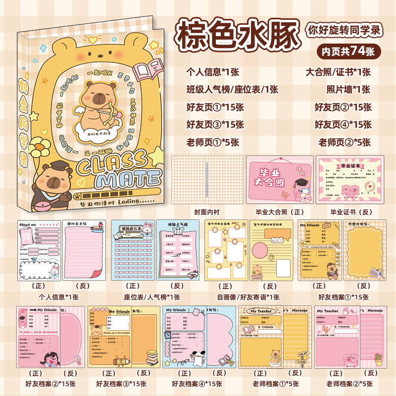 六一新款卡皮巴拉旋转同学录创意高颜值毕业纪念册卡通学生通讯录