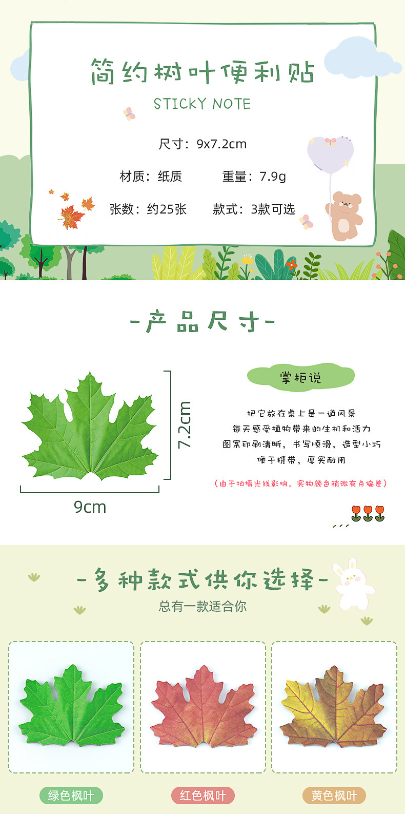 枫叶装饰贴纸留言贴可粘贴许愿墙贴素材贴纸仿真树叶许愿便利贴