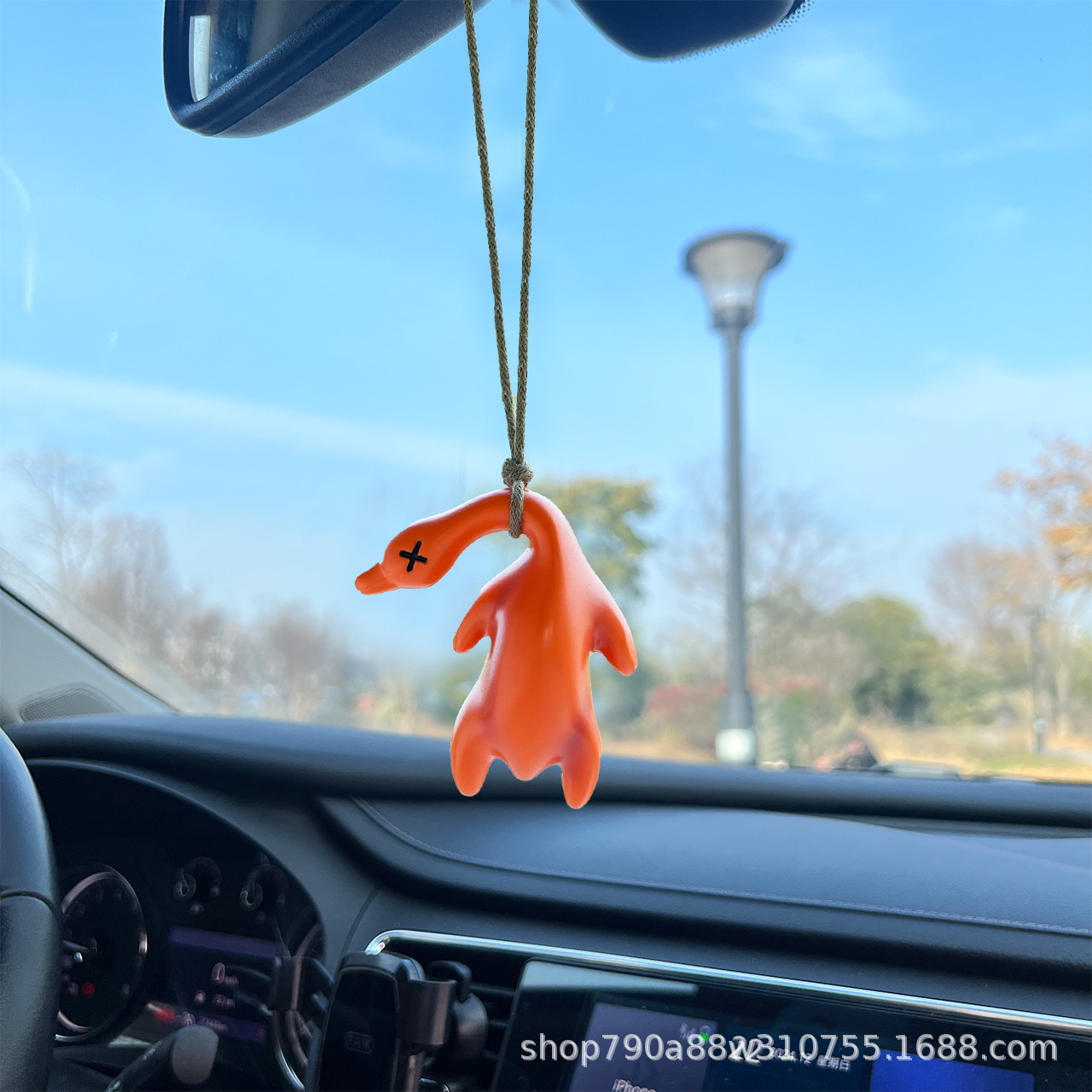 网红可爱车内装饰车载渐变烤鸭小挂饰汽车创意后视镜变色鸭子挂件