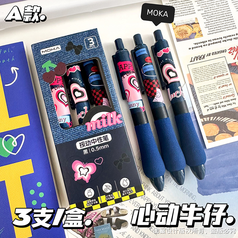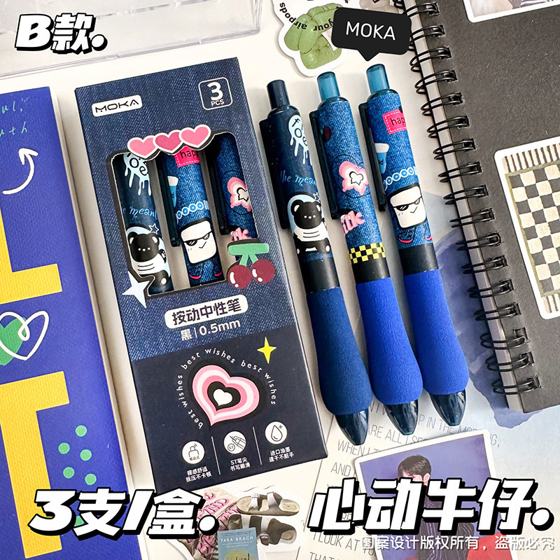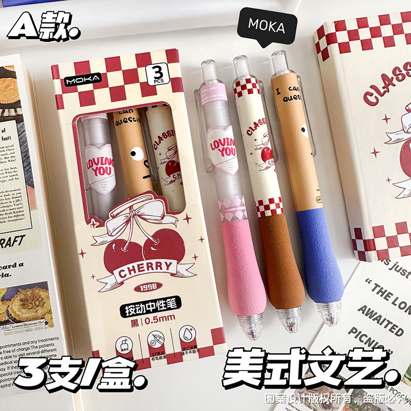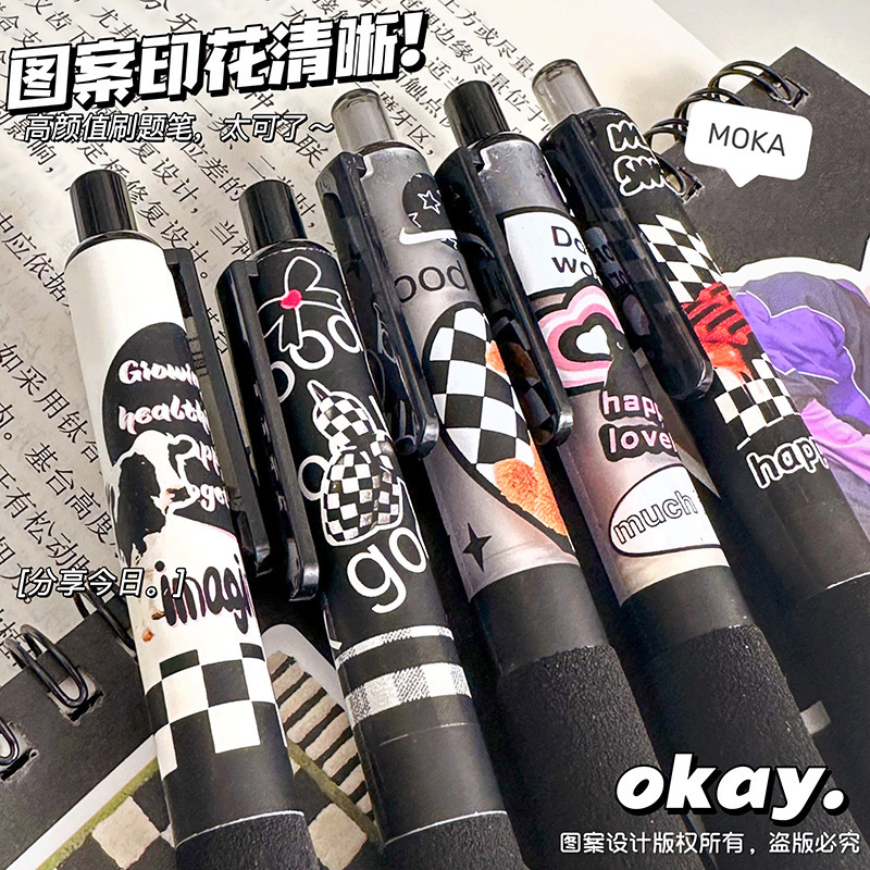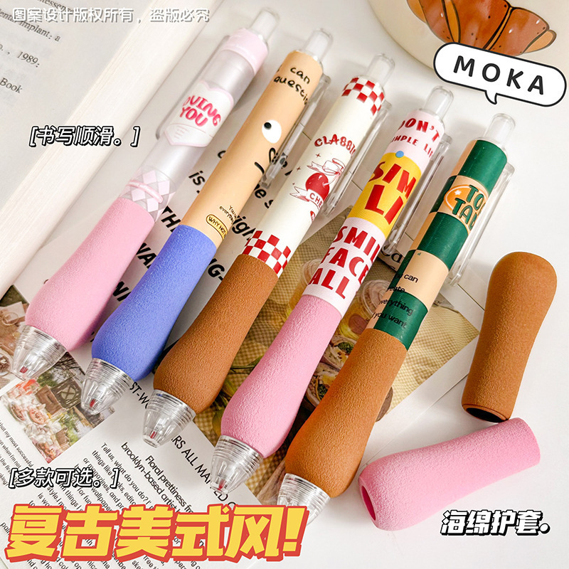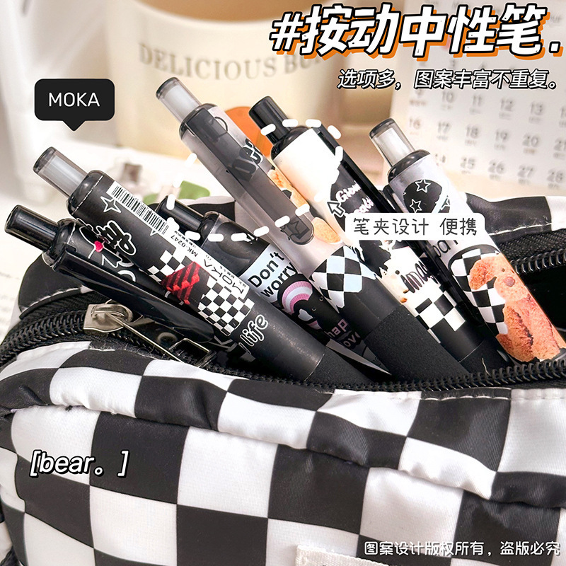 新款美式复古限定胖胖头按动中性笔速干高颜值黑笔学生ST头刷题笔