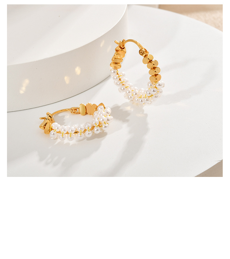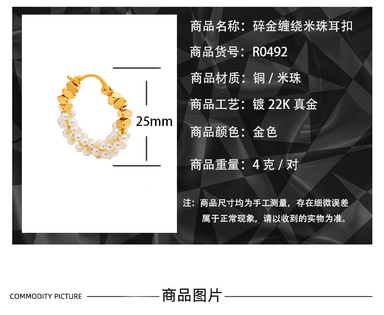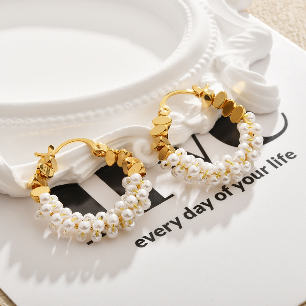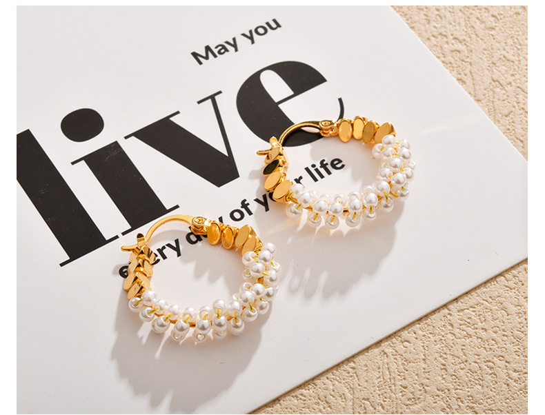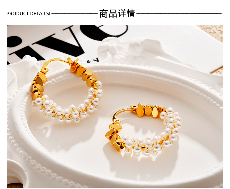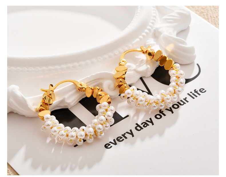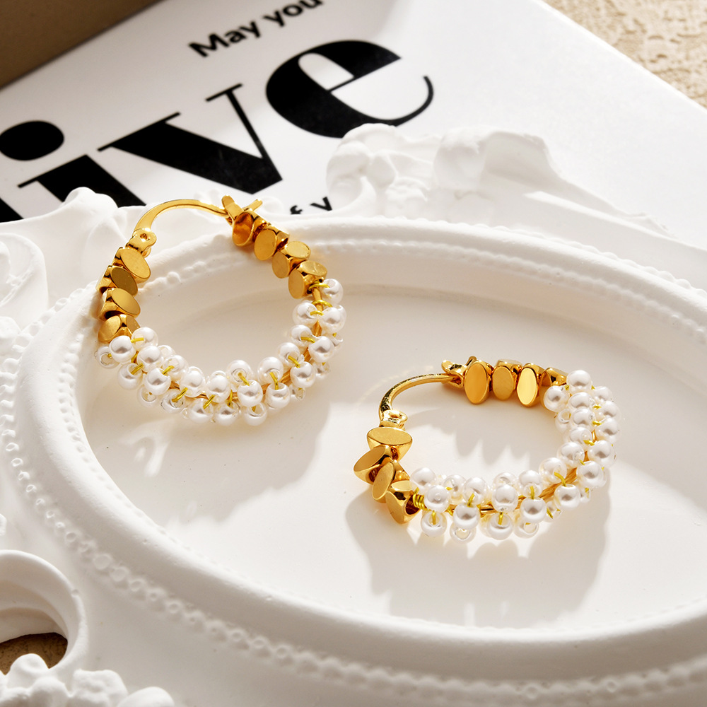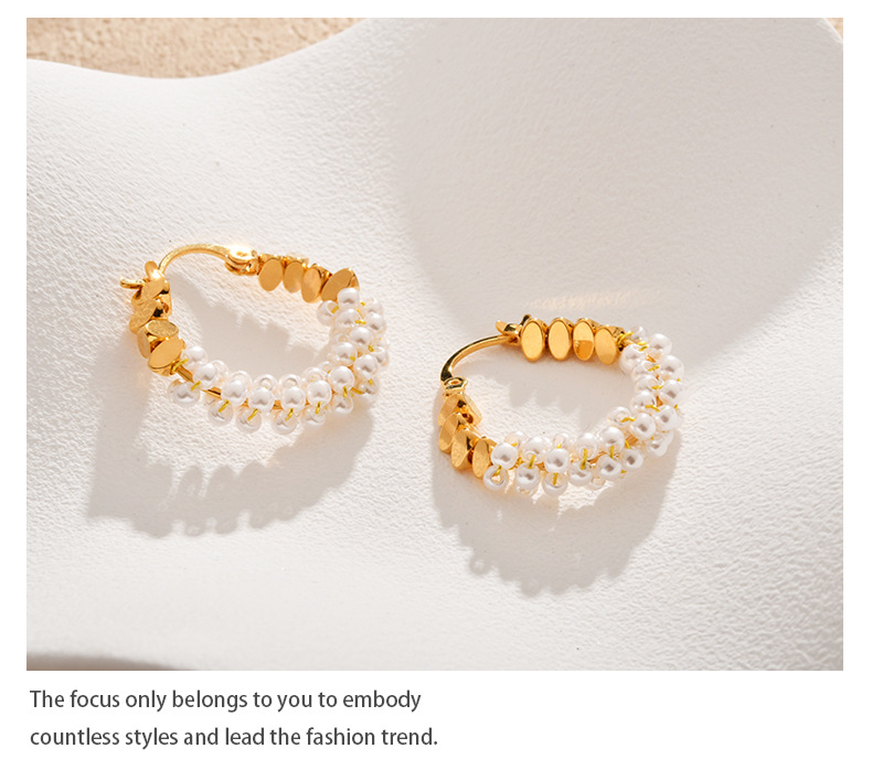 精致新款碎金缠绕珍珠素圈耳扣轻奢高级感简约气质百搭耳环耳饰品