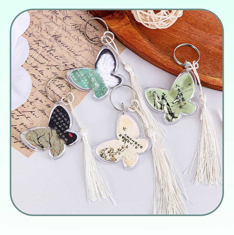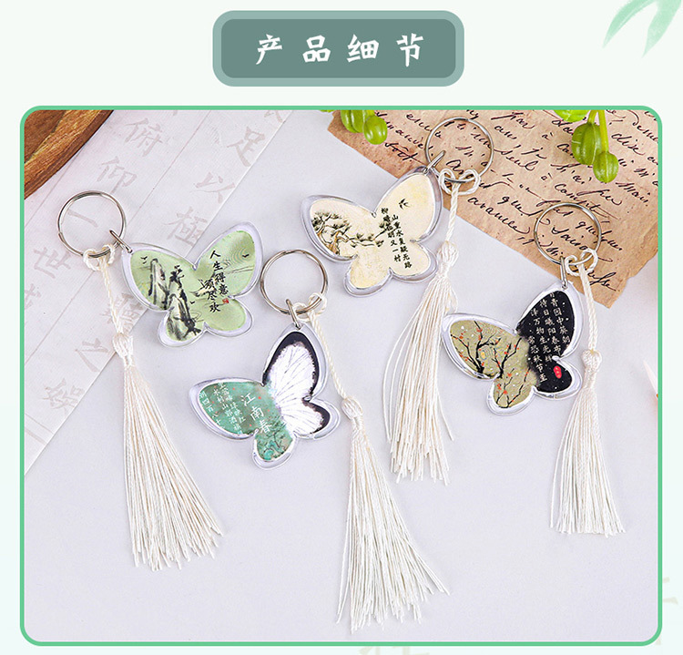 创意古风蝴蝶流苏钥匙扣国风国潮钥匙圈挂饰礼品书包diy装饰挂件
