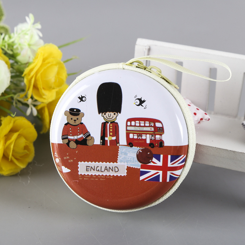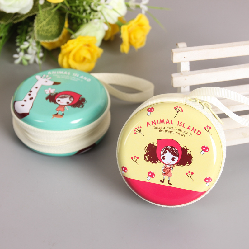 新款卡通马口铁零钱包迷你儿童圆形拉链包耳机线钥匙收纳包袋