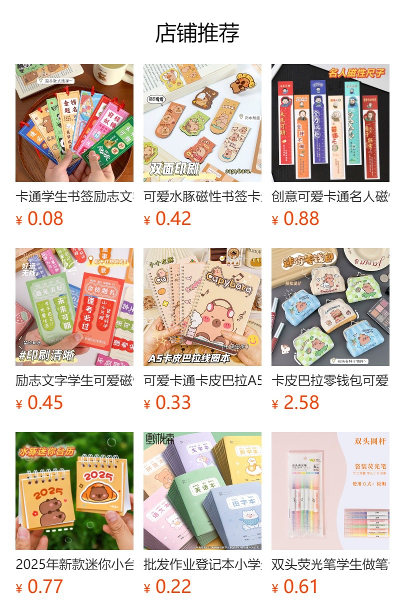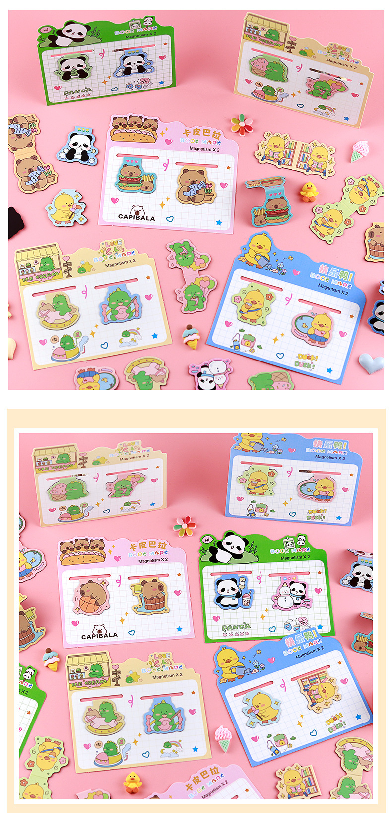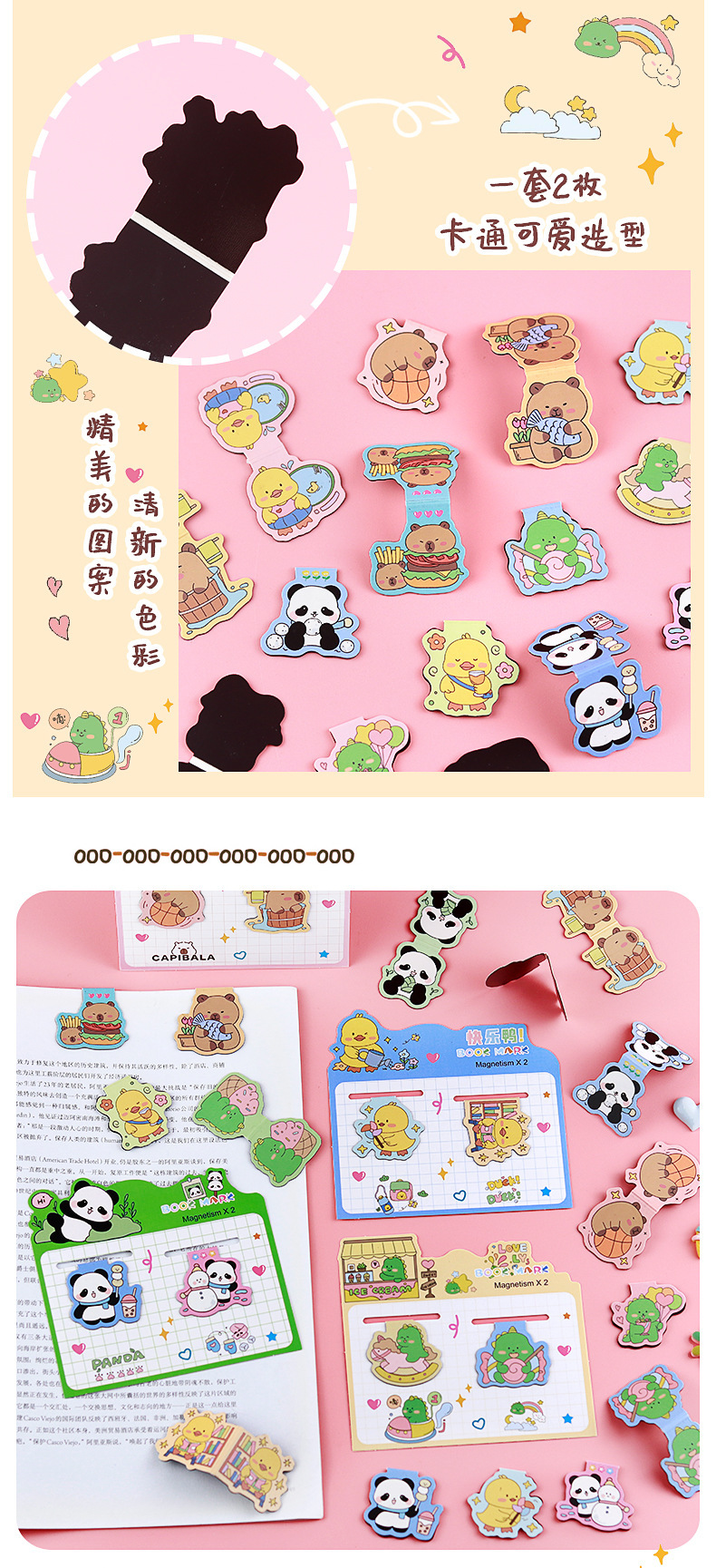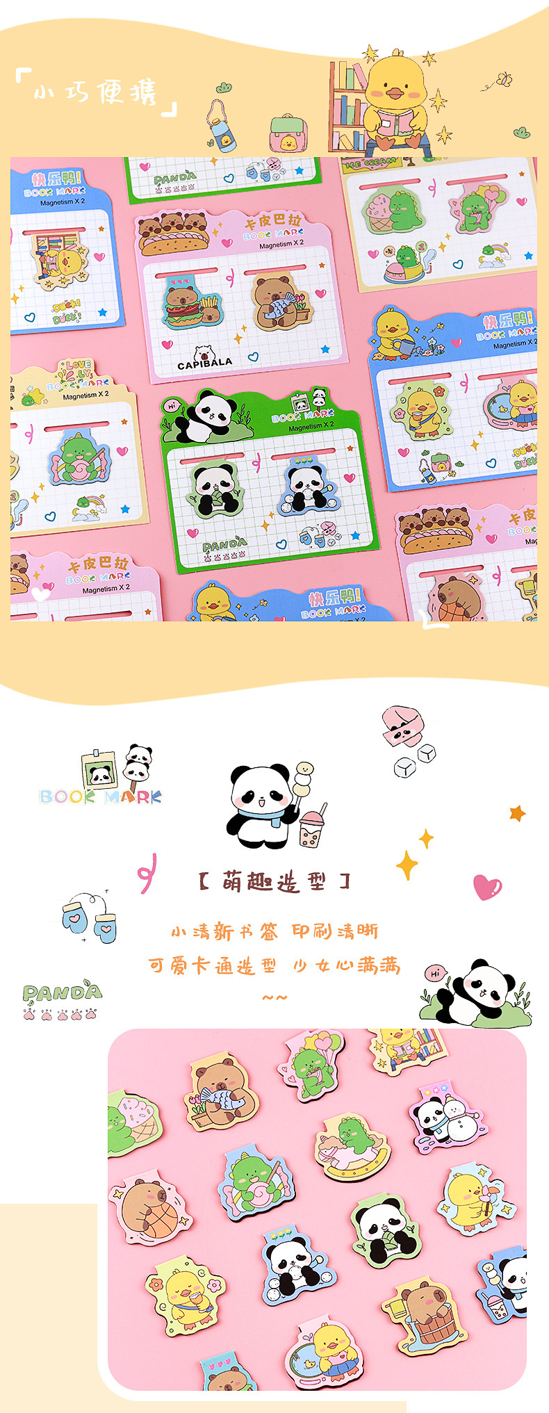 卡皮巴拉磁性书签装饰阅读标记个性小鸭子卡通书签品类丰富奖励品
