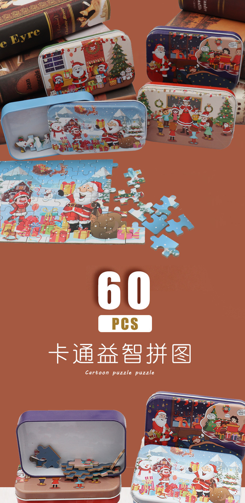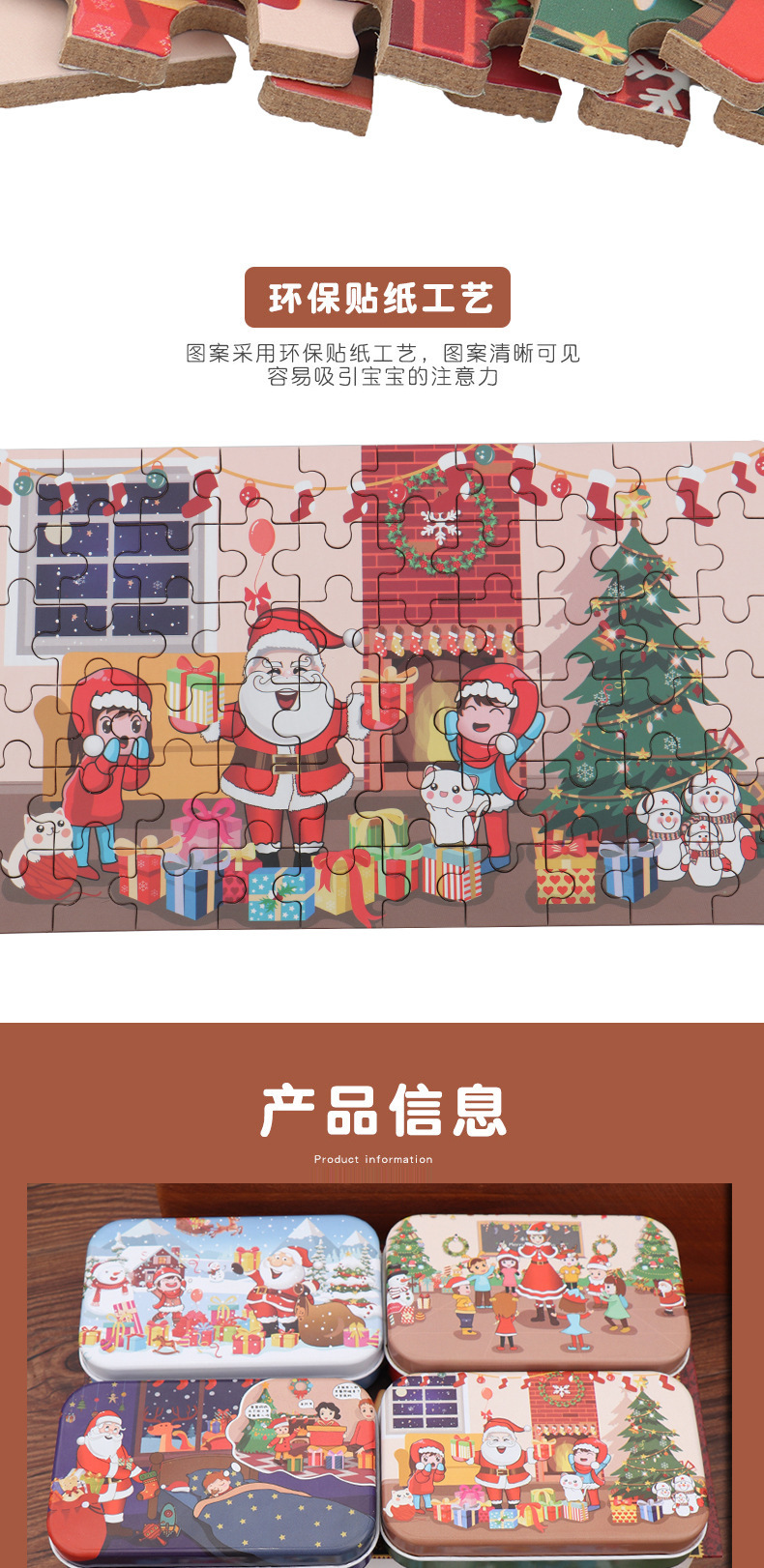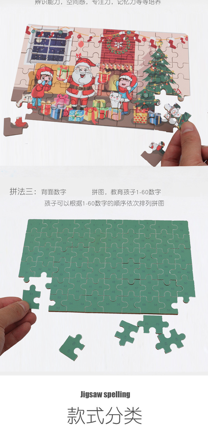 圣诞节diy小礼物60片装儿童手工圣诞老人益智拼图木质手作礼品