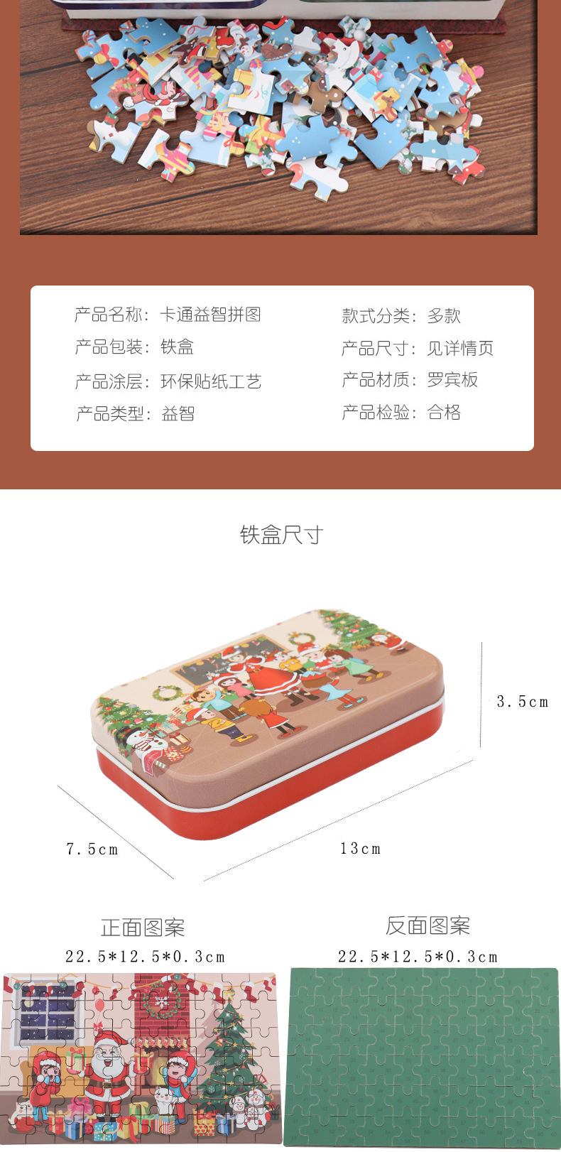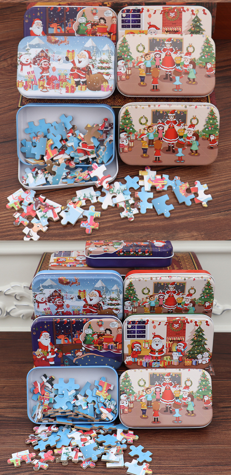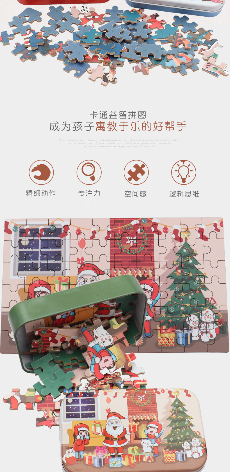 圣诞节diy小礼物60片装儿童手工圣诞老人益智拼图木质手作礼品