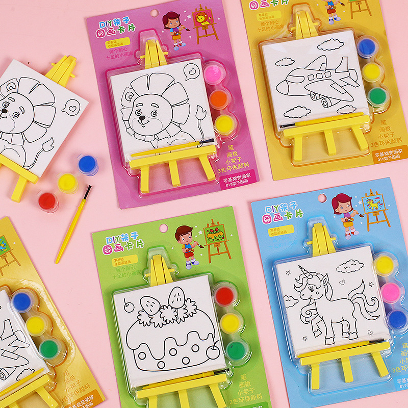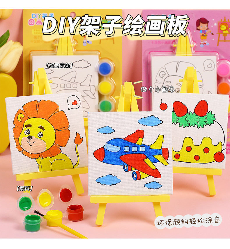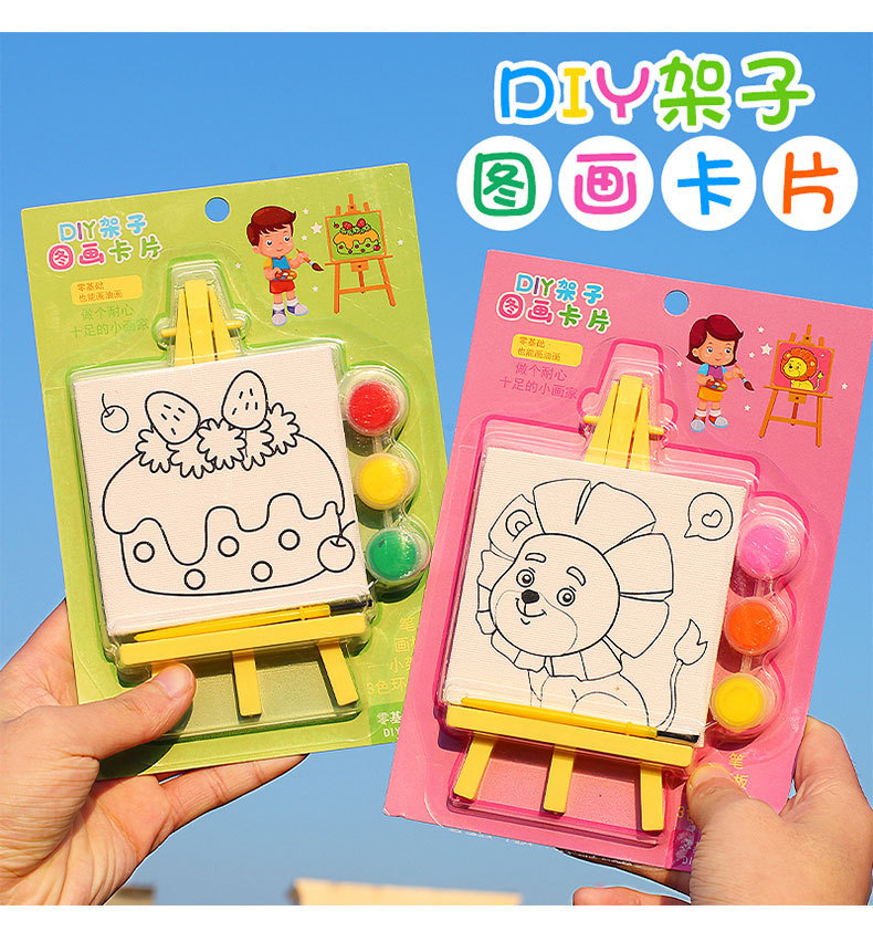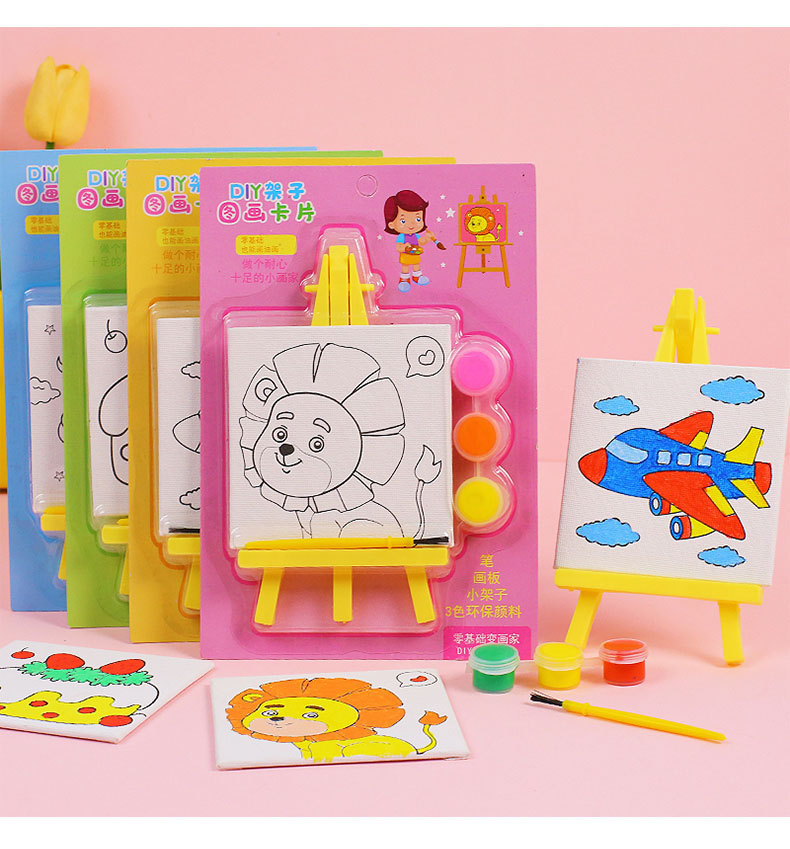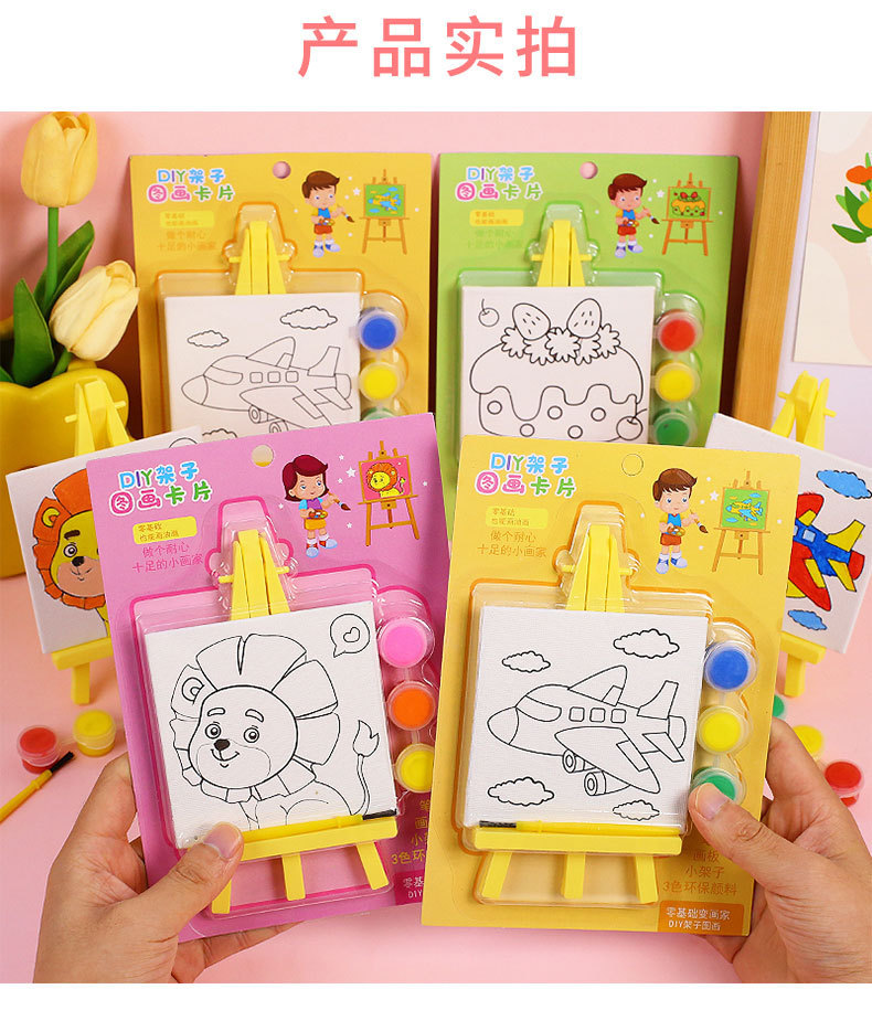 儿童绘画套装DIY架子画板 创意卡通手绘涂鸦填色卡片幼儿美术水彩