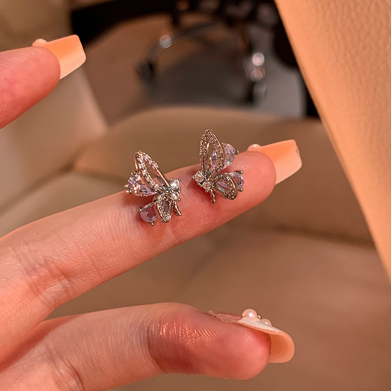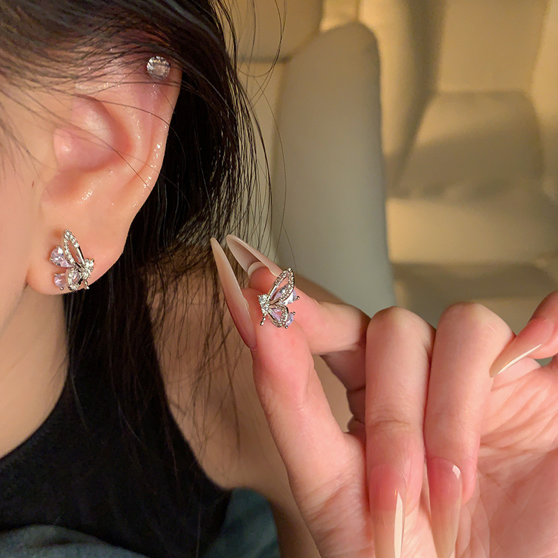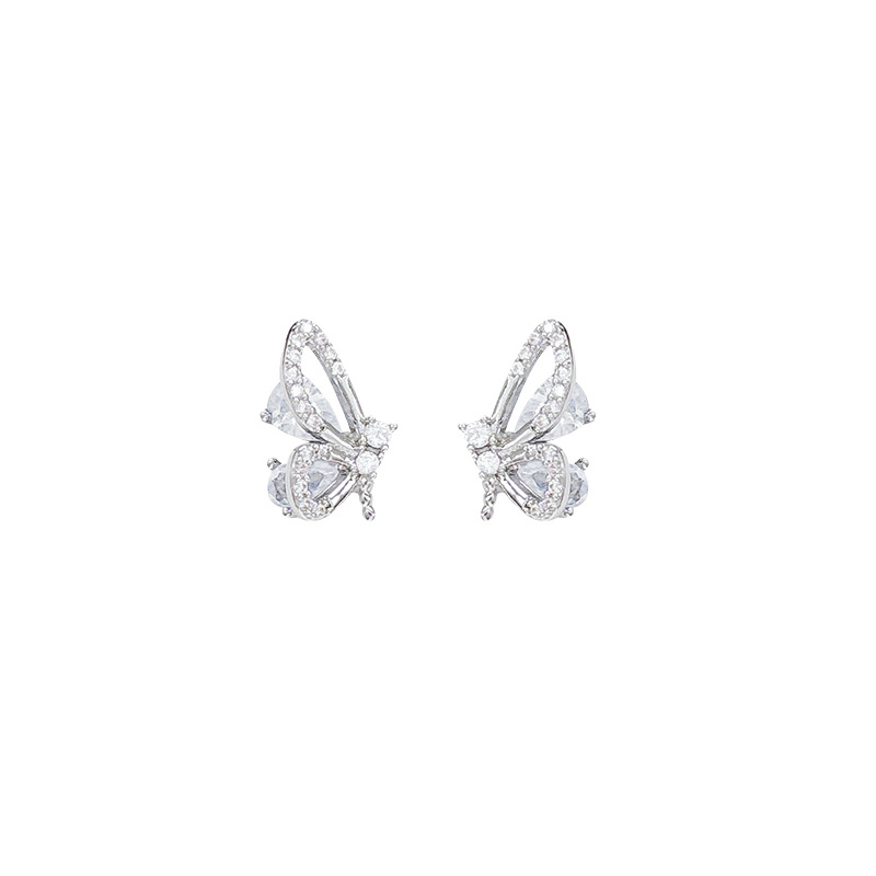 2025新款时尚轻奢银色蝴蝶耳钉女高级感精致耳环爆款韩系气质耳饰