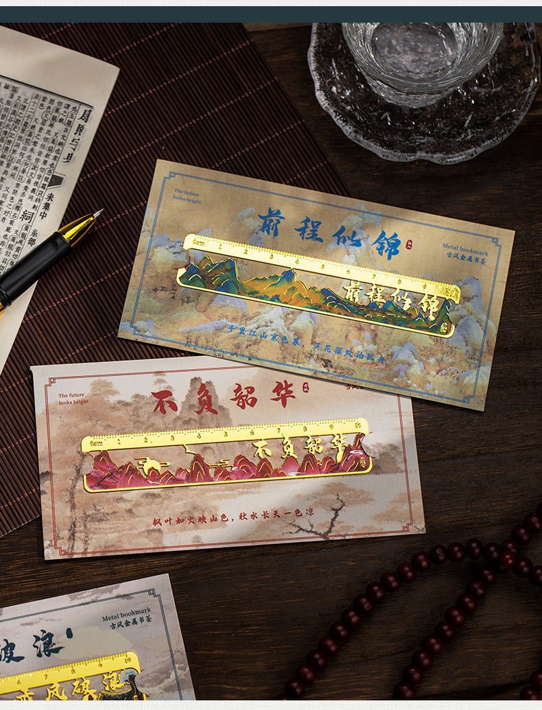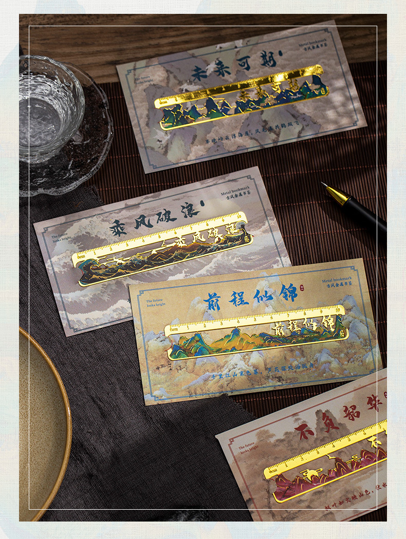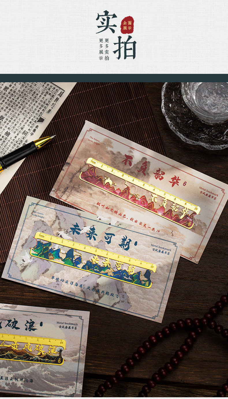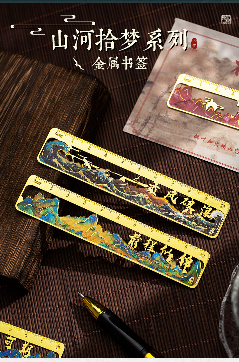 千里江山国风金属书签创意励志文字直尺书签文创礼品送学生礼物