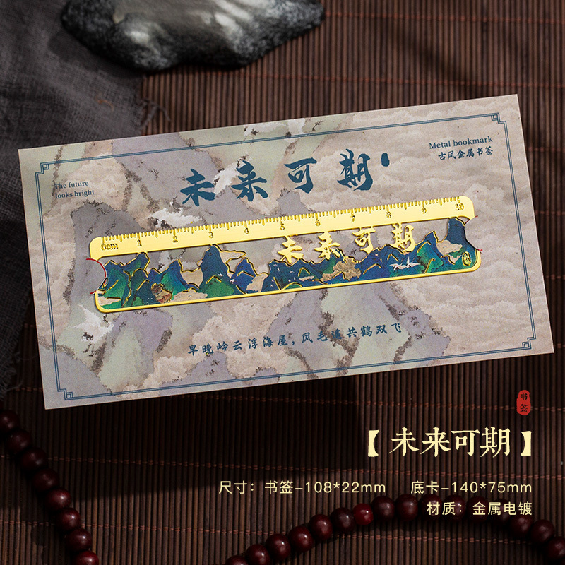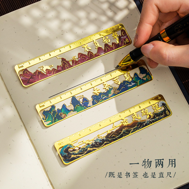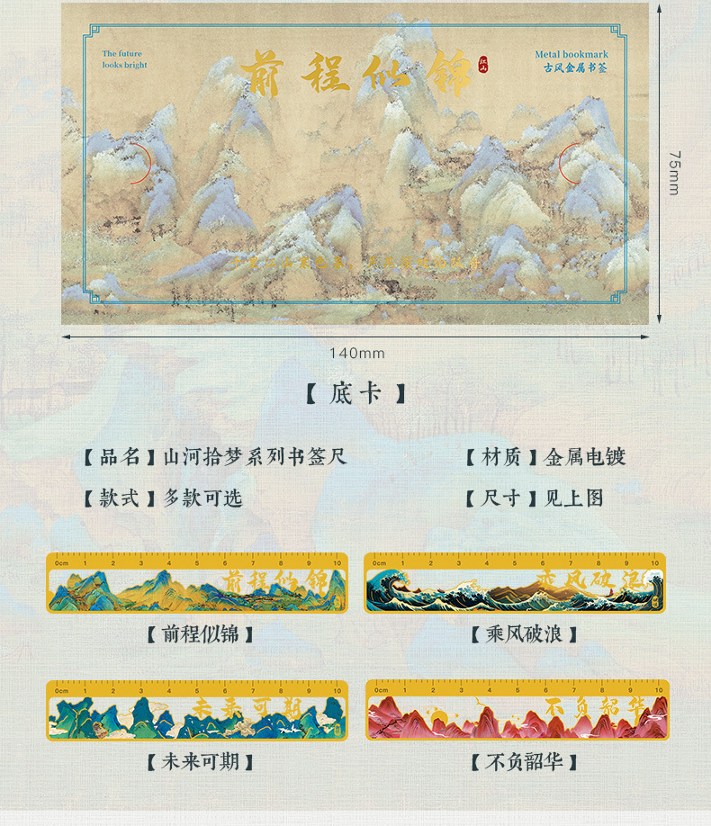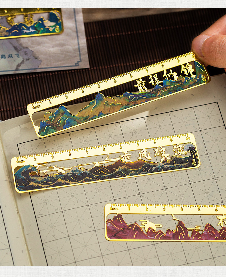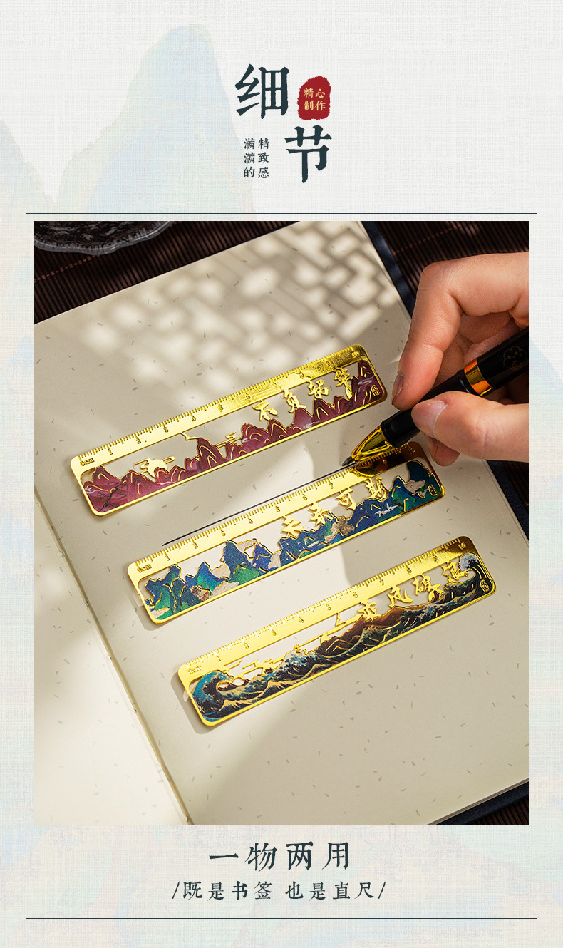 千里江山国风金属书签创意励志文字直尺书签文创礼品送学生礼物