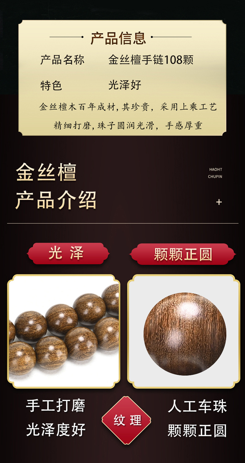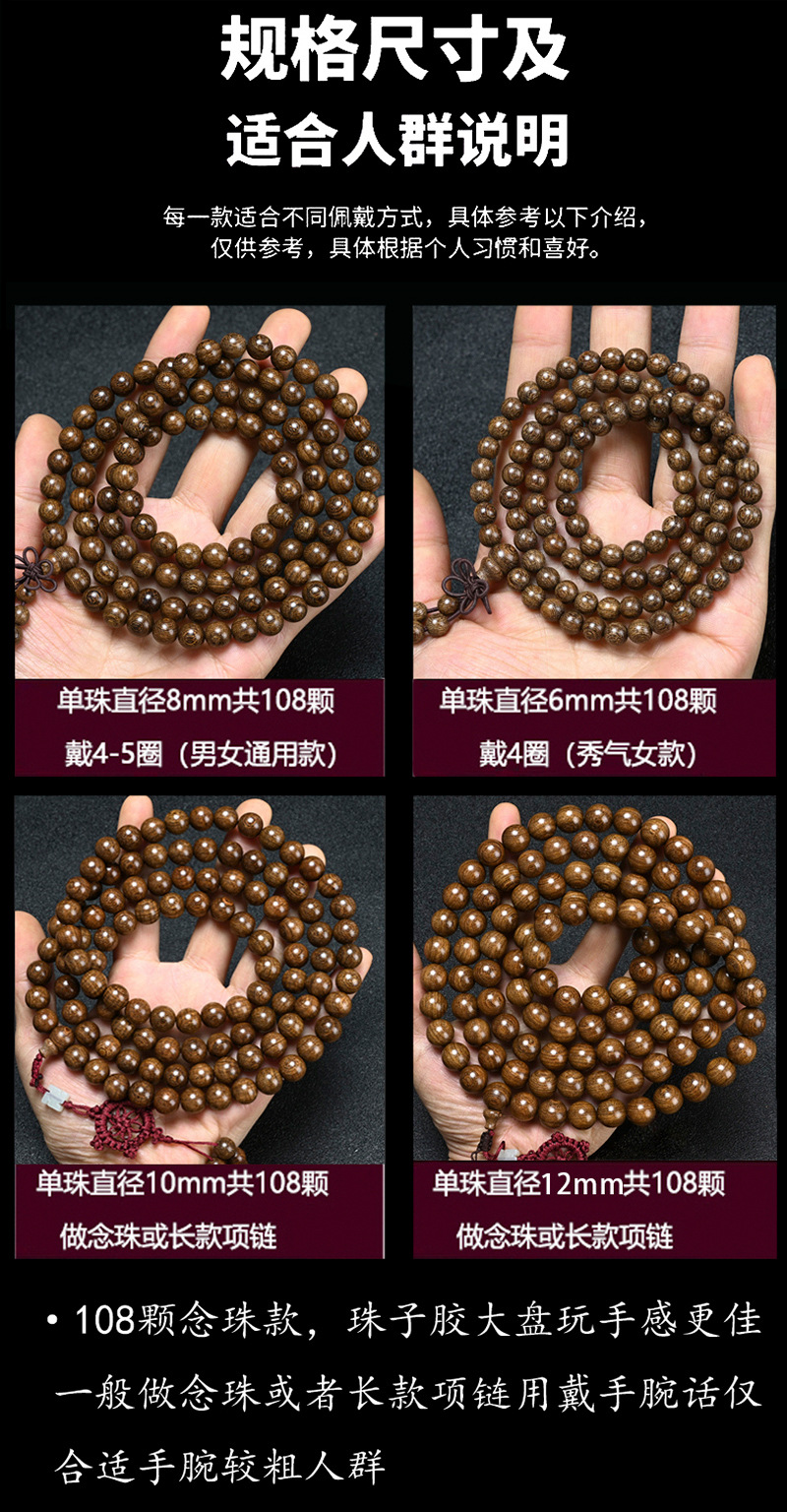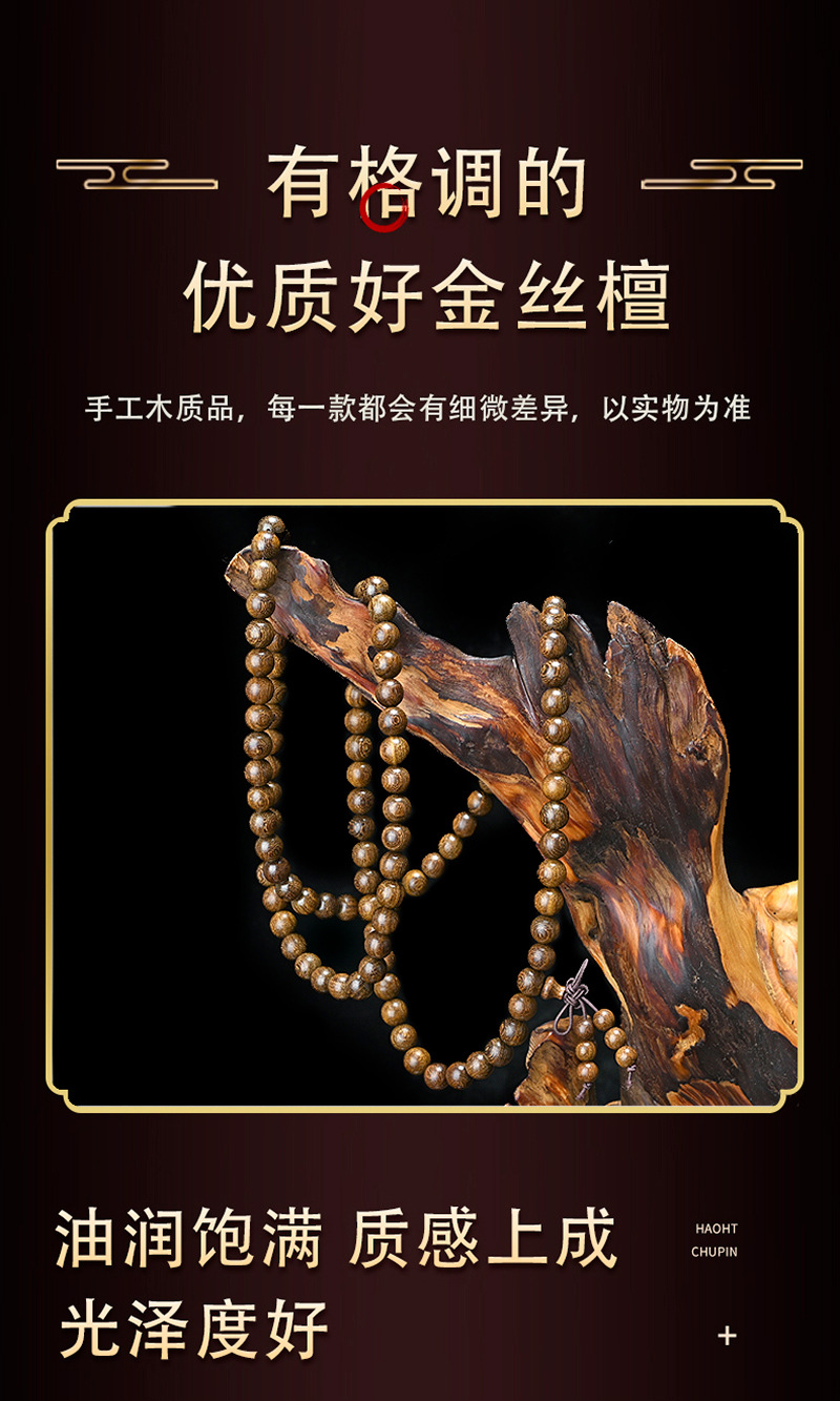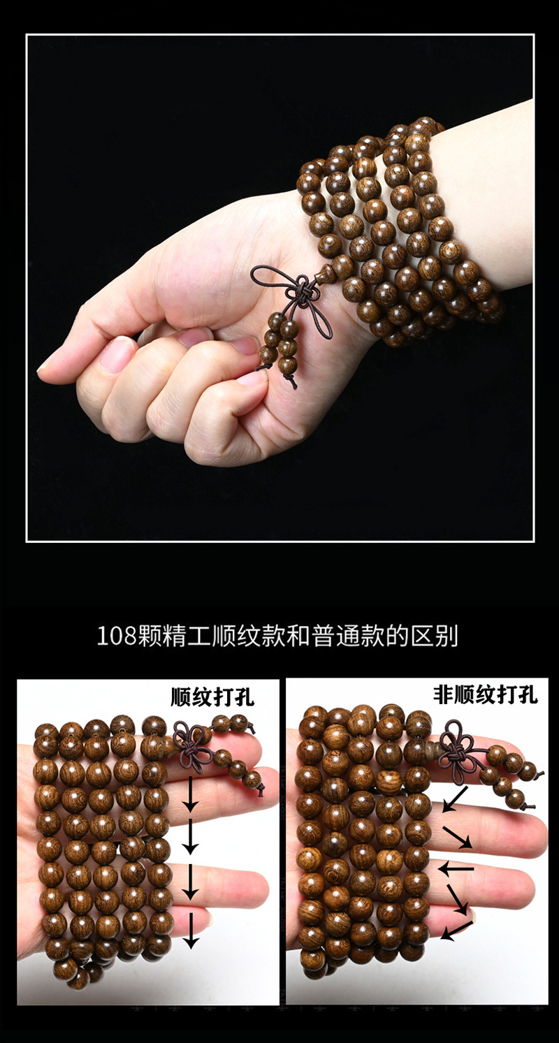 金丝檀手链0.6 8mm108颗沉水佛珠男女款手串念珠摆摊饰品批发
