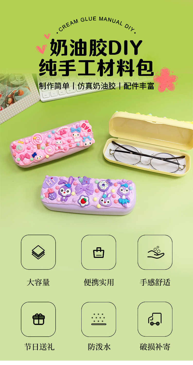 儿童手工diy奶油胶材料包制作卡通可爱玉桂狗儿童玩具眼镜盒收纳