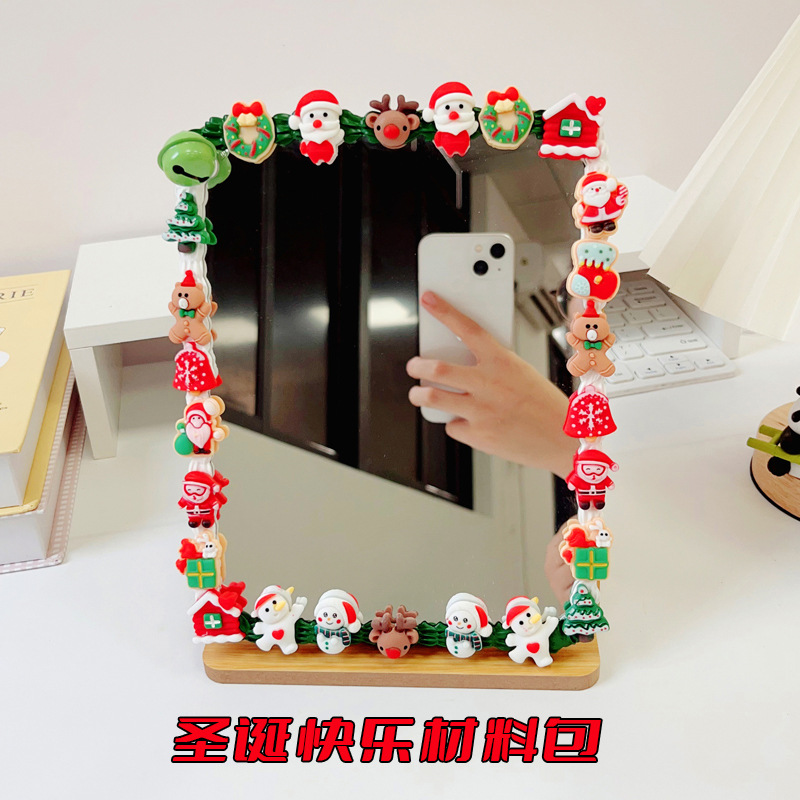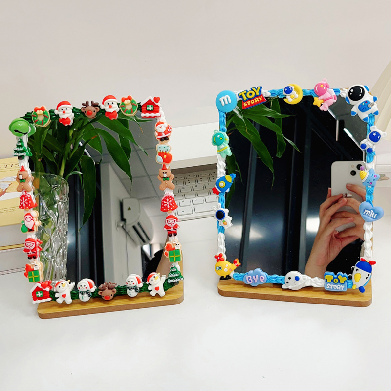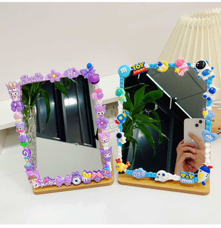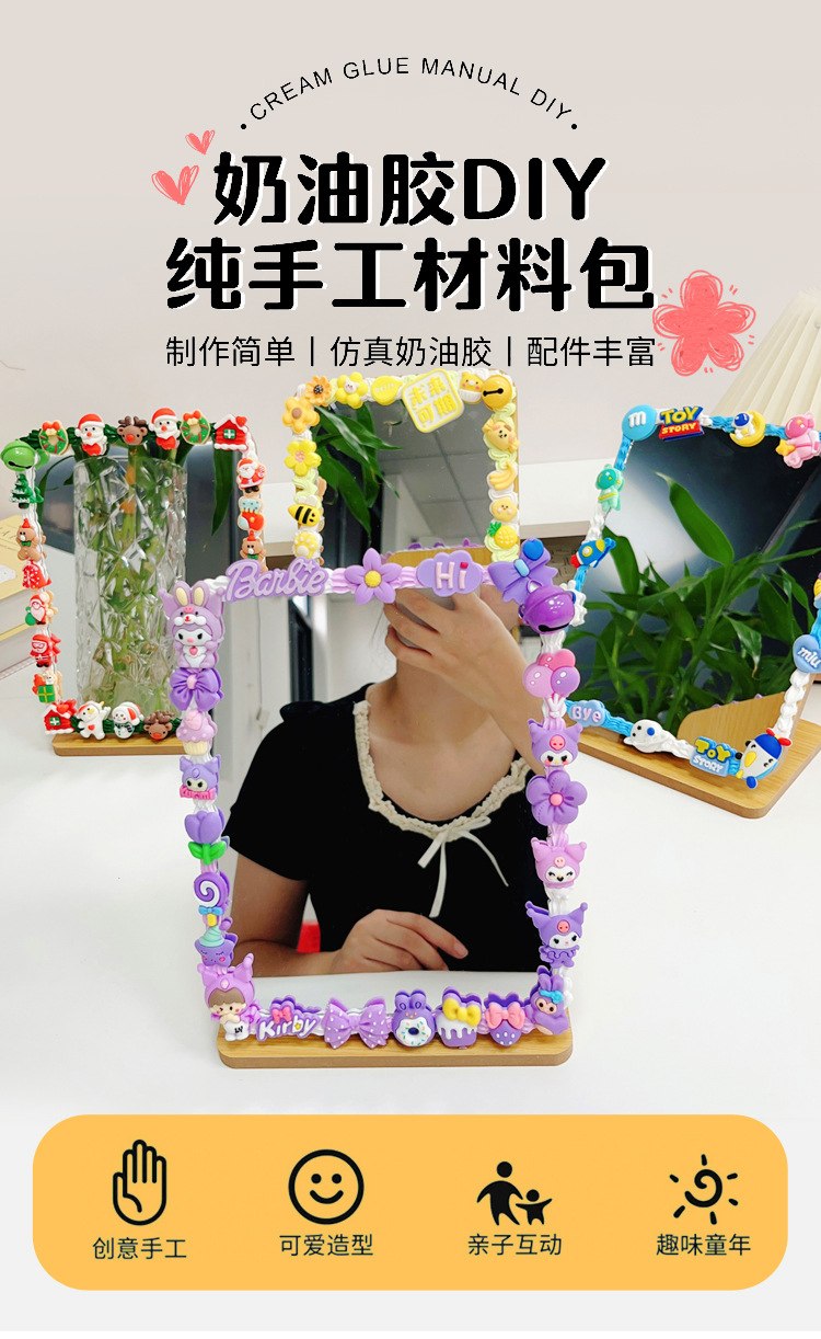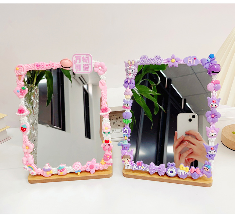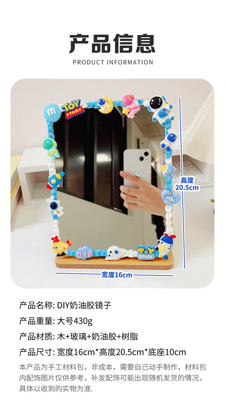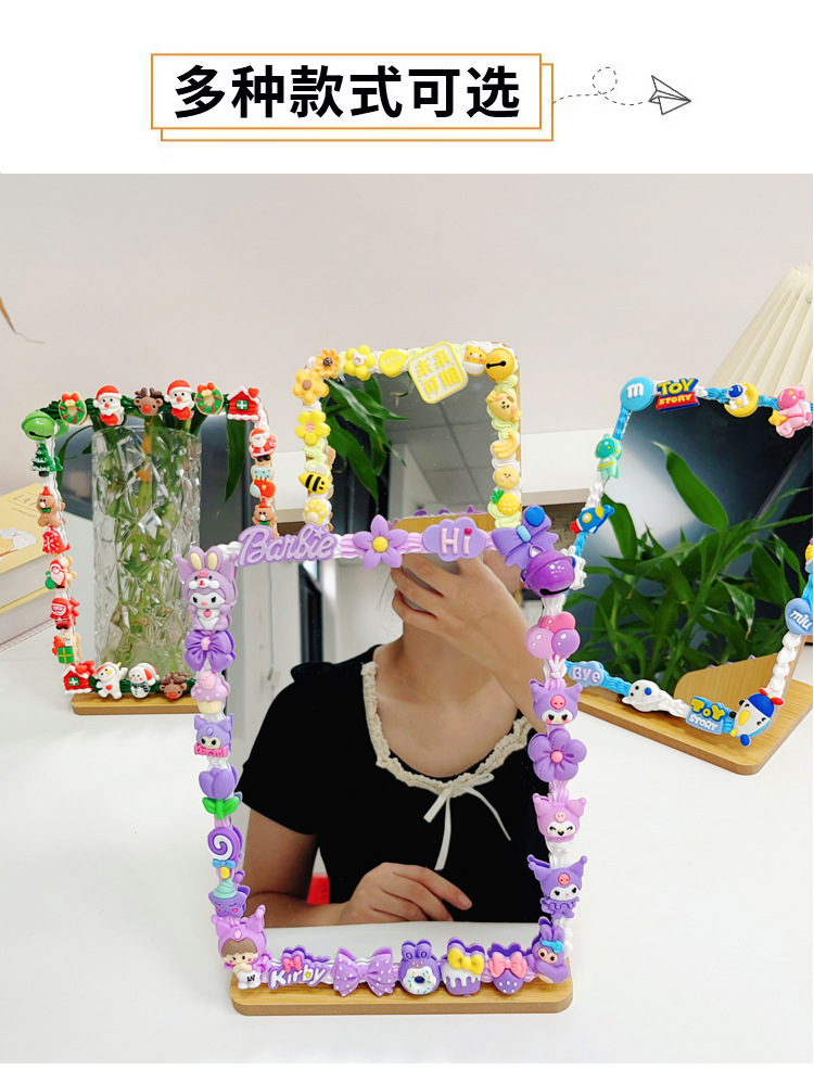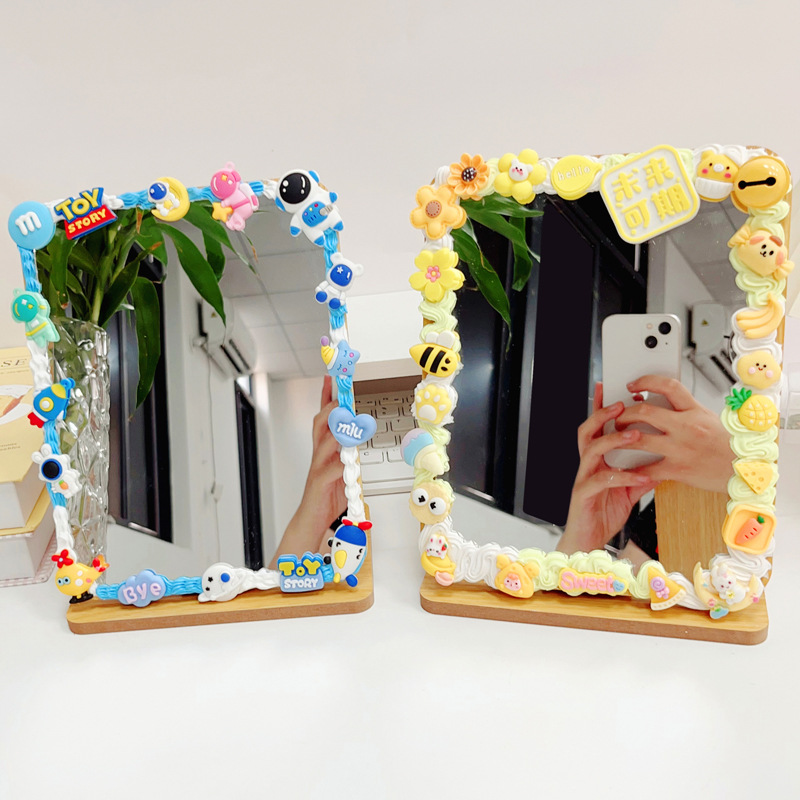 diy奶油胶立体木质桌面化妆镜子大耳狗草莓熊材料包手工自制礼物