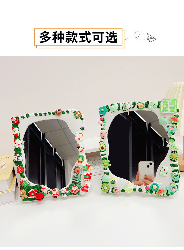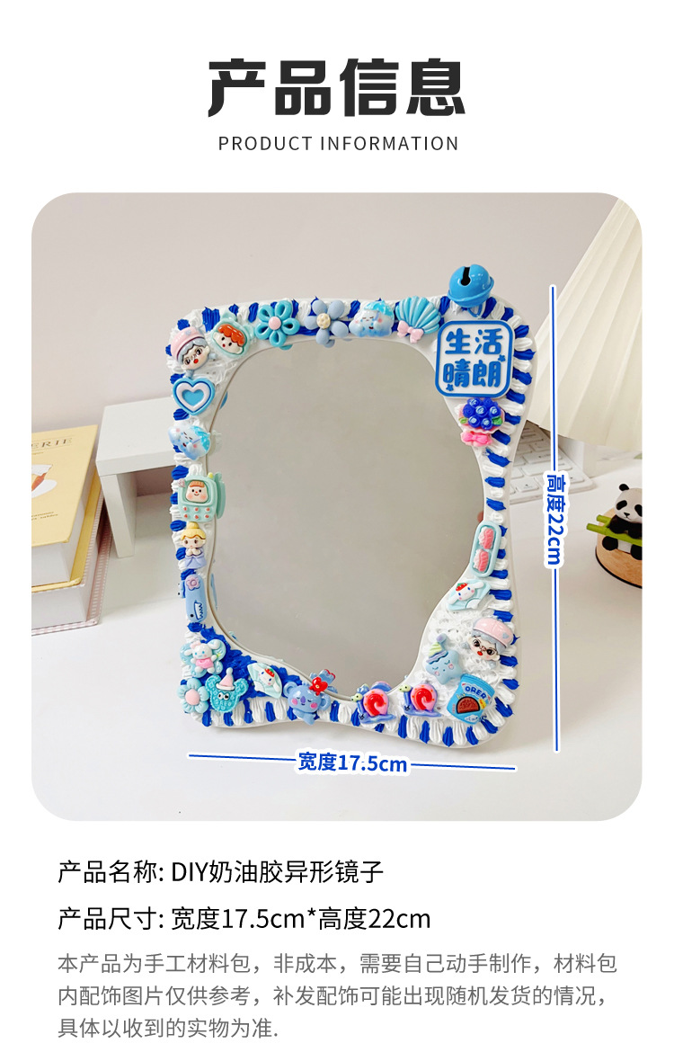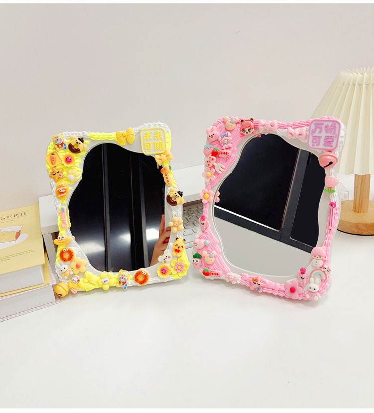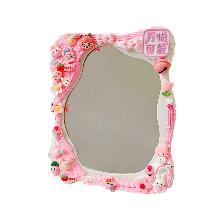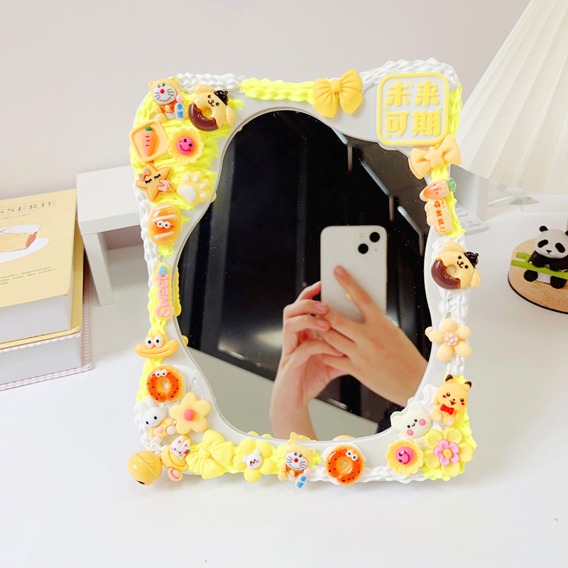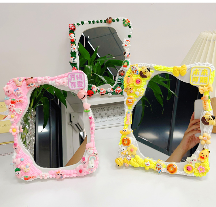 diy奶油胶立体塑料异形桌面台式化妆镜子大耳狗草莓熊材料包手工