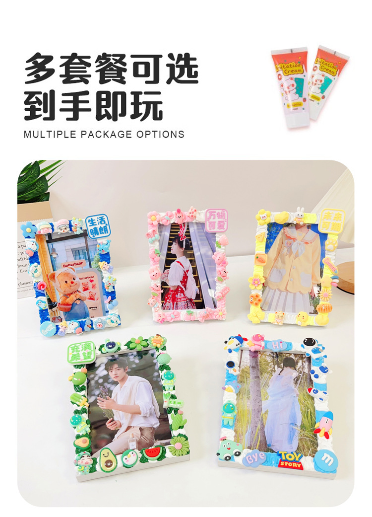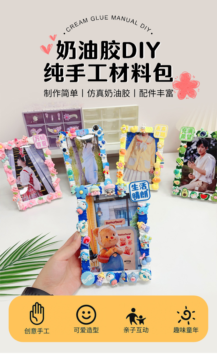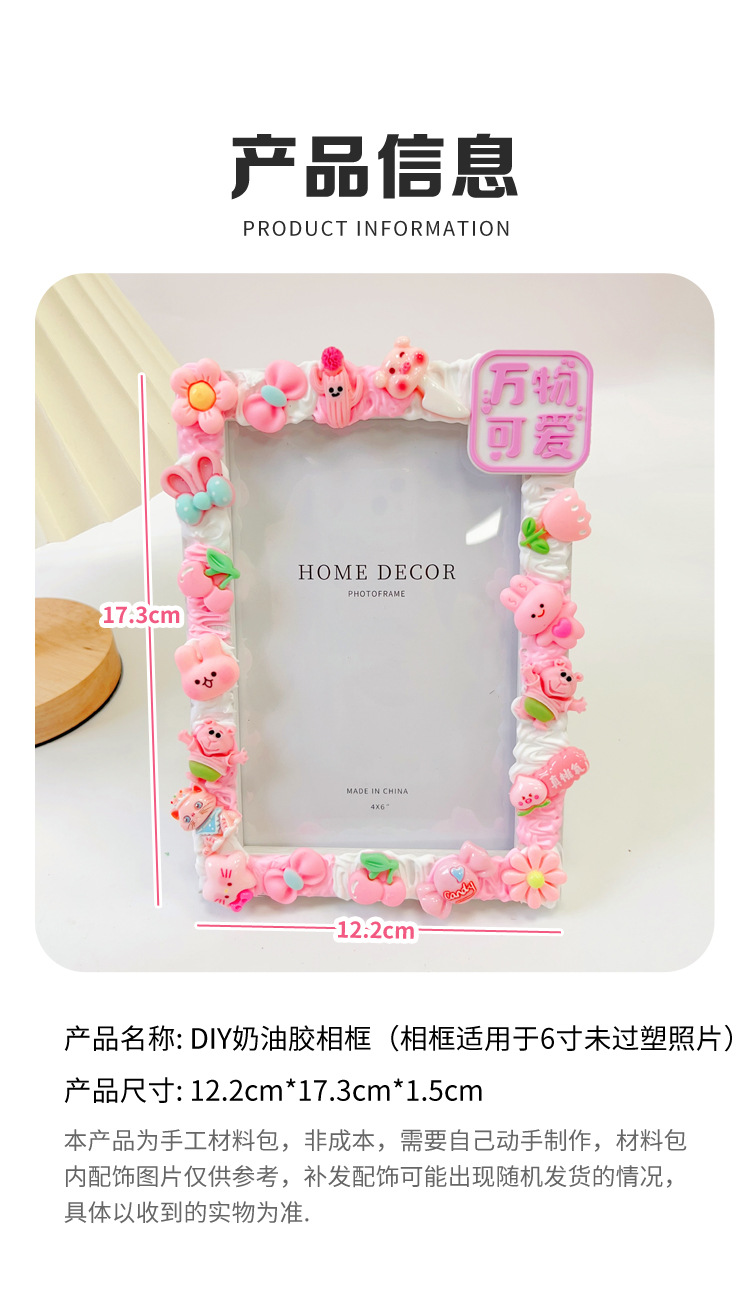 创意照片框架diy奶油胶草莓熊玉桂狗材料包相框手工自制生日礼物