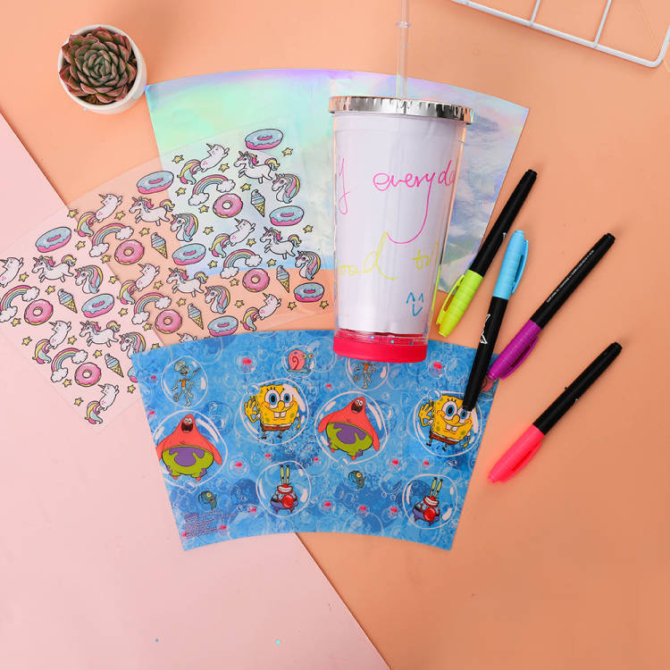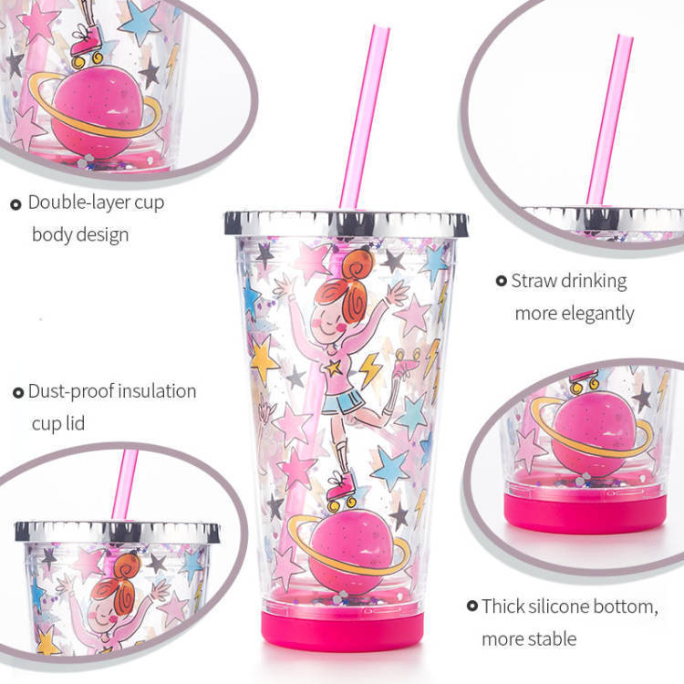 防漏DIY贴纸吸管杯便携随手杯 高颜值礼品杯子学生塑料杯便携式