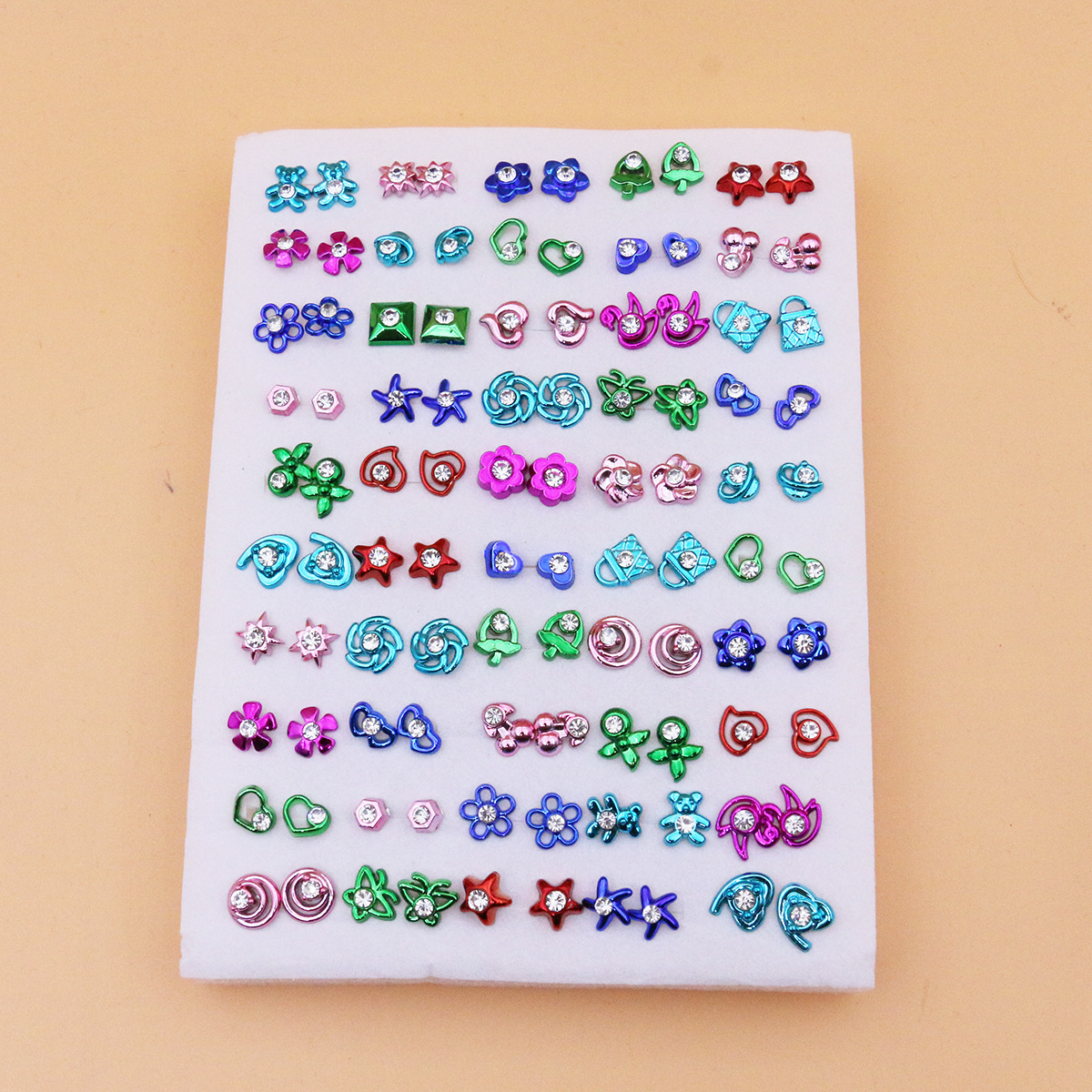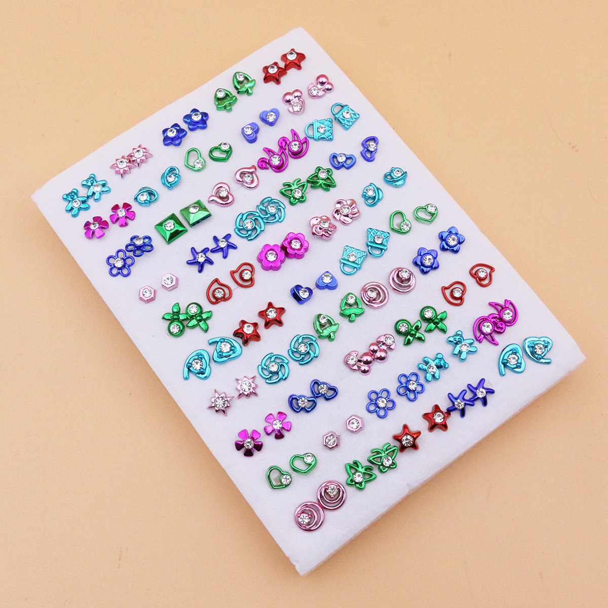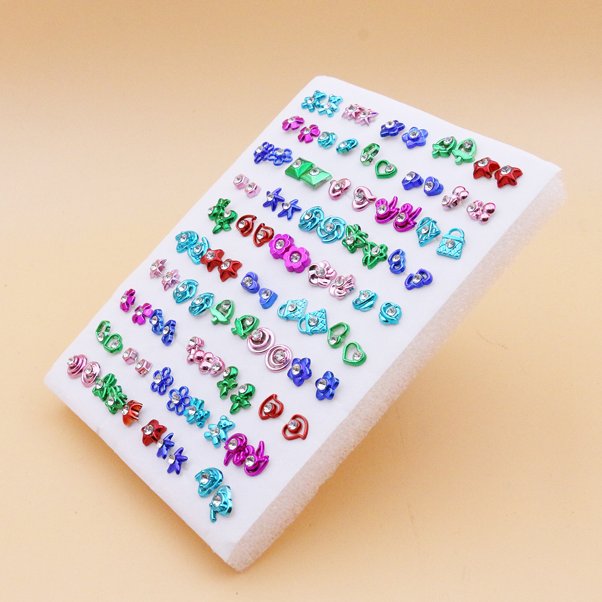 跨境外贸平台货源 50对简约超轻包装PS塑料镶钻镀UV环保塑料耳钉