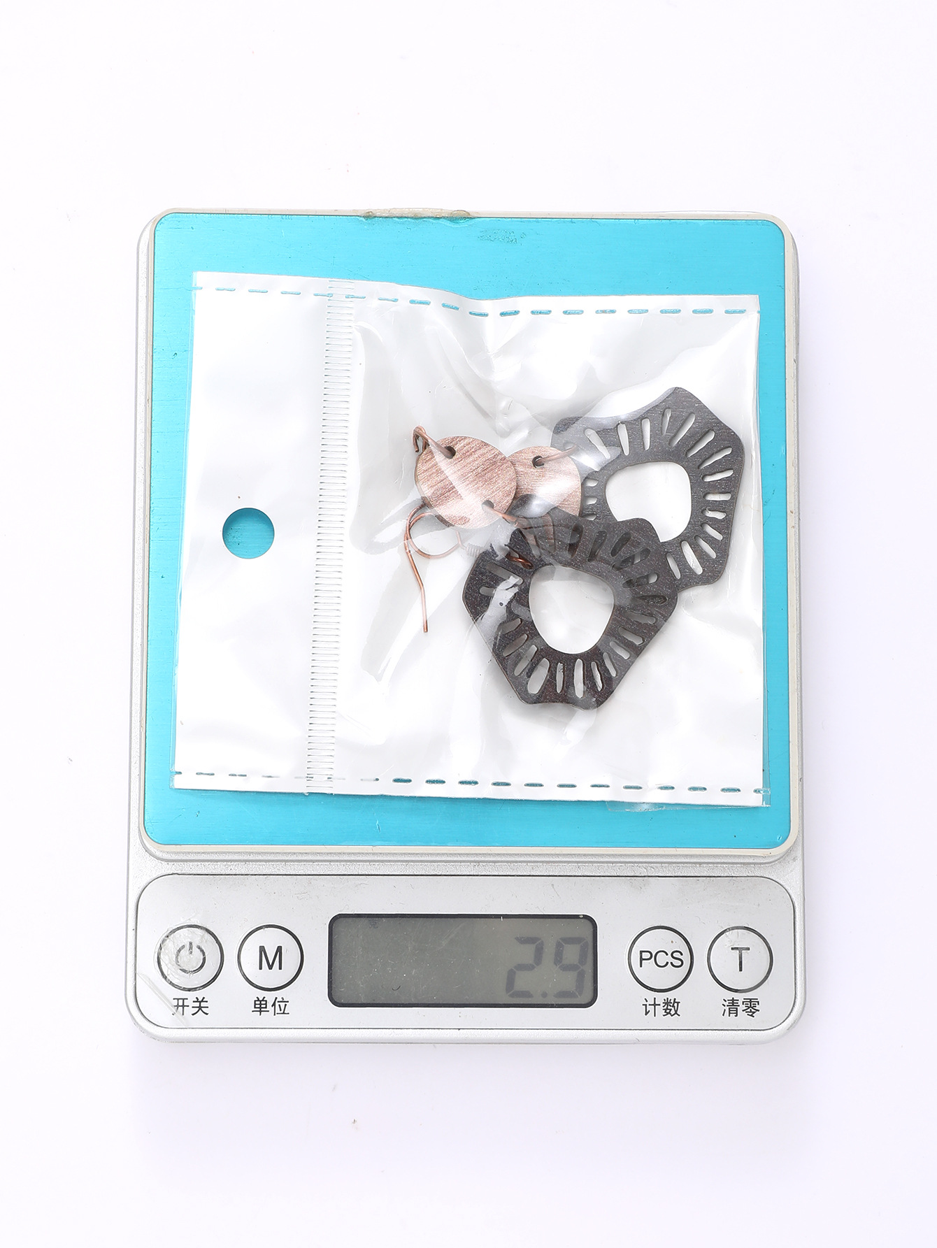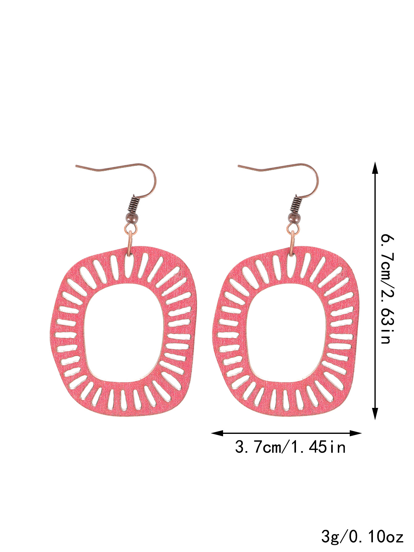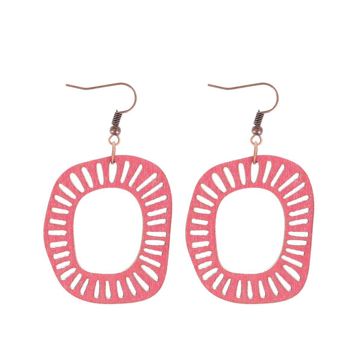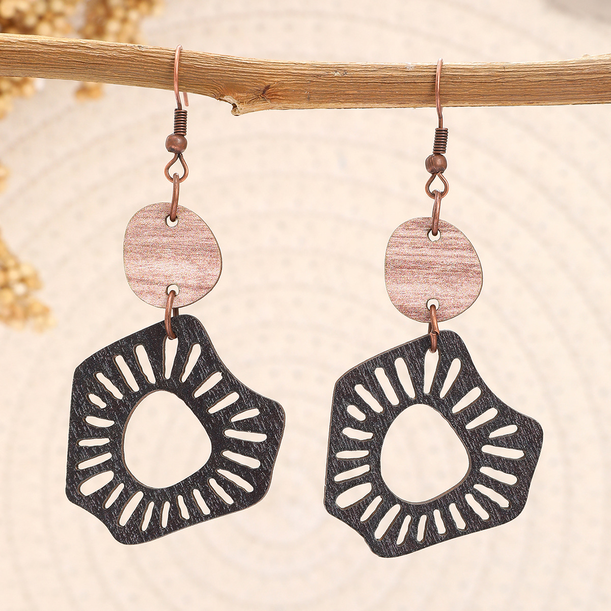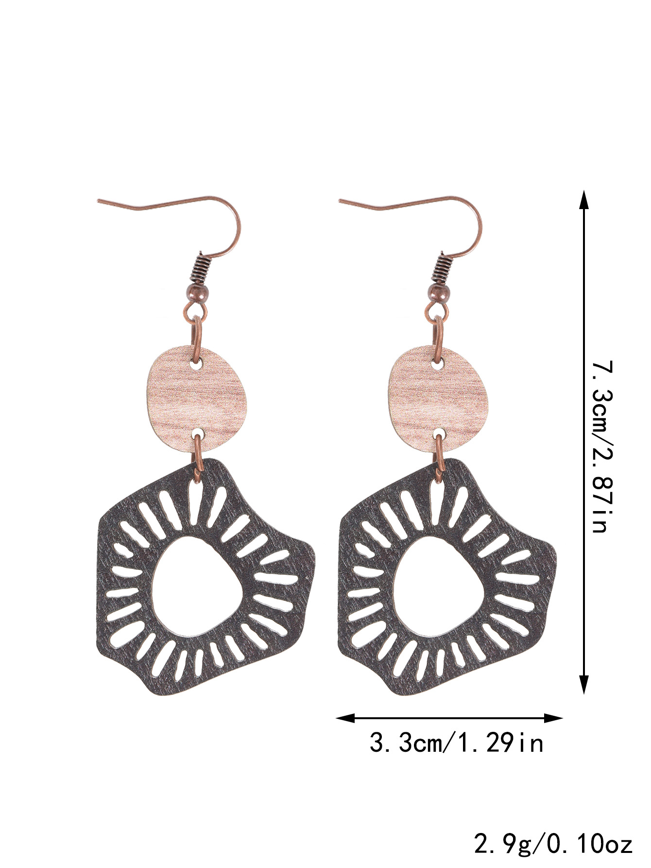 新款复古波西米亚风镂空印花PU木质耳环欧美时尚个性拼接耳坠耳
