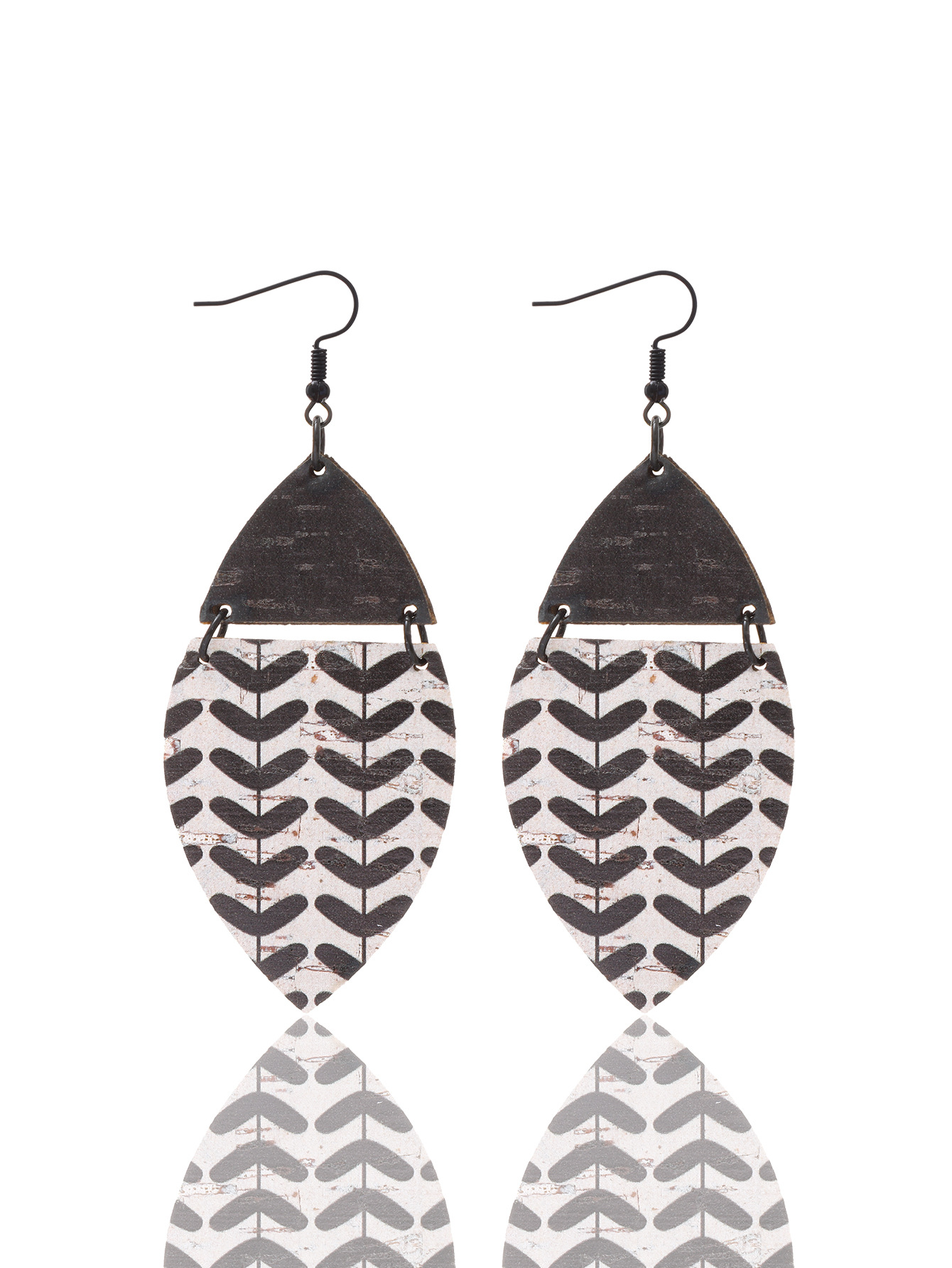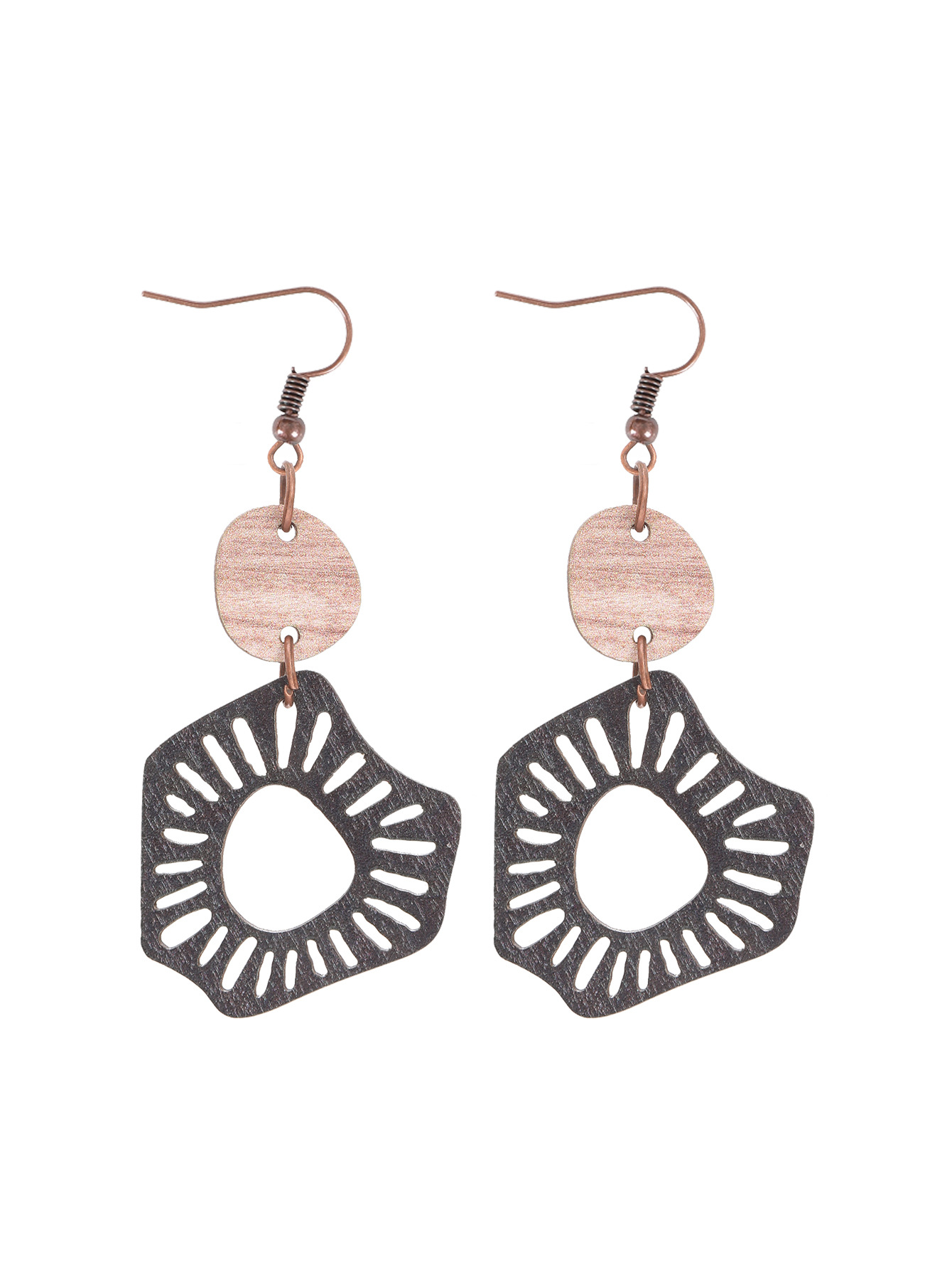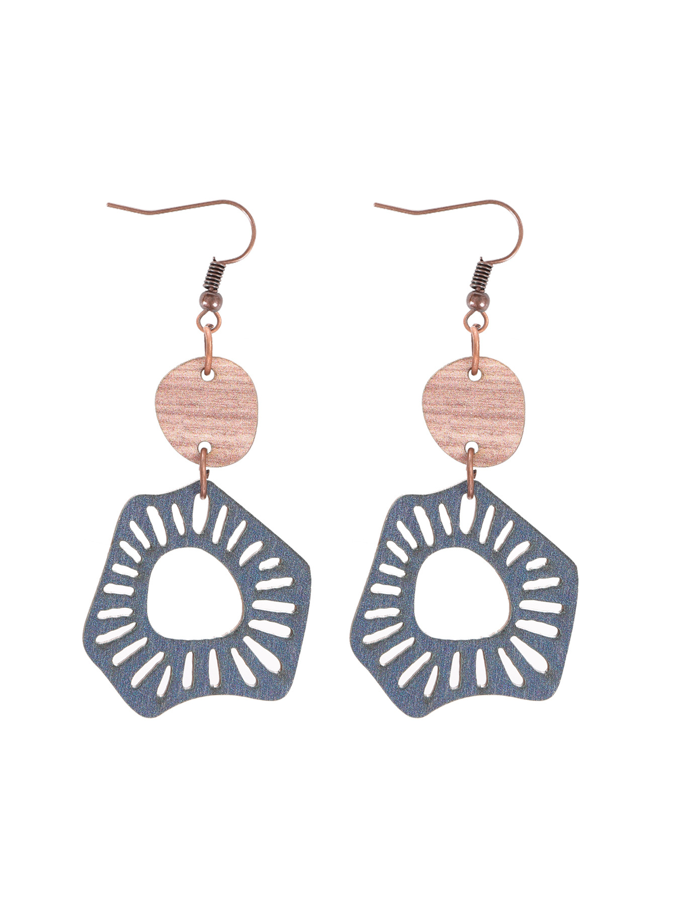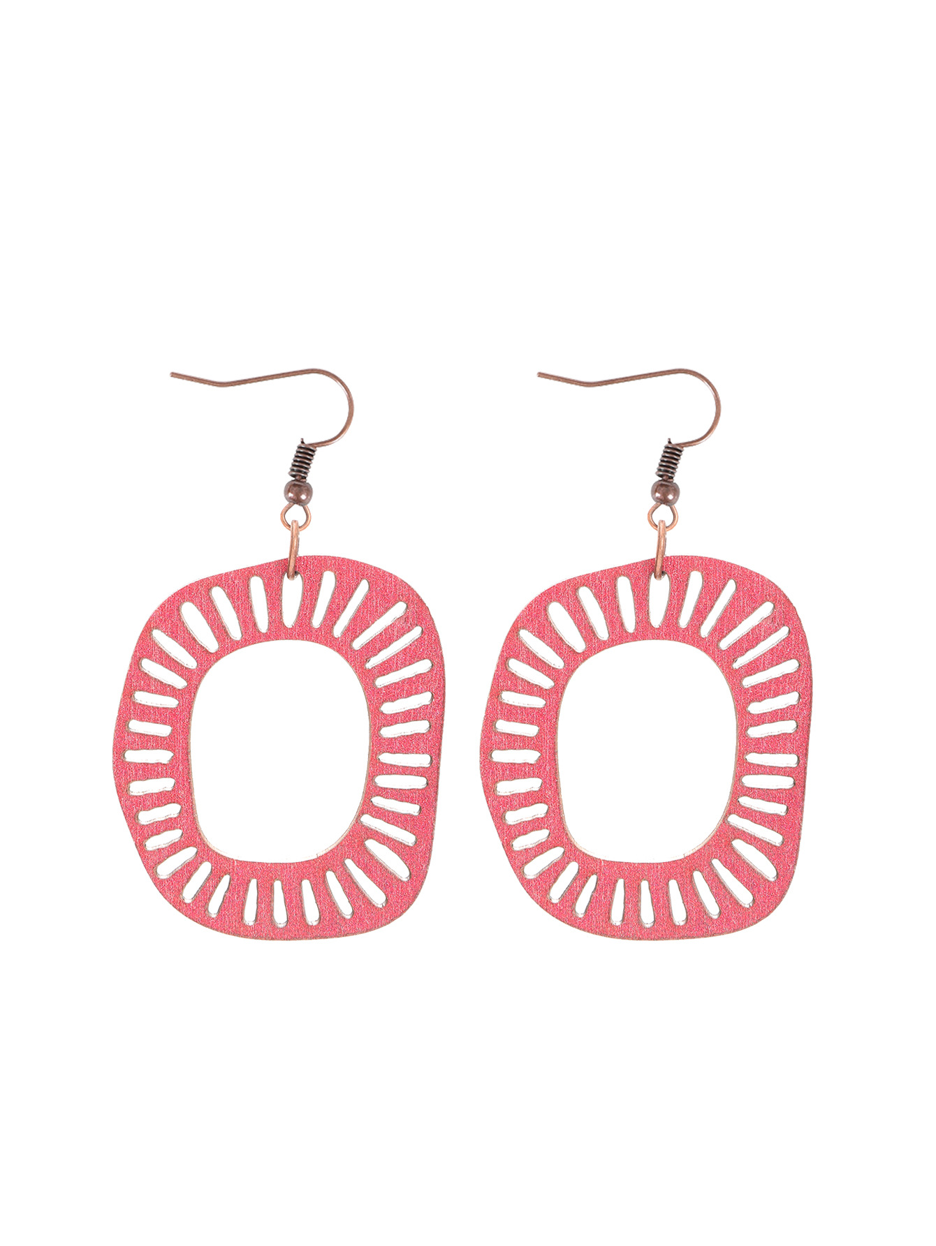 新款复古波西米亚风镂空印花PU木质耳环欧美时尚个性拼接耳坠耳