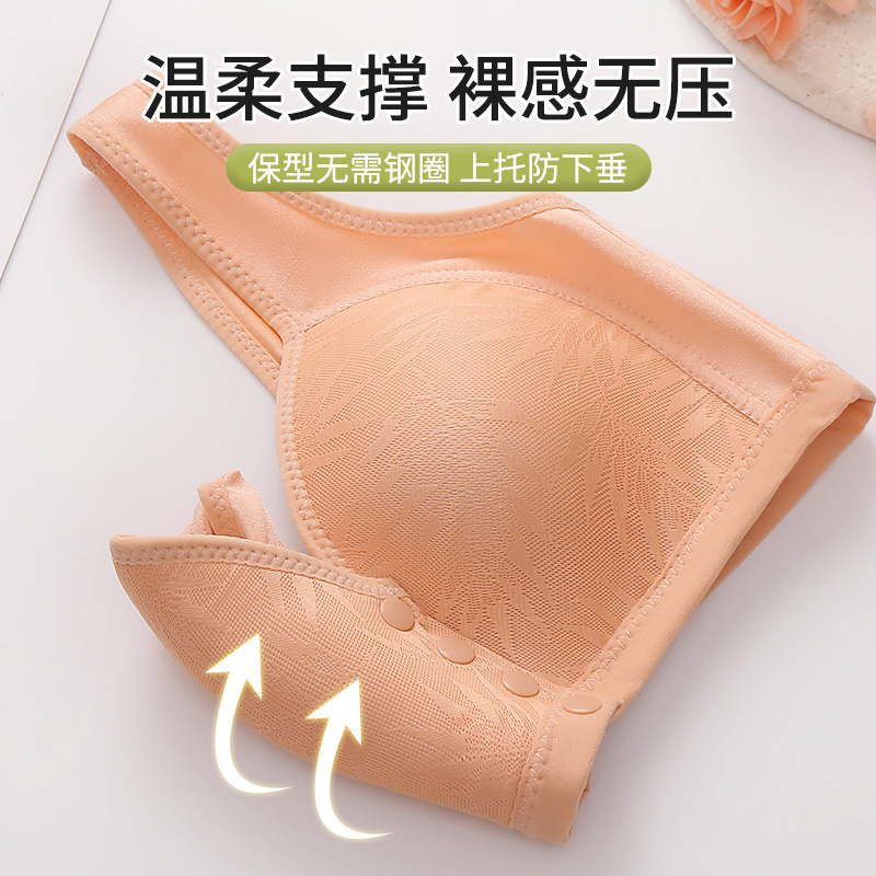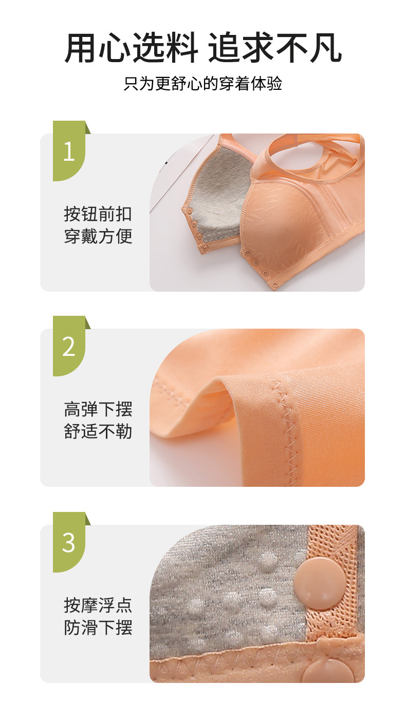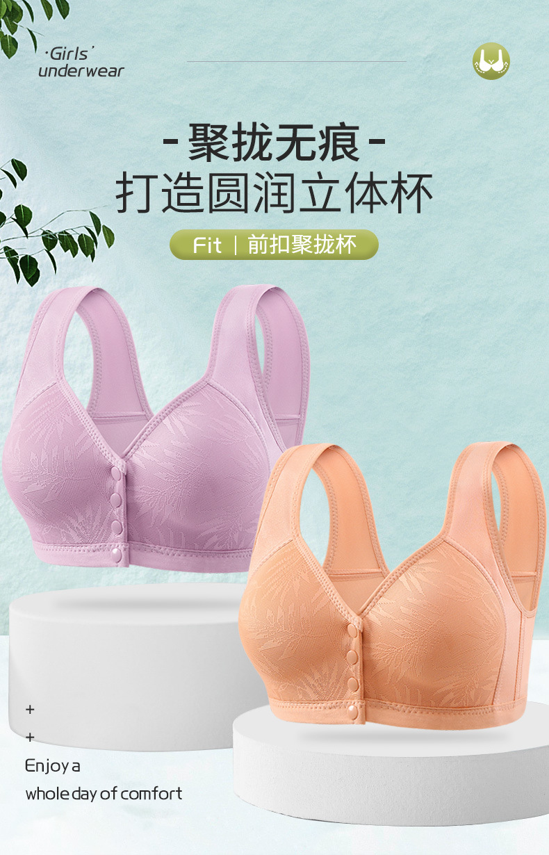 跨境款厂家现货直发中老年大码薄款无钢圈前开扣固定杯背心式文胸